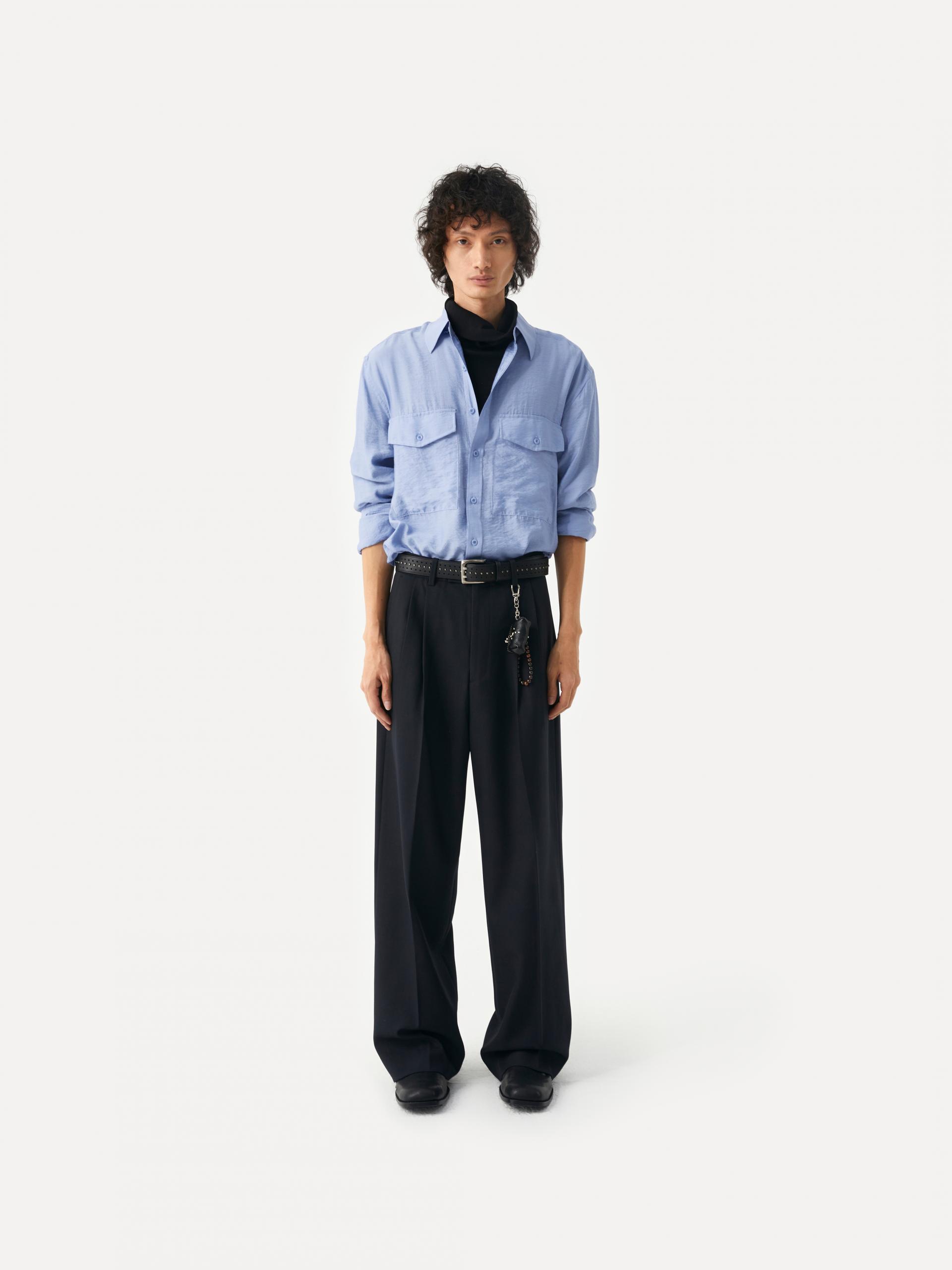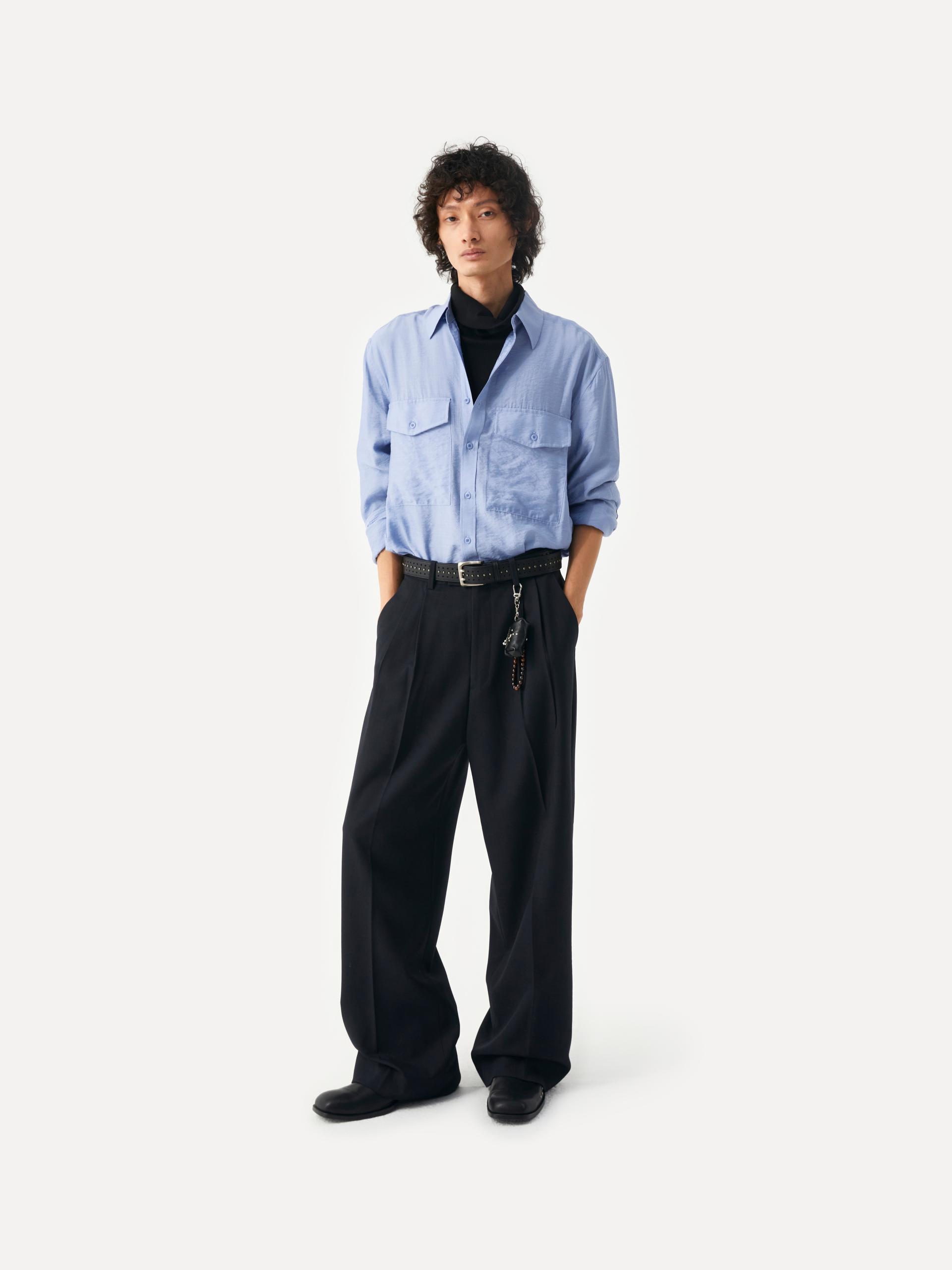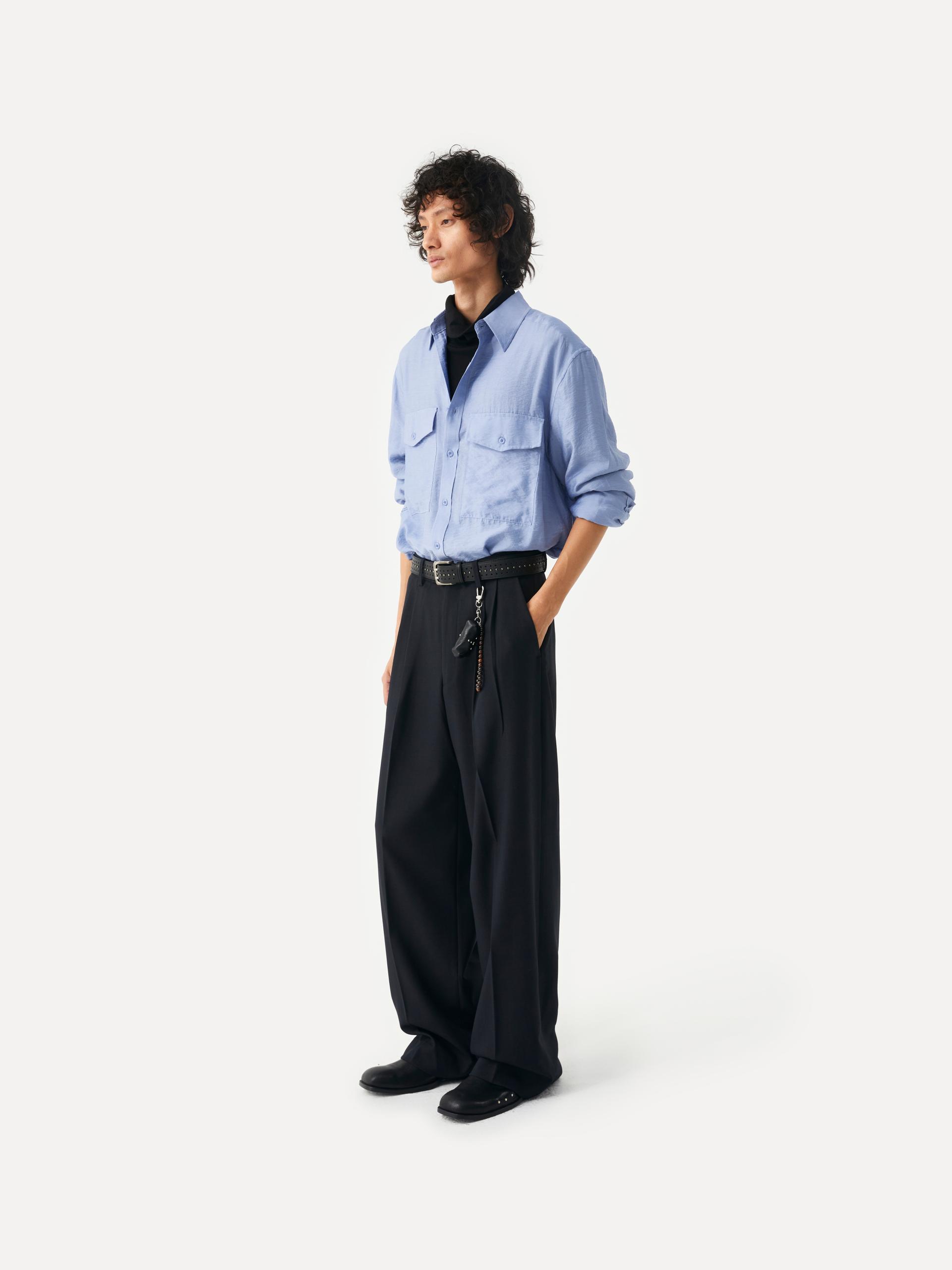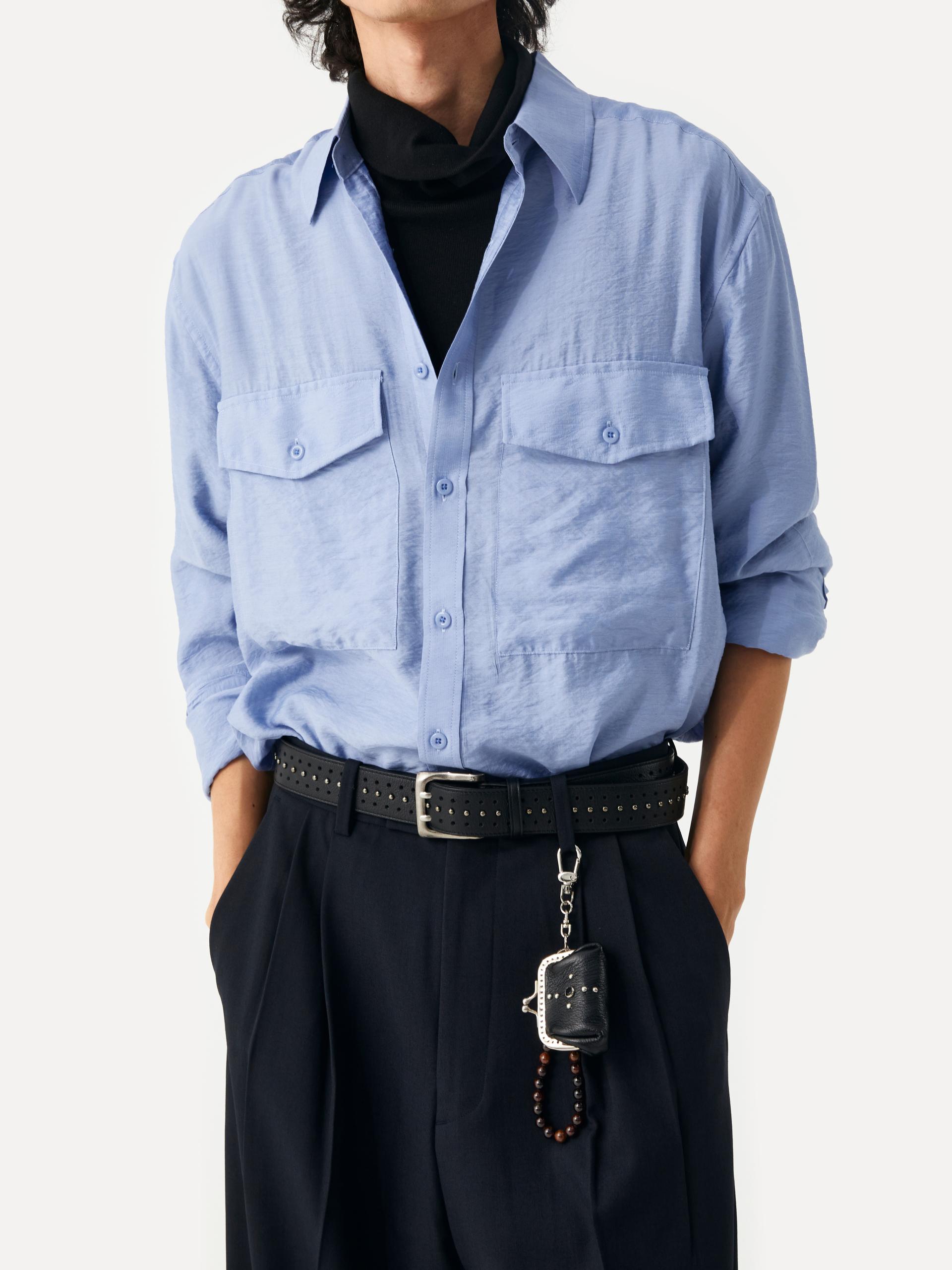 오버사이즈 핏 톤온톤 버튼 더블 아웃 포켓 차분한 드레시 무드로 착용되는 오버사이즈 핏 셔츠입니다. 약간의 엠보가 가미된 섬세한 소재에 매트한 광택감이 더해져 고급스러운 텍스처를 느낄 수 있습니다. 미니멀한 디자인의 아웃포켓과 톤온톤 버튼 등 정제된 디테일이 더해져 깔끔한 실루엣으로 완성된 아이템 입니다. |