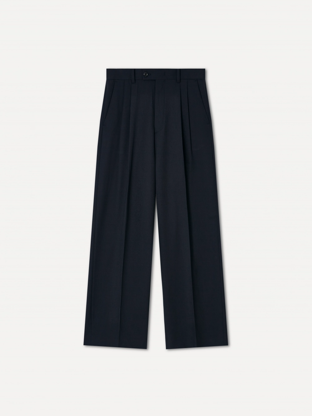 와이드 핏 팬츠 전면 플리츠 허리 안쪽 보강 라이닝 옆선 사선 포켓 & 뒷면 웰트 포켓 YKK 社의 지퍼 사용 투턱 디테일로 볼륨감 있는 실루엣을 연출하는 와이드 핏 팬츠입니다. 허리선에 얕게 자리한 플리츠 디테일이 은은한 볼륨감을 더하며, 과하지 않은 와이드 핏으로 균형 잡힌 라인을 완성합니다. 부드러운 드레이프가 돋보이는 소재를 사용하여 착용 시 자연스럽게 흐르며, 정제된 실루엣을 선사합니다. 매트한 컬러와 여유로운 핏으로 포멀과 캐주얼 모두 활용 가능하며, 일상을 함께 하기 좋은 아이템 입니다. |