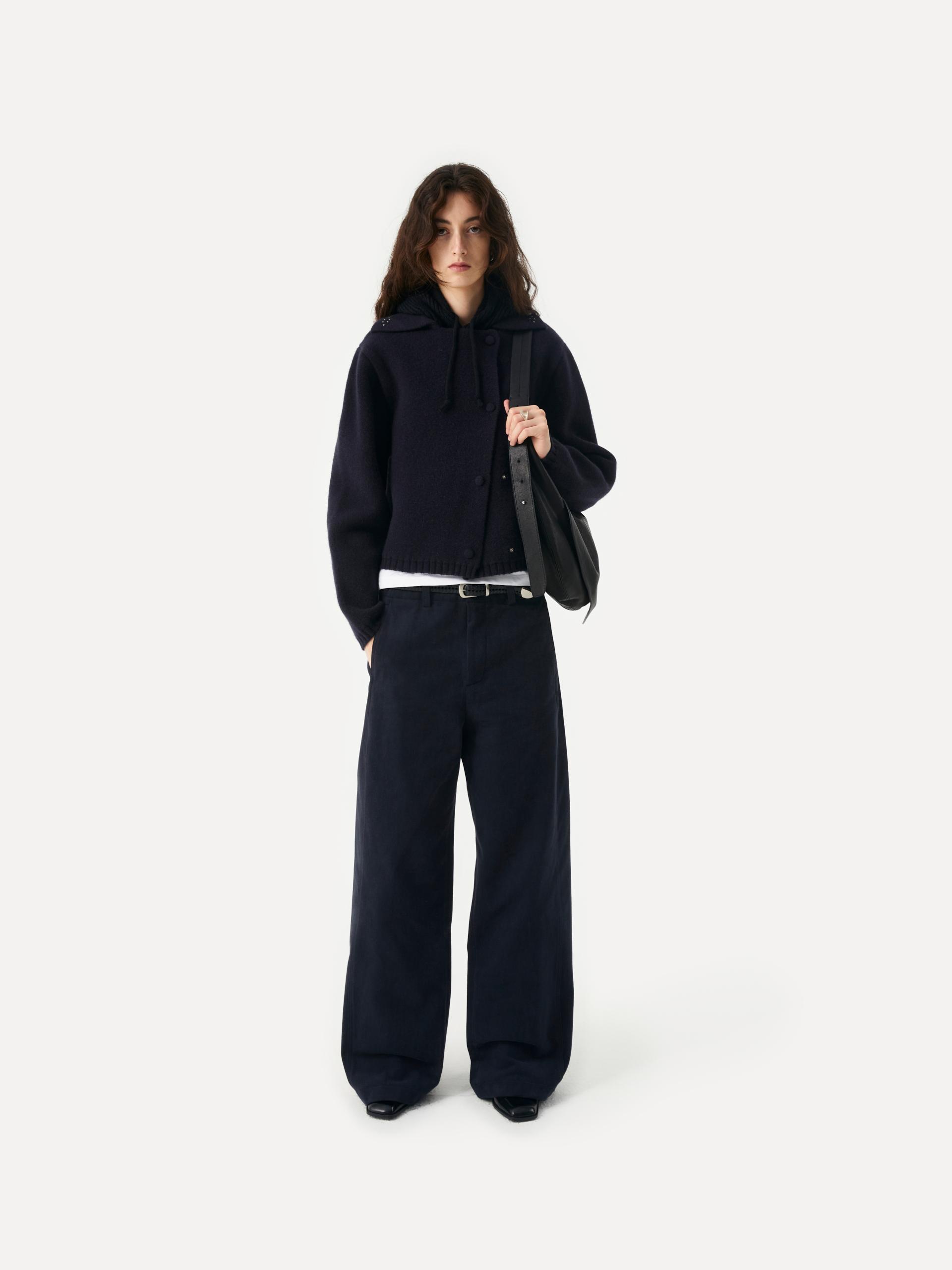 Ragnor fuzzed wide cotton pants navy