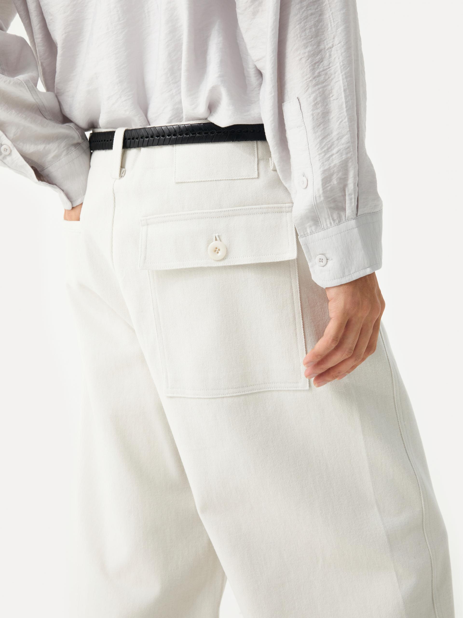 [9/29 순차 출고] 와이드 핏 사선 포켓 & 뒷면 아웃 포켓 허리 안쪽 배색 라이닝 뒷면 허리 패치 디테일 LABEL 각인된 버튼 벨벳처럼 소프트한 질감이 돋보이는 와이드 핏 코튼 팬츠입니다. 피치 가공을 더한 코튼 원단이 부드럽고 포근한 표면을 구현해 따스한 무드를 전합니다. 탄탄한 중량감이 실루엣을 안정적으로 잡아주어 풍성한 와이드 라인을 자연스럽게 완성합니다. FW 시즌 스타일에 온기를 더해줄 에센셜한 아이템입니다. |