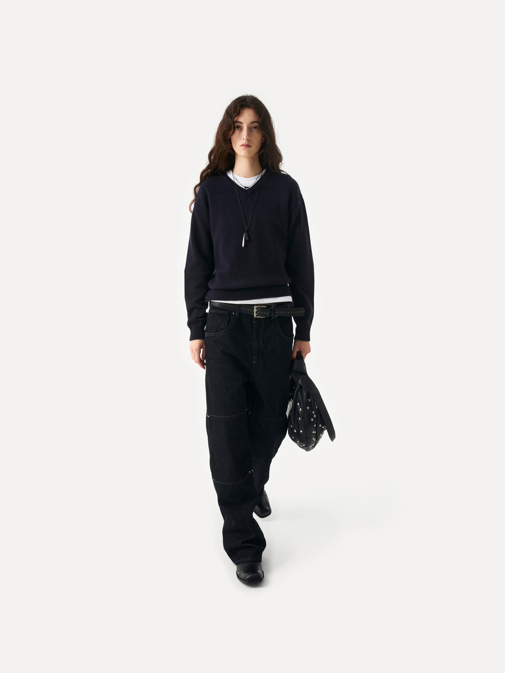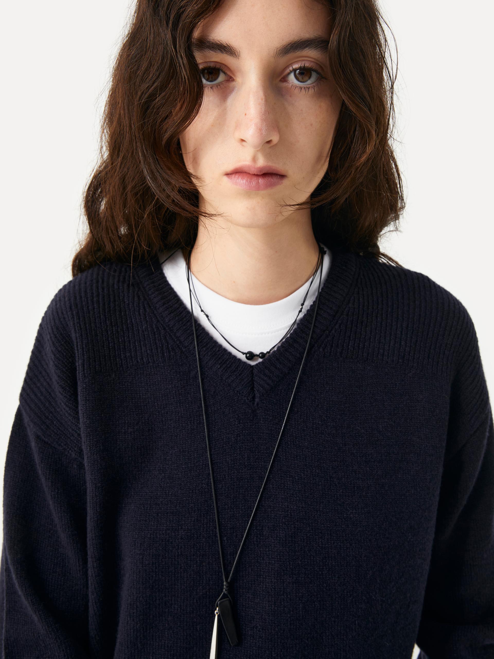 [10/17 순차 출고] 루즈 핏 스웨터 브이넥 숄더 라인 패널 디테일 옆선 단추 트임 소맷단,밑단 립 조직 마감 어깨라인의 패널 디테일이 돋보이는 루즈핏 스웨터 입니다. 루즈핏으로 착용되며, 어깨 라인 조직감 변형 디테일이 더해져 입체감 있는 라인을 완성하였습니다. 밑단 옆선의 단추 트임으로 섬세한 포인트를 더했으며, 메리노 울 특유의 부드러운 감촉으로 편안한 착용감을 선사합니다. |