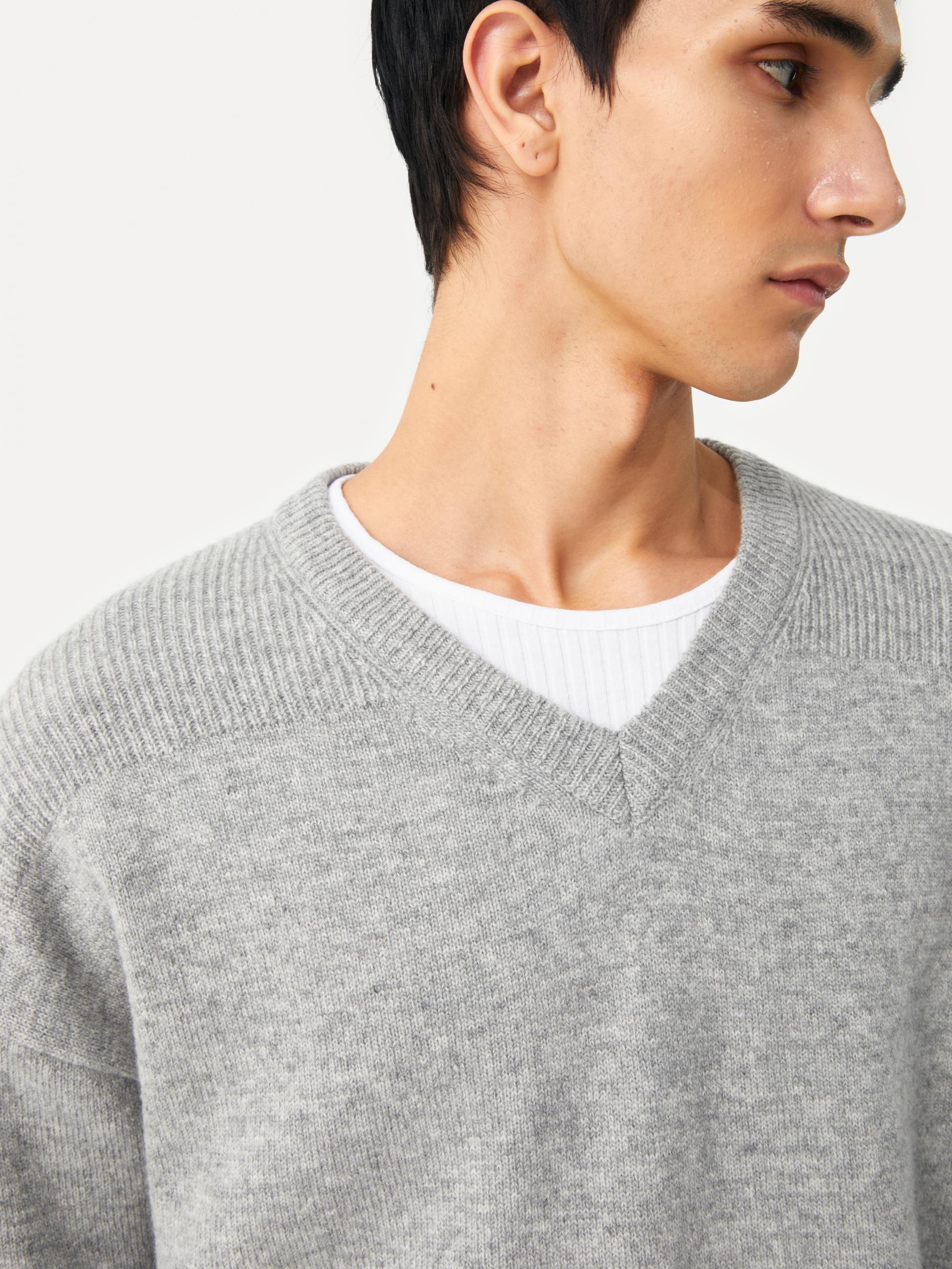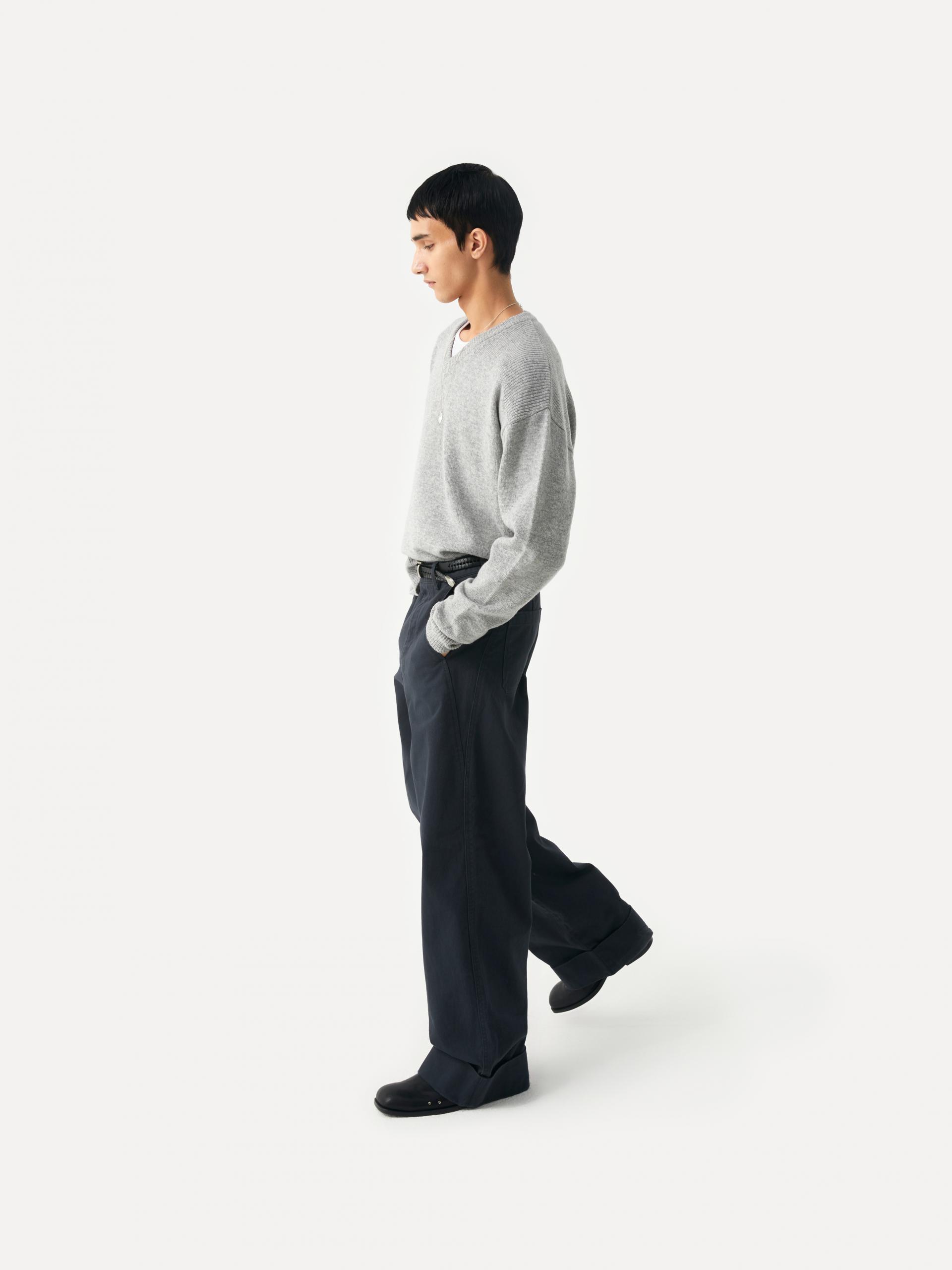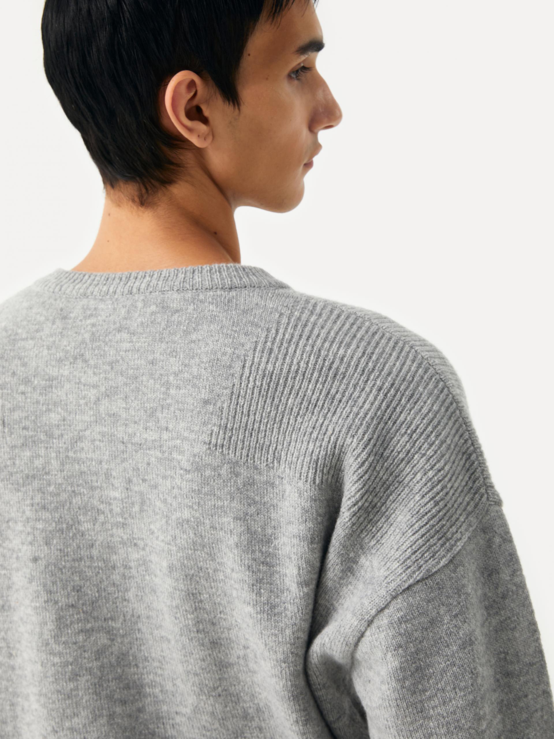 [10/17 순차 출고] 루즈 핏 스웨터 브이넥 숄더 라인 패널 디테일 옆선 단추 트임 소맷단,밑단 립 조직 마감 어깨라인의 패널 디테일이 돋보이는 루즈핏 스웨터 입니다. 루즈핏으로 착용되며, 어깨 라인 조직감 변형 디테일이 더해져 입체감 있는 라인을 완성하였습니다. 밑단 옆선의 단추 트임으로 섬세한 포인트를 더했으며, 메리노 울 특유의 부드러운 감촉으로 편안한 착용감을 선사합니다. |