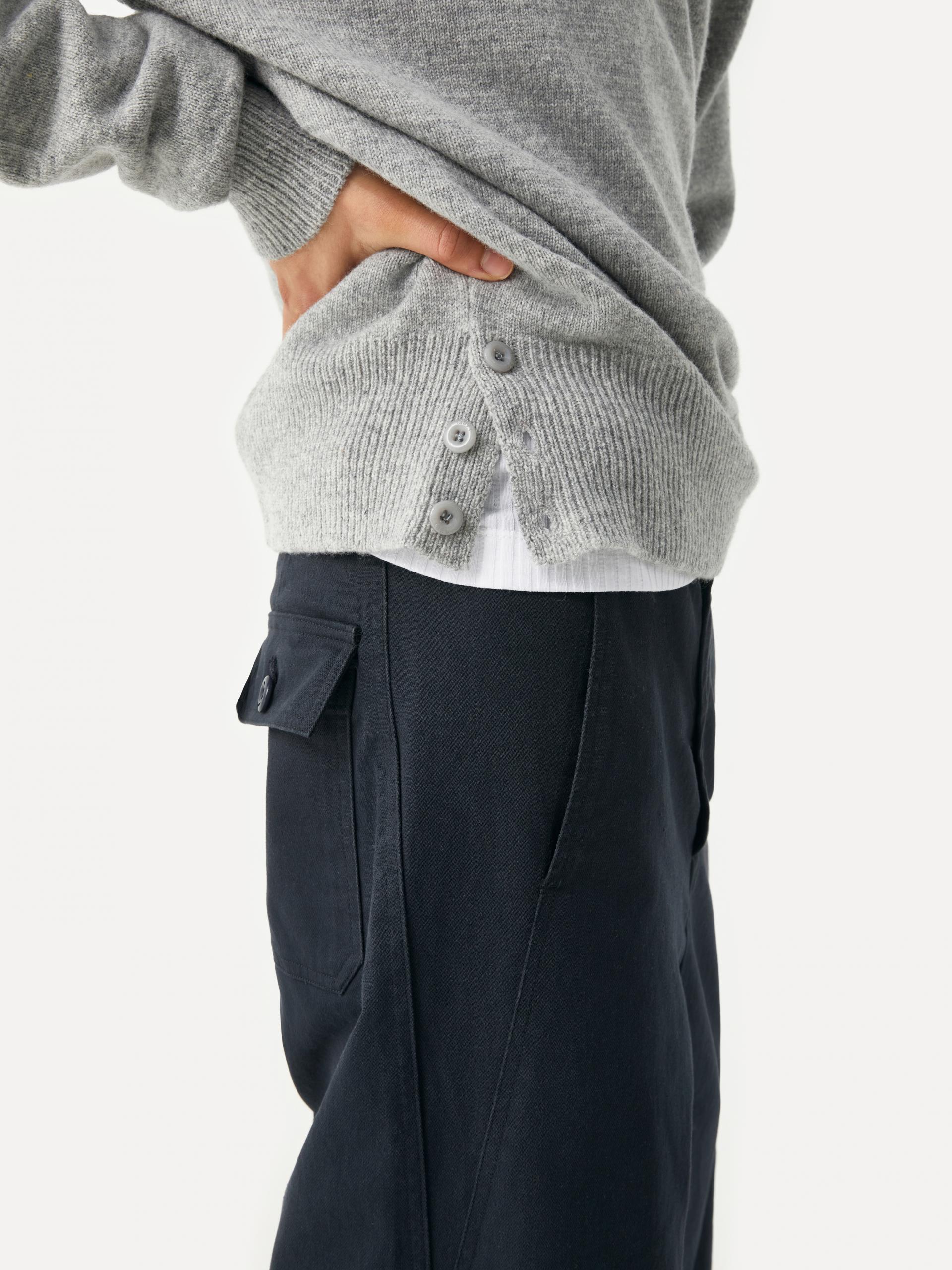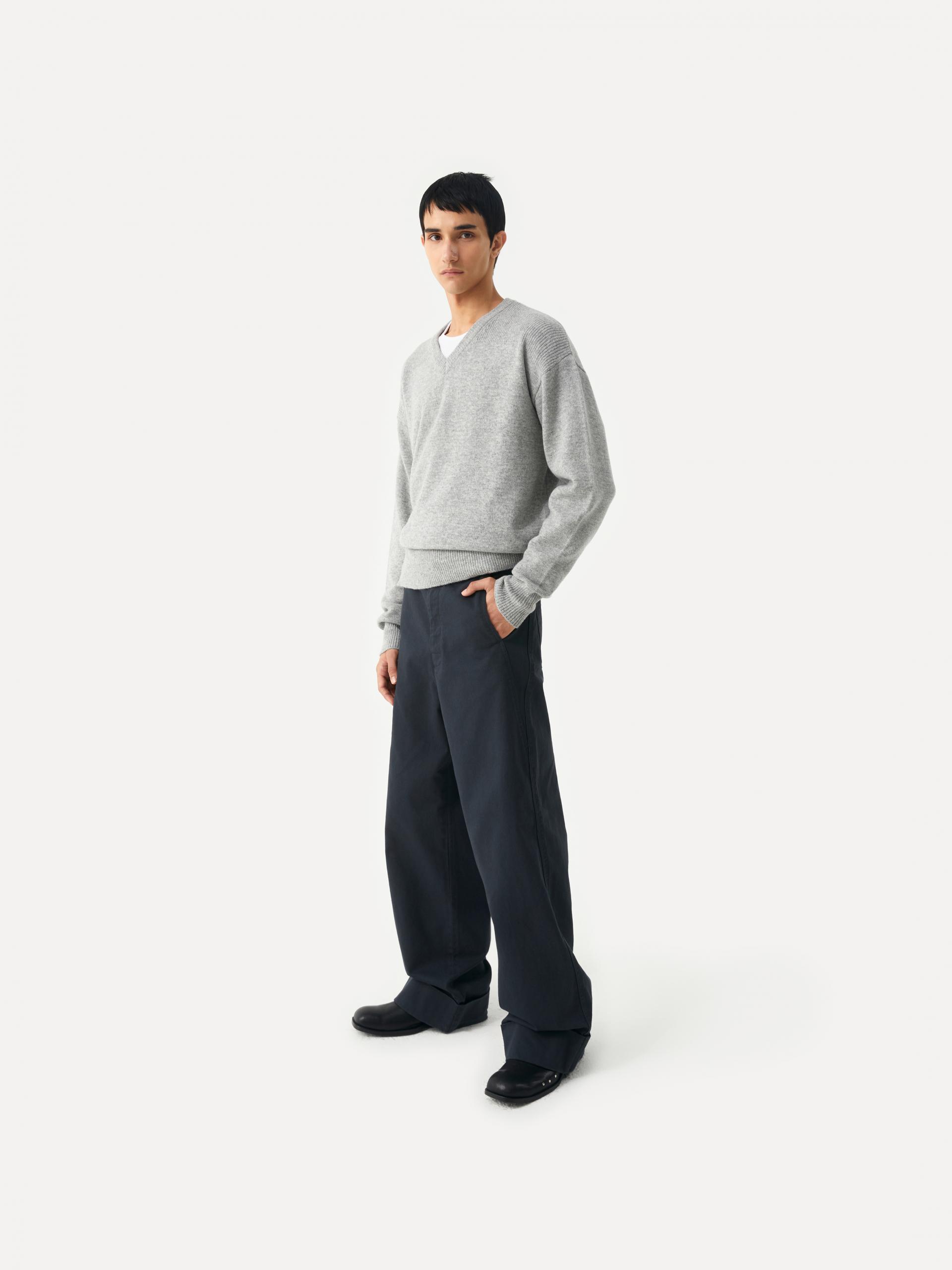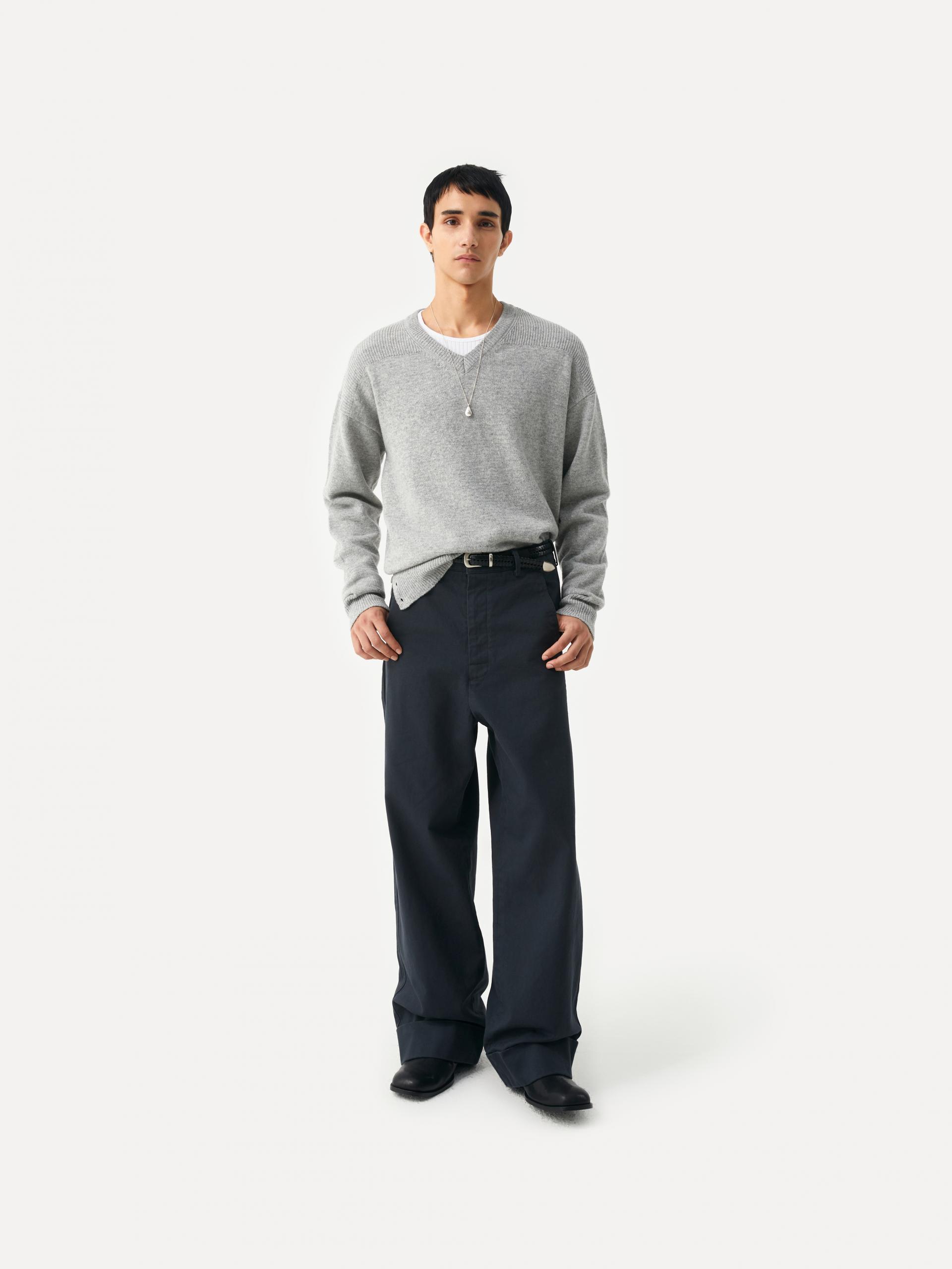 [10/17 순차 출고] 루즈 핏 스웨터 브이넥 숄더 라인 패널 디테일 옆선 단추 트임 소맷단,밑단 립 조직 마감 어깨라인의 패널 디테일이 돋보이는 루즈핏 스웨터 입니다. 루즈핏으로 착용되며, 어깨 라인 조직감 변형 디테일이 더해져 입체감 있는 라인을 완성하였습니다. 밑단 옆선의 단추 트임으로 섬세한 포인트를 더했으며, 메리노 울 특유의 부드러운 감촉으로 편안한 착용감을 선사합니다. |