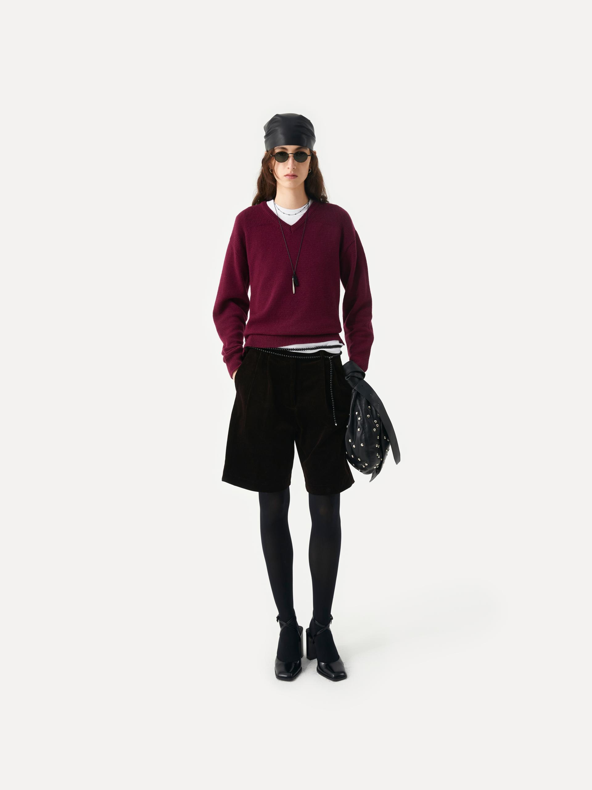 Winslo trim panel v-neck sweater sangria