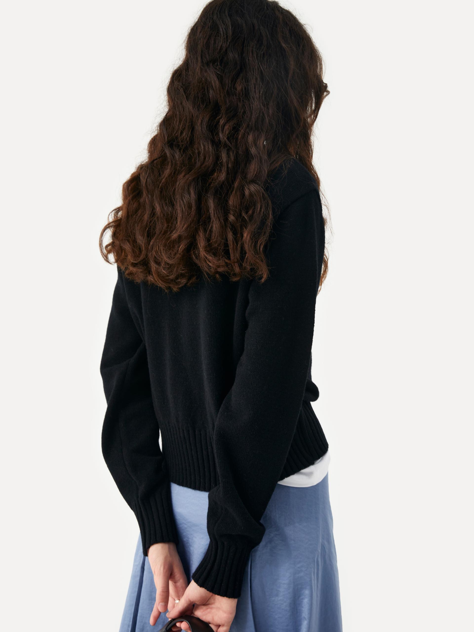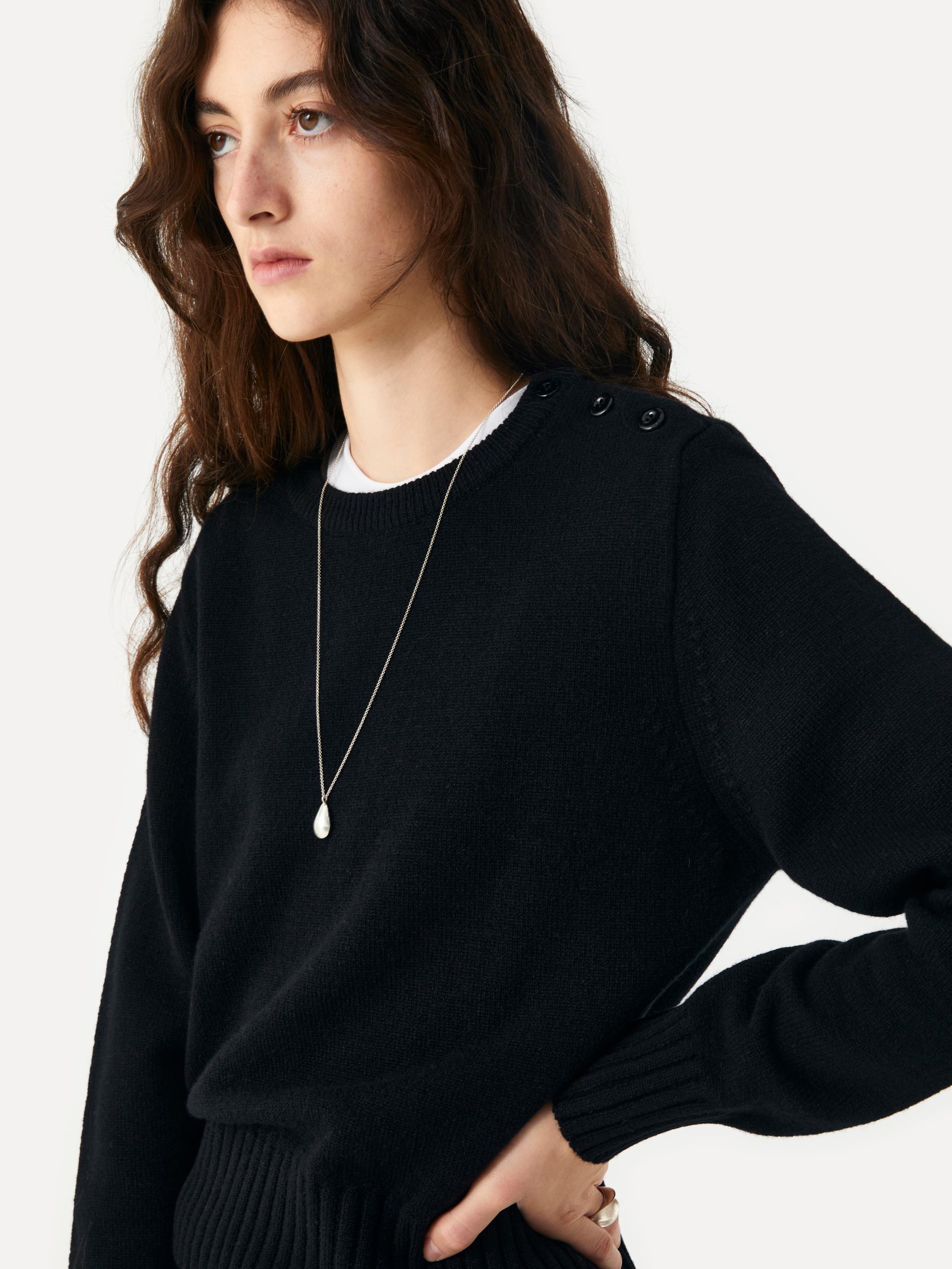 [9/29 순차 출고] 크루넥 스웨터 숄더 버튼 클로저 소맷단,밑단 립조직 마감 숄더 라인 버튼 디테일이 돋보이는 루즈핏 크루넥 스웨터입니다. 슈퍼파인 메리노 울 원사를 사용하여 부드럽고 포근한 촉감을 느끼실 수 있으며, 여유 있는 루즈 핏으로 편안하게 착용됩니다. 왼쪽 어깨 라인에는 단추로 여닫을 수 있는 디테일이 더해져, 레이어링 스타일로 다양한 연출이 가능합니다. 모노톤 컬러 구성으로 일상 속 다양한 룩에 자연스럽게 어우러지는 아이템입니다. |