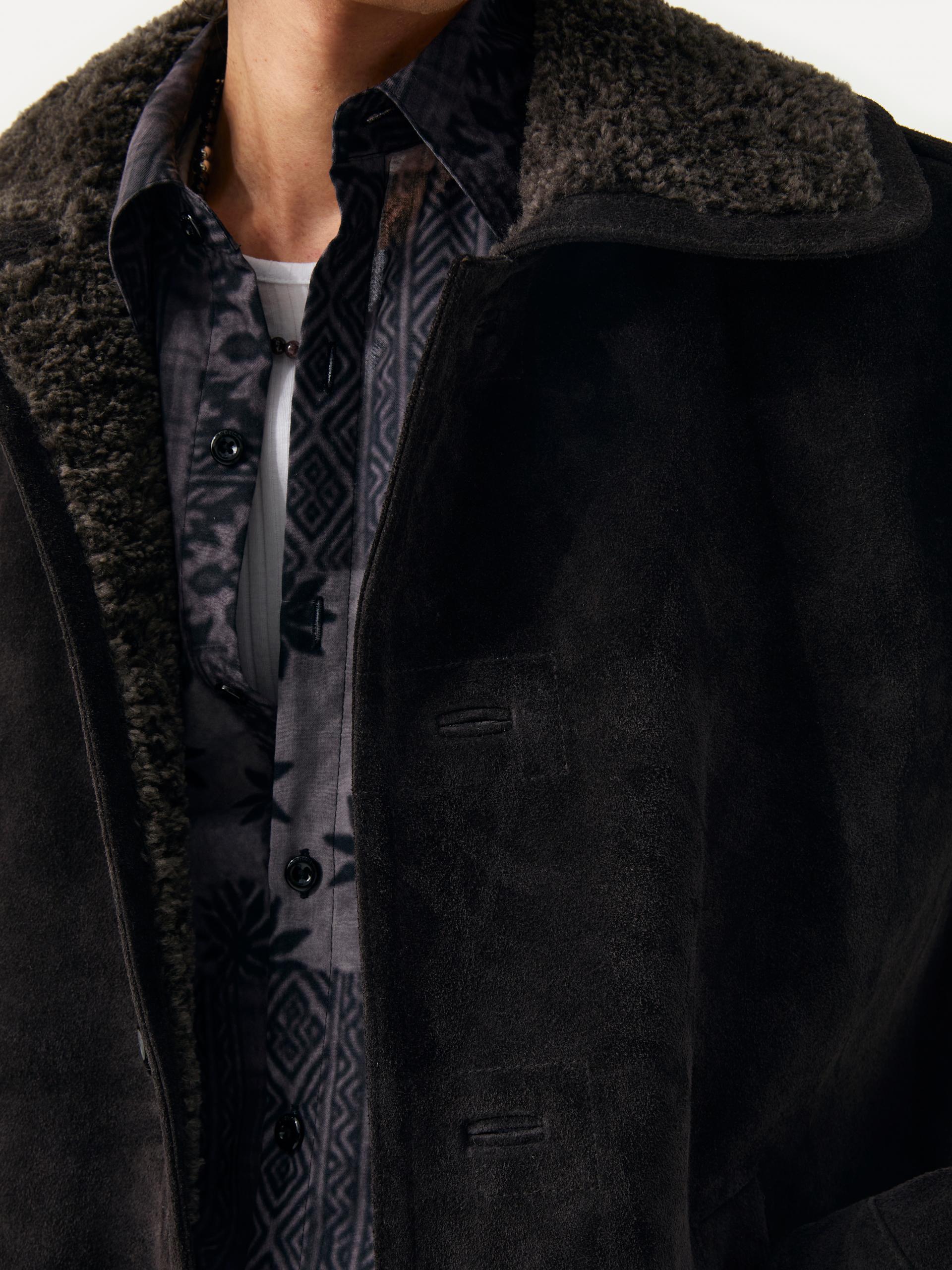 오버사이즈 핏 리얼 스웨이드 & 에코 시어링 전면 웰트 포켓 전/후면/소매 절개 디테일 시어링 자켓의 오리지널리티를 담아낸 오버사이즈 핏 자켓입니다. 전체적으로 여유 있는 사이즈이며, 리얼 스웨이드 겉감과 에코 시어링(Faux Shearling)이 하나로 이어진 이중 구조 소재로 제작되었습니다. 깊이 있는 컬러의 천연 스웨이드와 부드러운 촉감의 폭스 시어링이 조화를 이루며, 시어링 자켓 고유의 디테일을 더해 완성도 높게 마무리되어 오래도록 함께하기 좋은 소장가치 있는 아이템 입니다. |