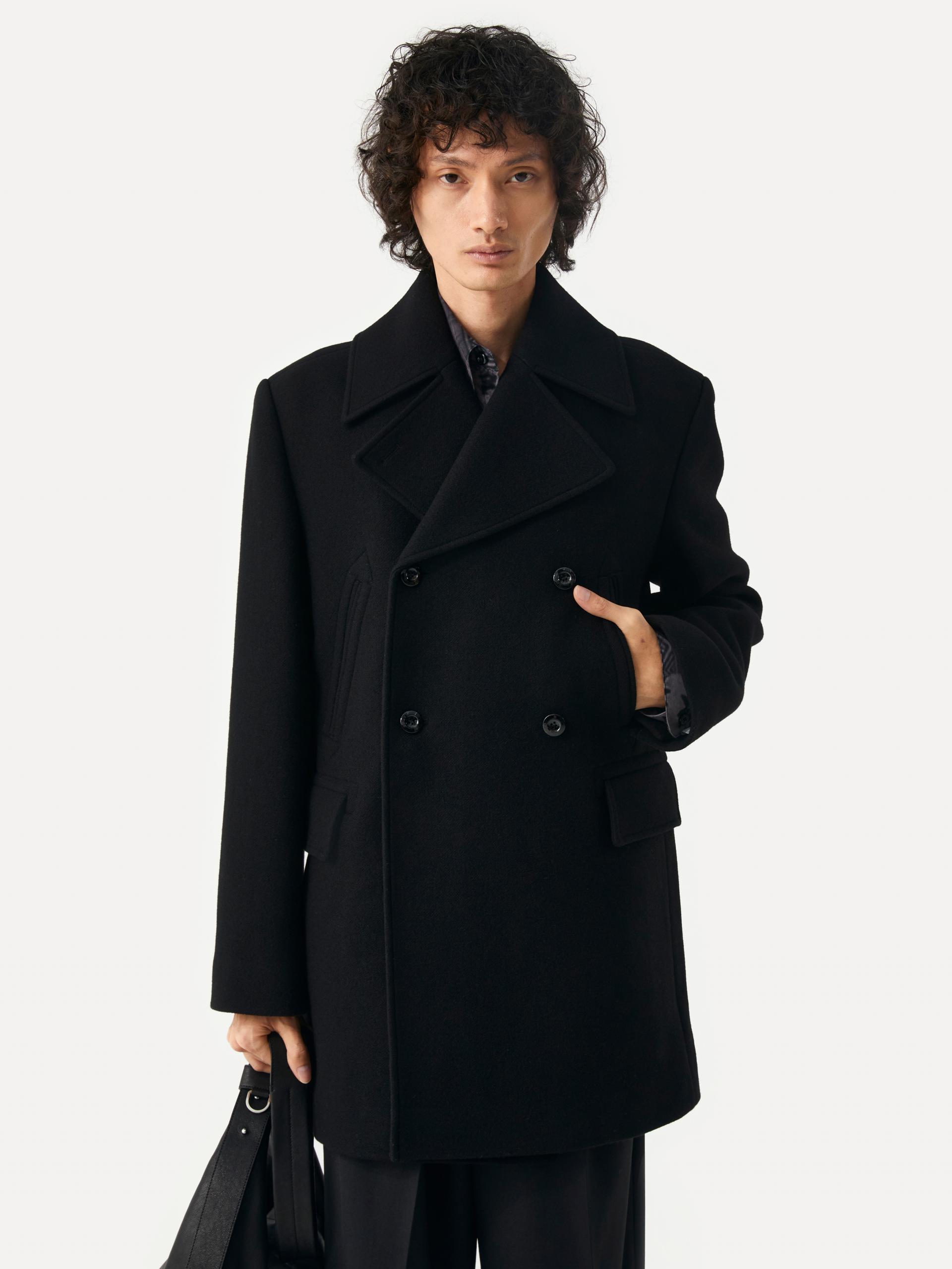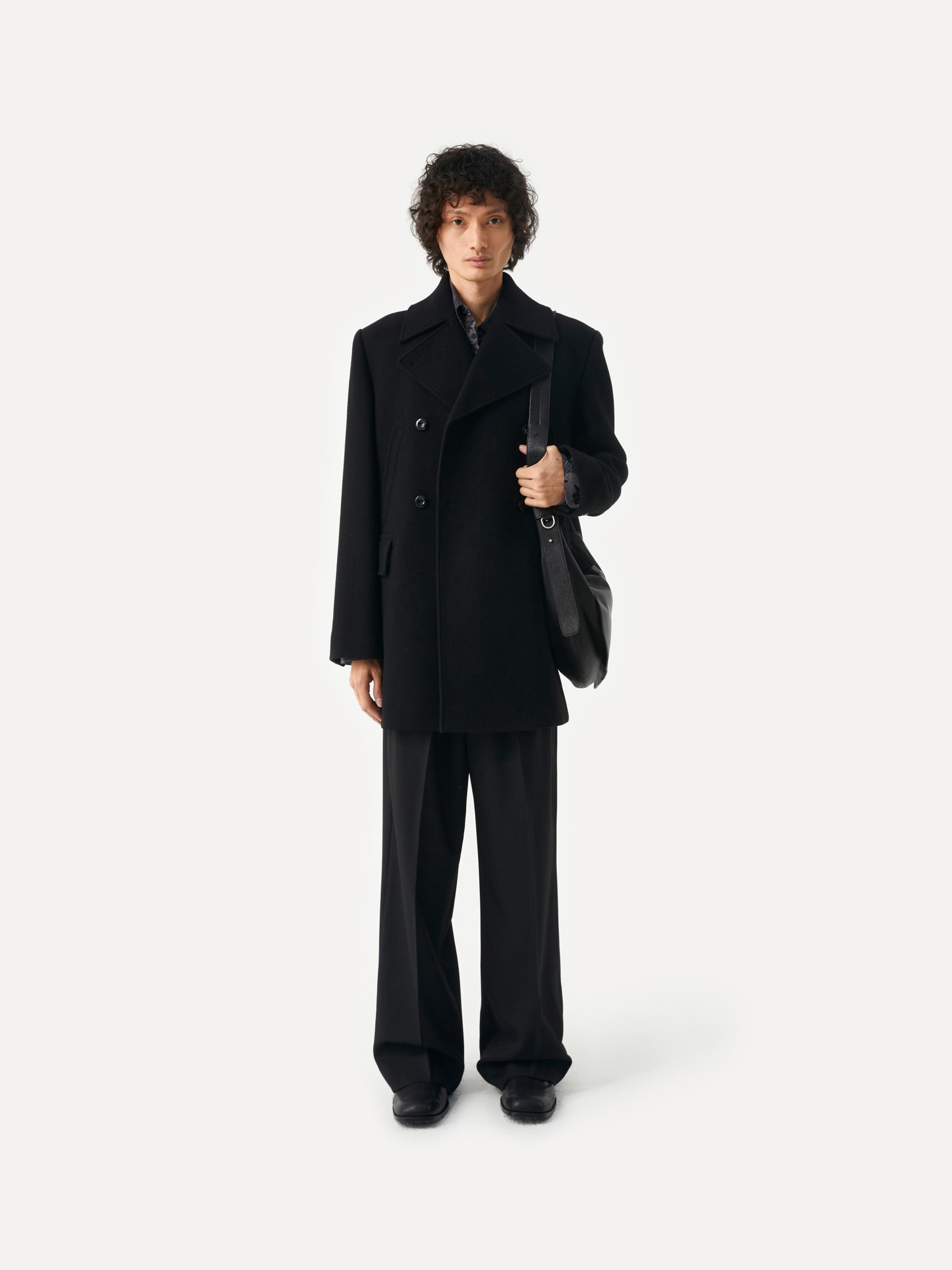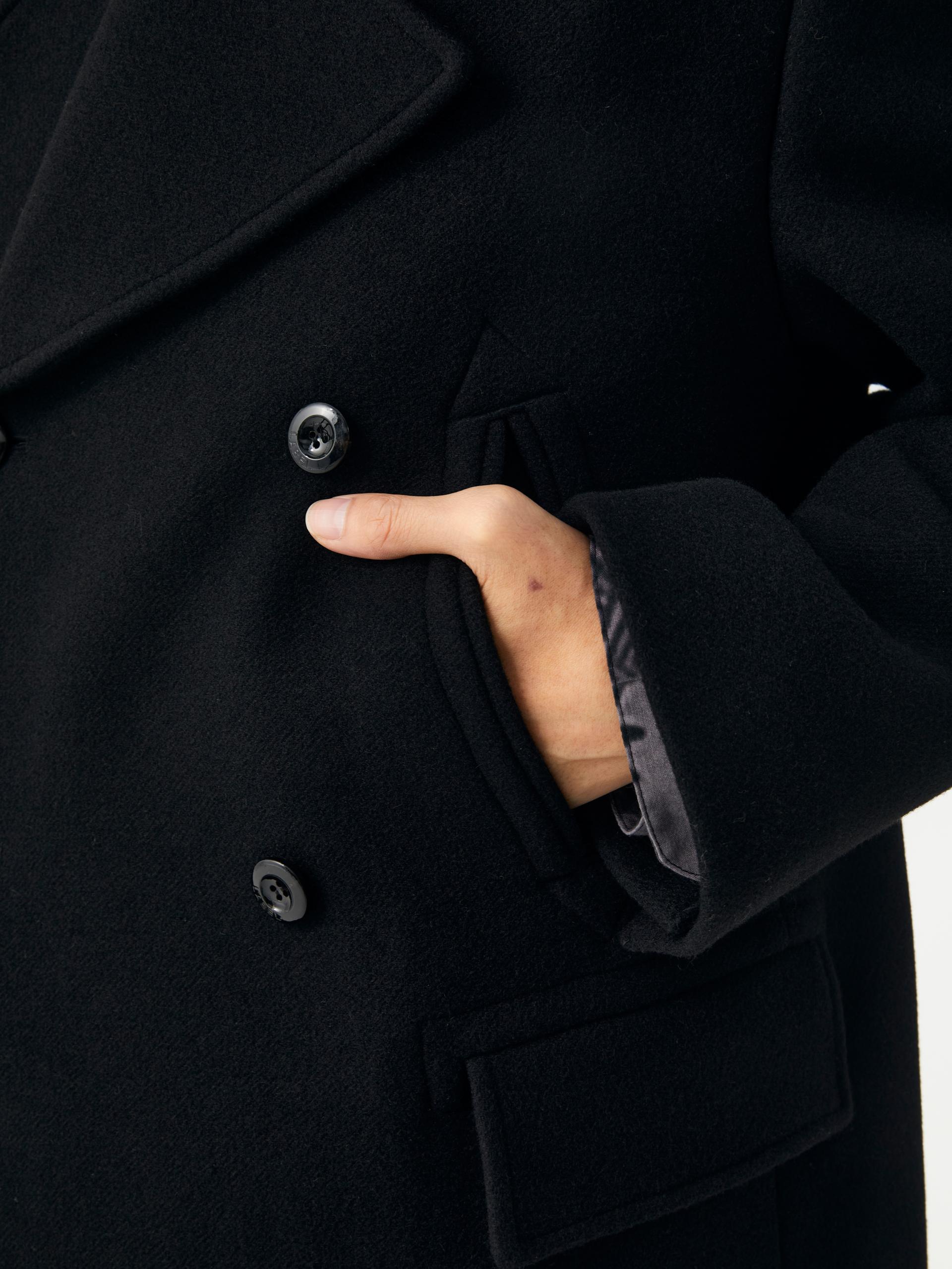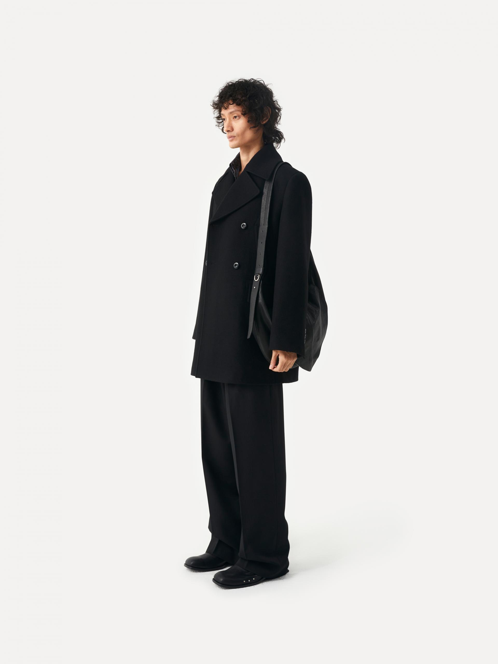 [10/22 순차 출고] 루즈핏 더블 브래스티드 코트 전면 슬래시 포켓&플랩 포켓 내부 속주머니 소매 트임 디테일 LABEL 로고 각인된 소뿔 단추 사용 정교한 실루엣이 돋보이는 미들기장의 더블 버튼 코트 입니다. 옅은 트윌 조직의 울 펠트 원단을 사용하여 탄탄하고 깔끔한 외관을 지녔으며, 와이드한 칼라와 라펠, 더블 버튼 여밈으로 클래식한 무드를 느끼실 수 있습니다. 가슴의 슬래시 포켓, 허리선의 플랩 포켓, 내부 속주머니로 실용성도 겸비한 완성도 높은 제품 입니다. 절제된 비율과 고급스러운 소재감이 어우러진 에센셜한 아이템 입니다. |