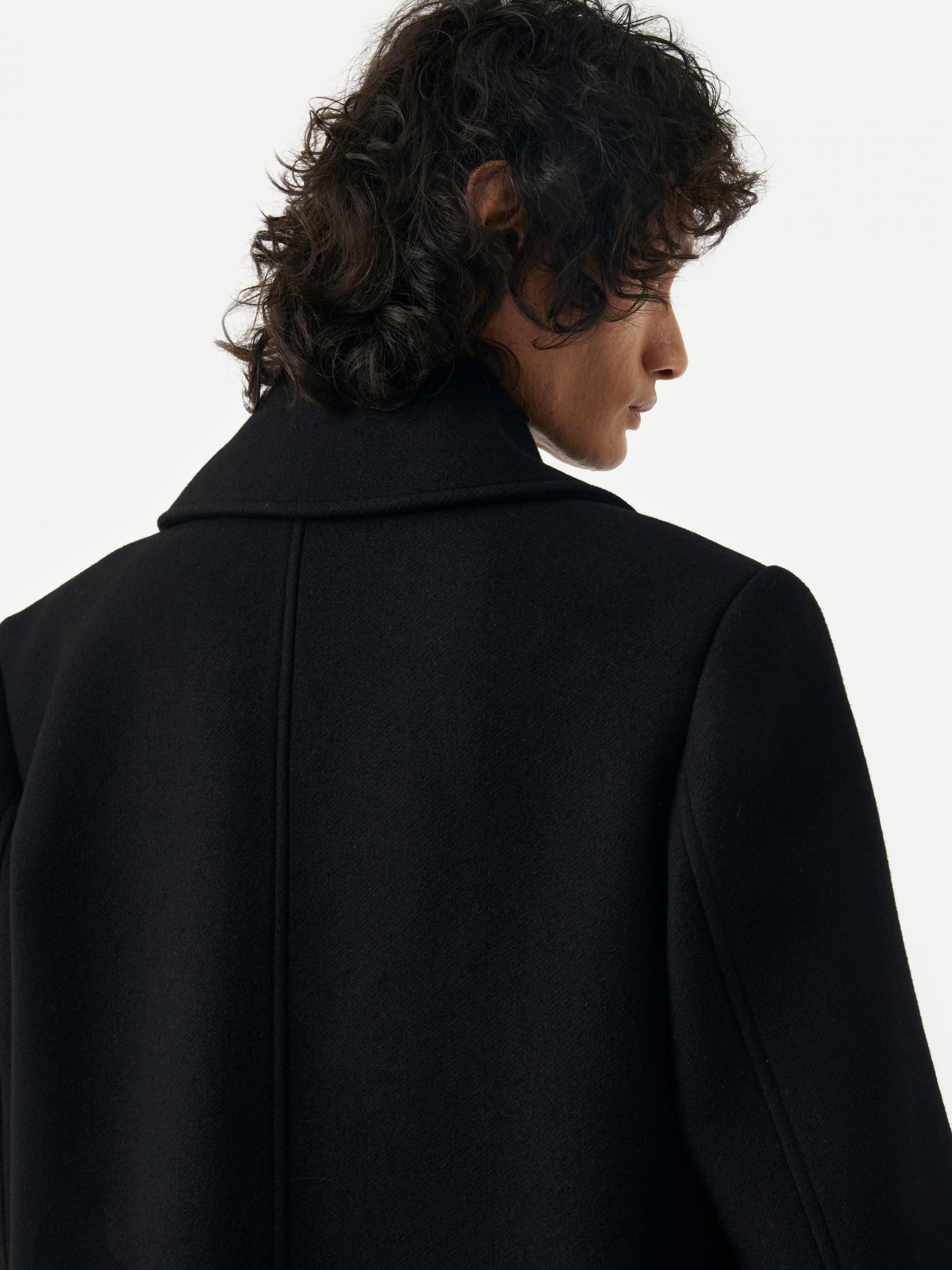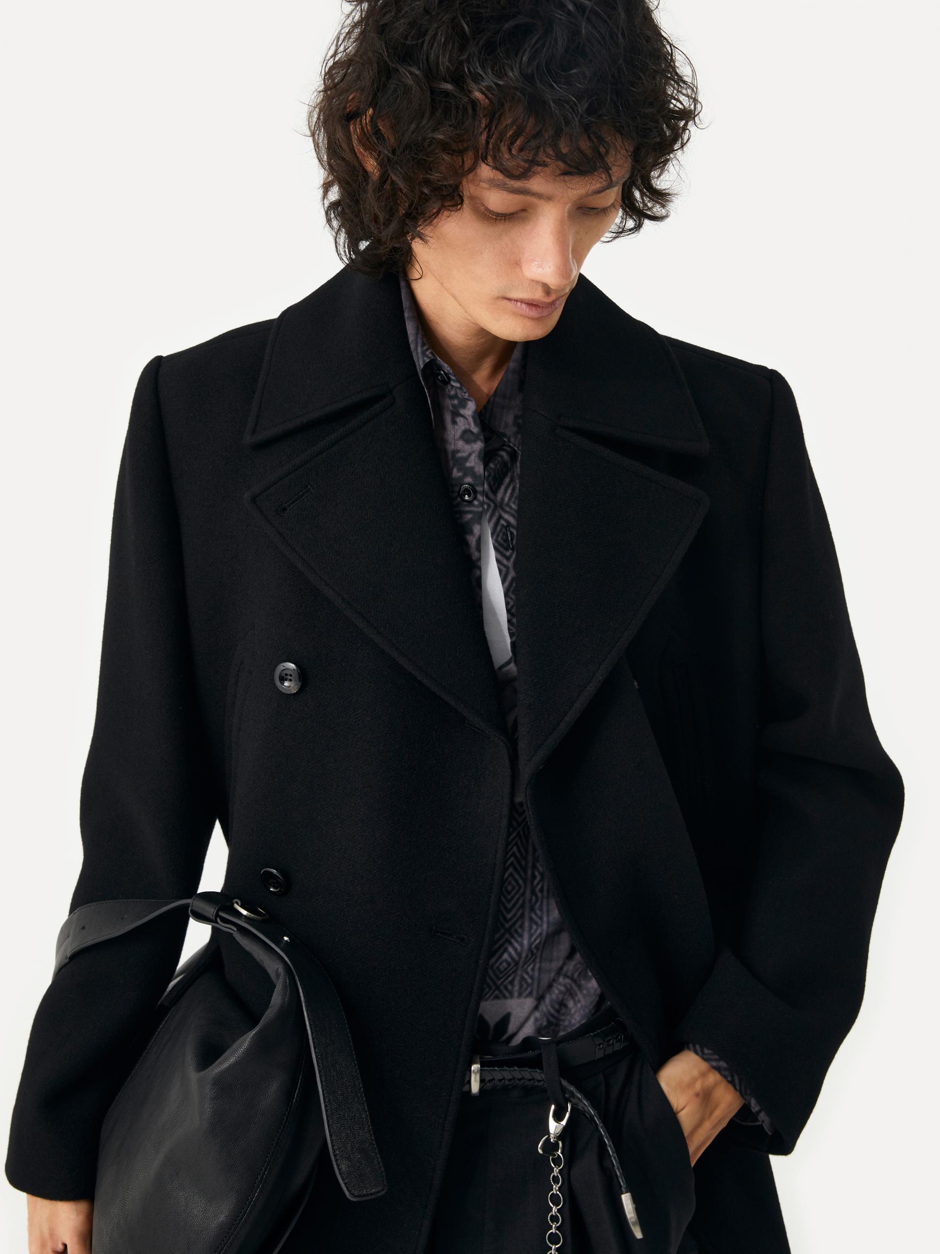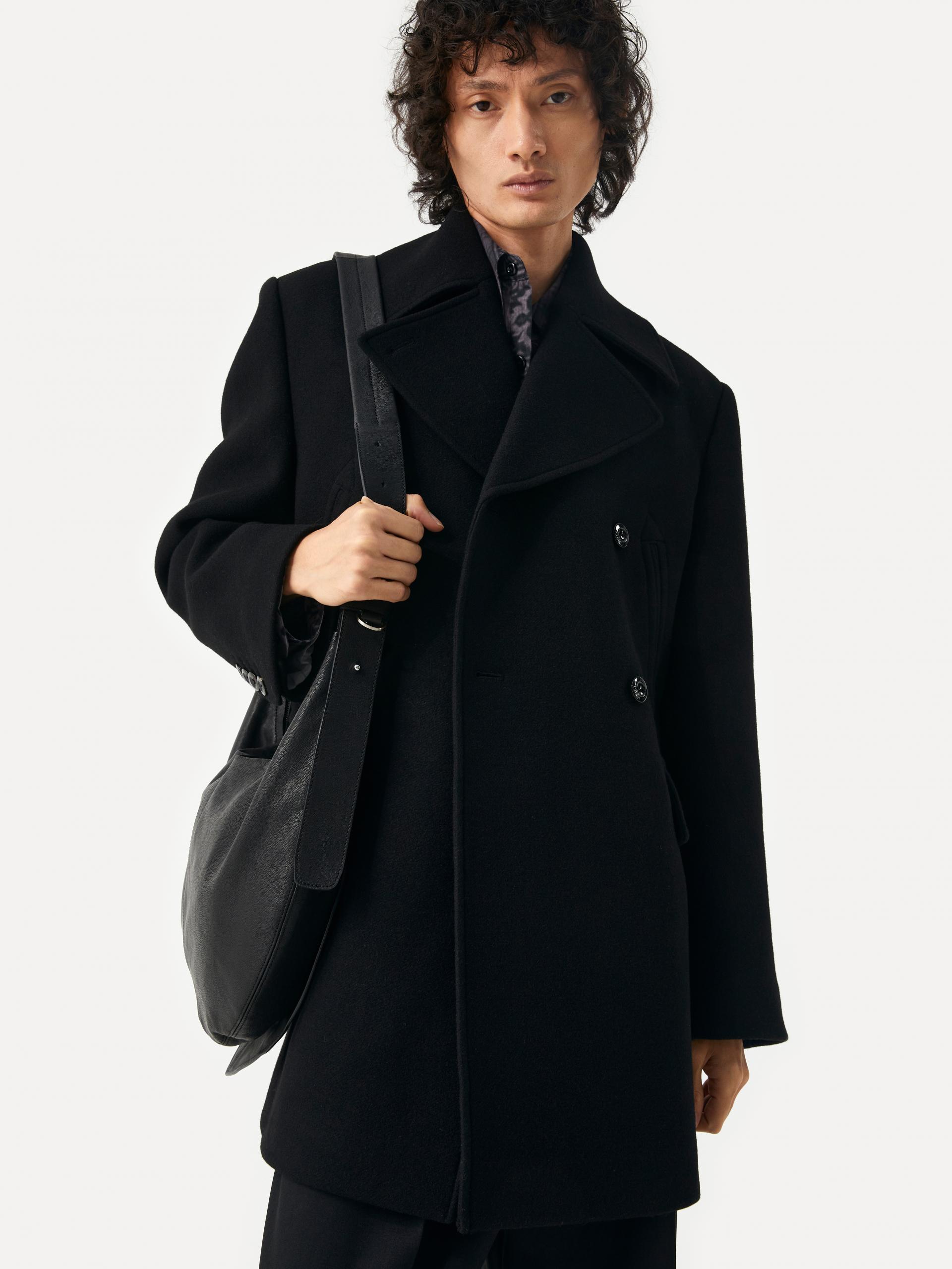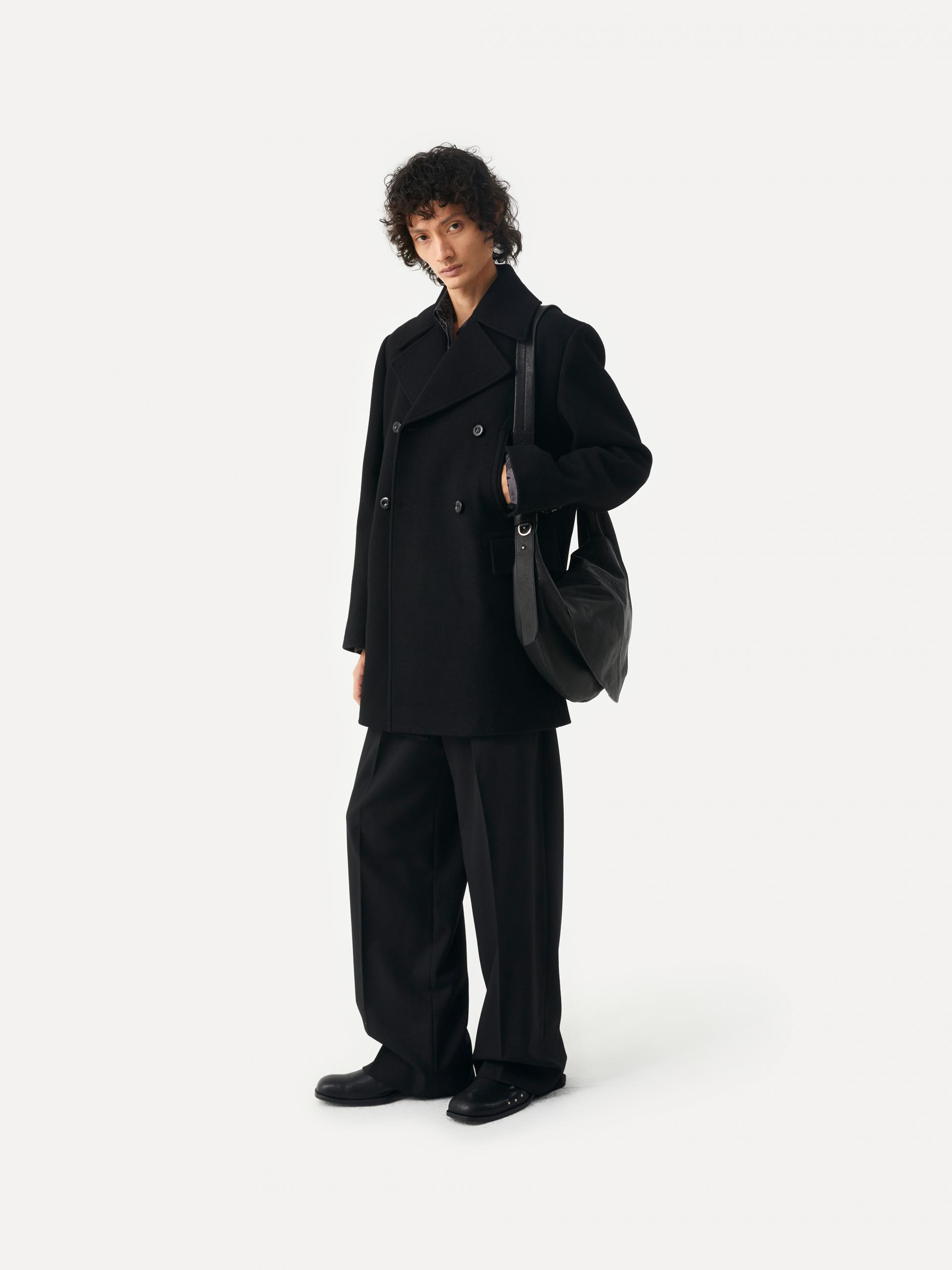 [10/22 순차 출고] 루즈핏 더블 브래스티드 코트 전면 슬래시 포켓&플랩 포켓 내부 속주머니 소매 트임 디테일 LABEL 로고 각인된 소뿔 단추 사용 정교한 실루엣이 돋보이는 미들기장의 더블 버튼 코트 입니다. 옅은 트윌 조직의 울 펠트 원단을 사용하여 탄탄하고 깔끔한 외관을 지녔으며, 와이드한 칼라와 라펠, 더블 버튼 여밈으로 클래식한 무드를 느끼실 수 있습니다. 가슴의 슬래시 포켓, 허리선의 플랩 포켓, 내부 속주머니로 실용성도 겸비한 완성도 높은 제품 입니다. 절제된 비율과 고급스러운 소재감이 어우러진 에센셜한 아이템 입니다. |