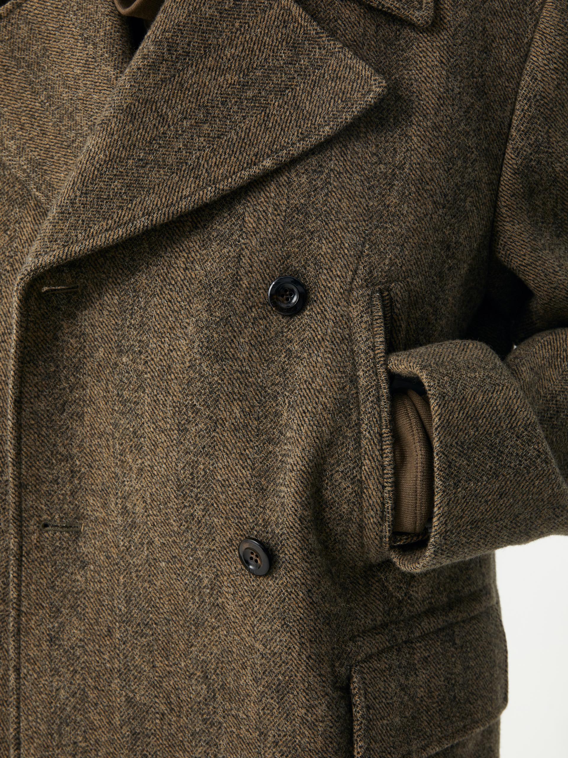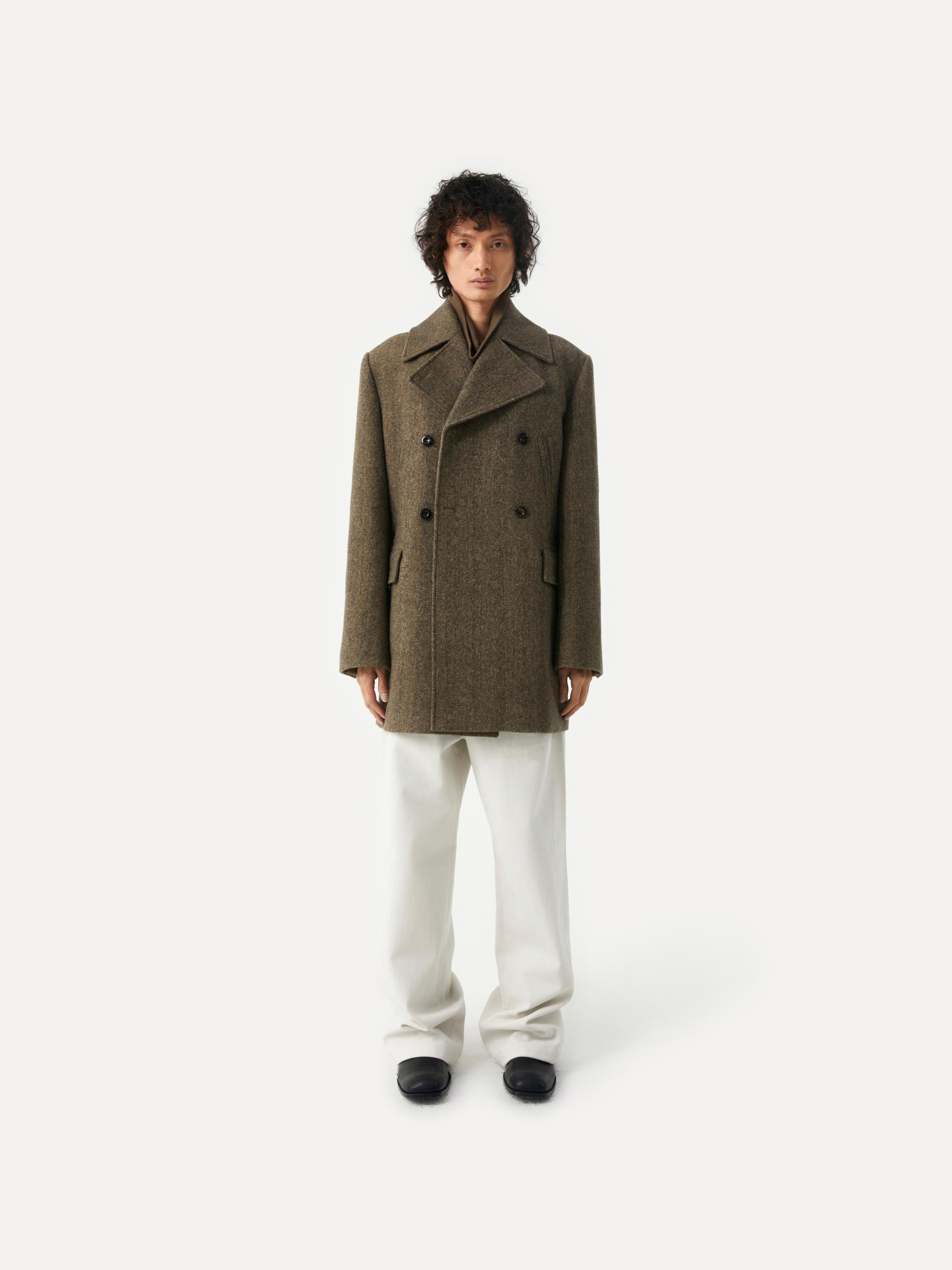 [10/22 순차 출고] 루즈핏 더블 브래스티드 코트 전면 슬래시 포켓&플랩 포켓 내부 속주머니 소매 트임 디테일 LABEL 로고 각인된 소뿔 단추 사용 정교한 실루엣이 돋보이는 미들기장의 더블 버튼 코트 입니다. 은은한 헤링본 조직을 지닌 울 펠트 원단을 사용하여 탄탄하고 깔끔한 외관을 지녔으며, 와이드한 칼라와 라펠, 더블 버튼 여밈으로 클래식한 무드를 느끼실 수 있습니다. 가슴의 슬래시 포켓, 허리선의 플랩 포켓, 내부 속주머니로 실용성도 겸비한 완성도 높은 제품 입니다. 절제된 비율과 고급스러운 소재감이 어우러진 에센셜한 아이템 입니다. |