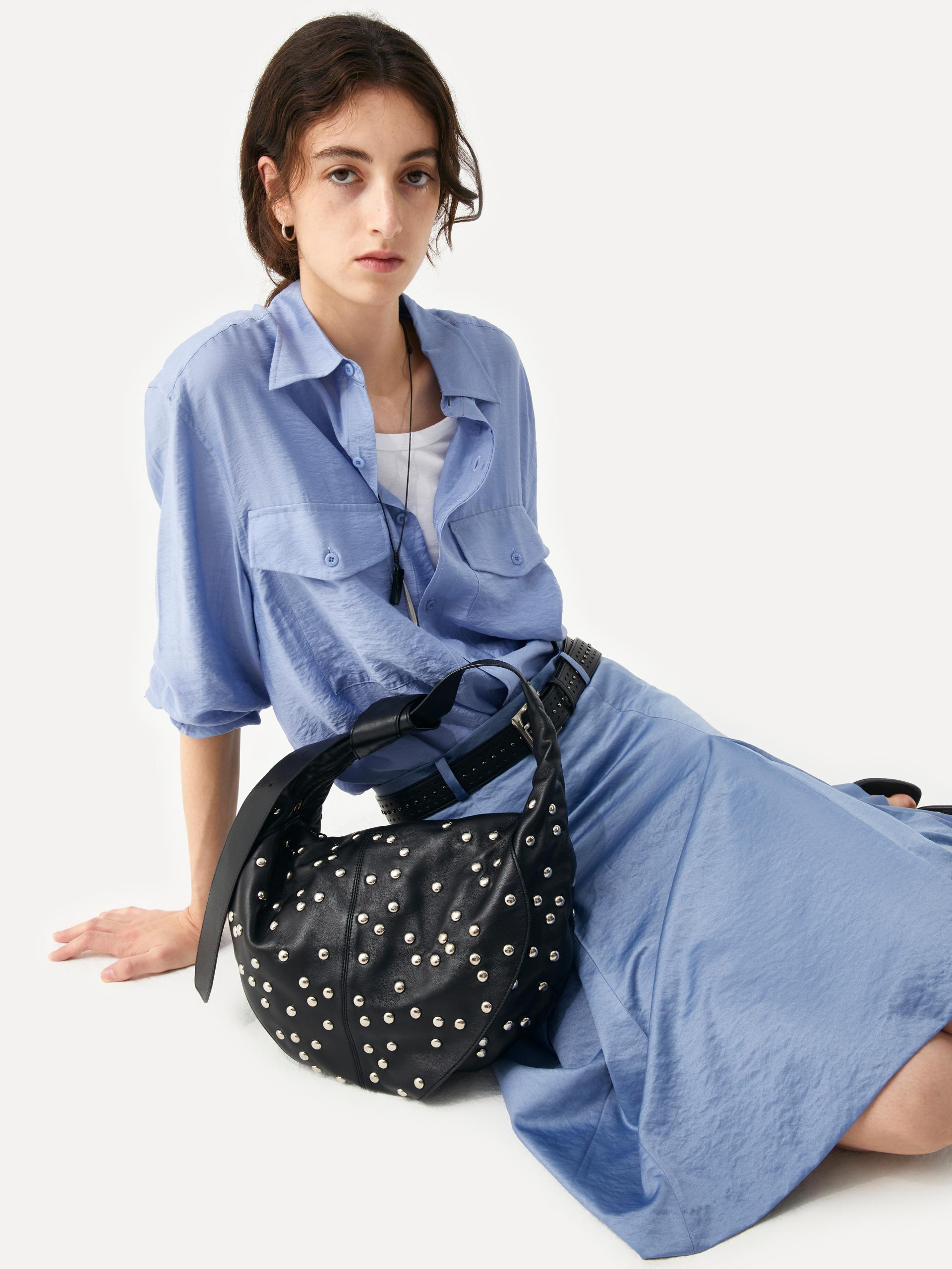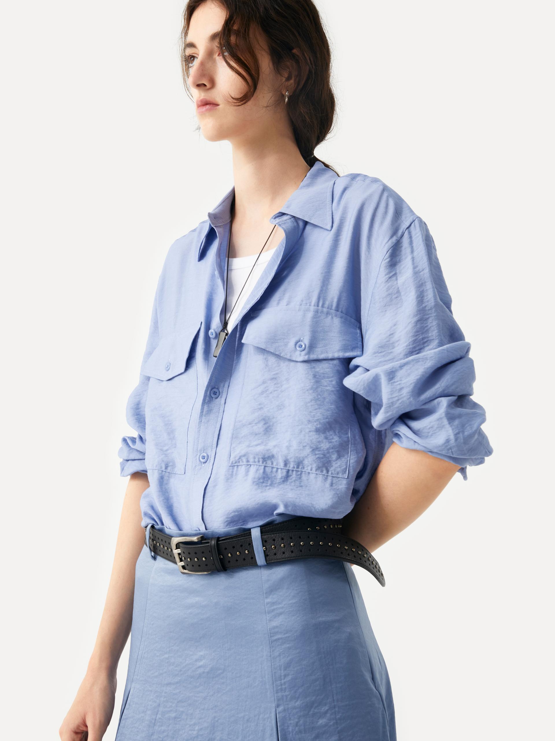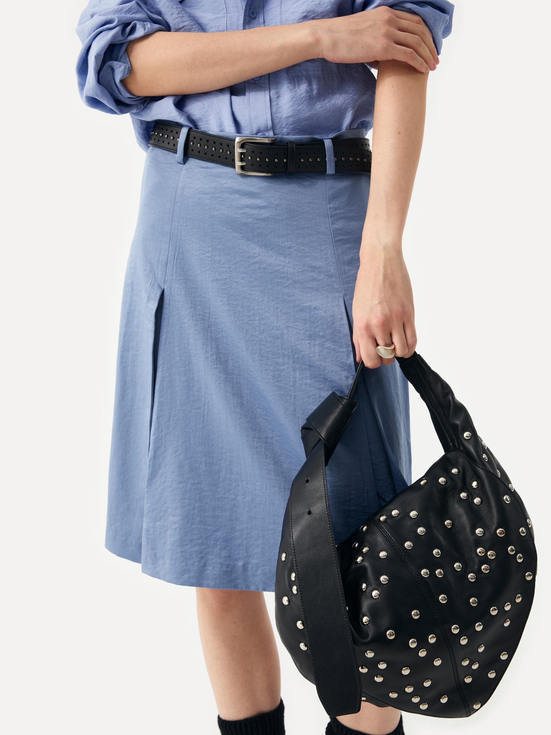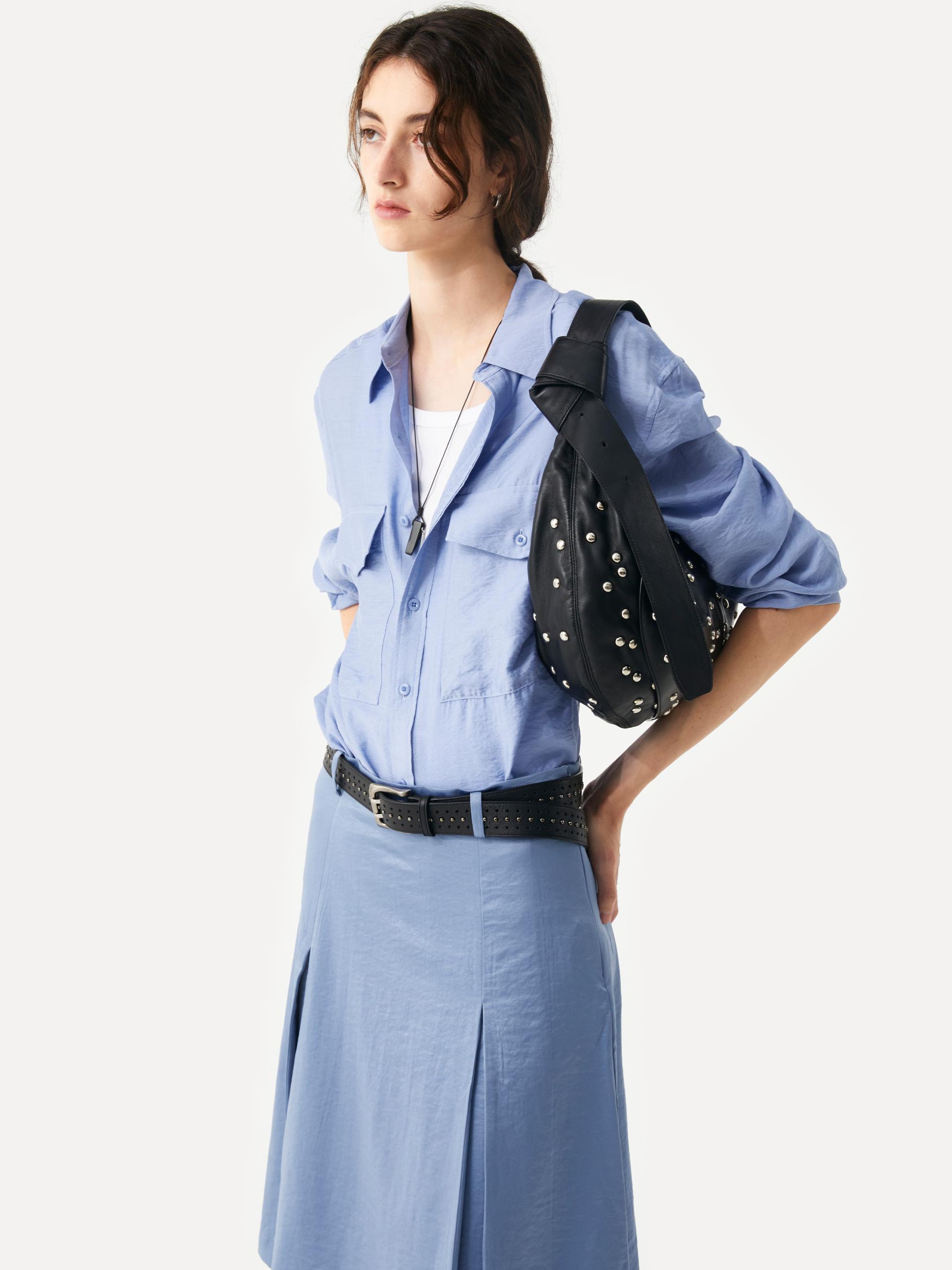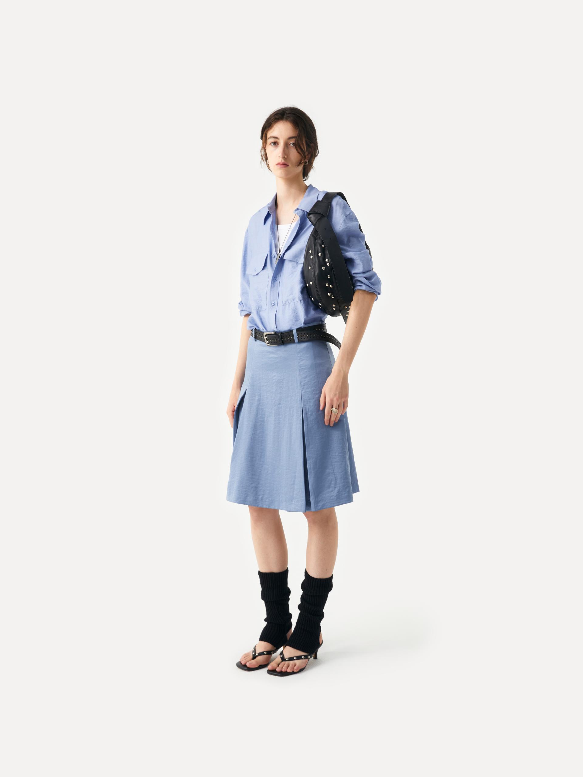 [9/26 순차 출고] A라인 미디 스커트 앞/뒤 맞주름 디테일 옆선 지퍼 여밈 앞·뒤로 더해진 두 개의 맞주름이 우아한 볼륨을 만들어주는 A라인 미디 스커트 입니다. 벨벳 터치의 섬세한 텍스쳐와 선명하면서도 깊은 컬러감은 룩에 고급스러운 포인트를 더합니다. 숨겨진 맞주름 디테일, 옆선 지퍼 여밈등은 미니멀한 외관을 완성하며 깔끔한 실루엣으로 착용됩니다. |