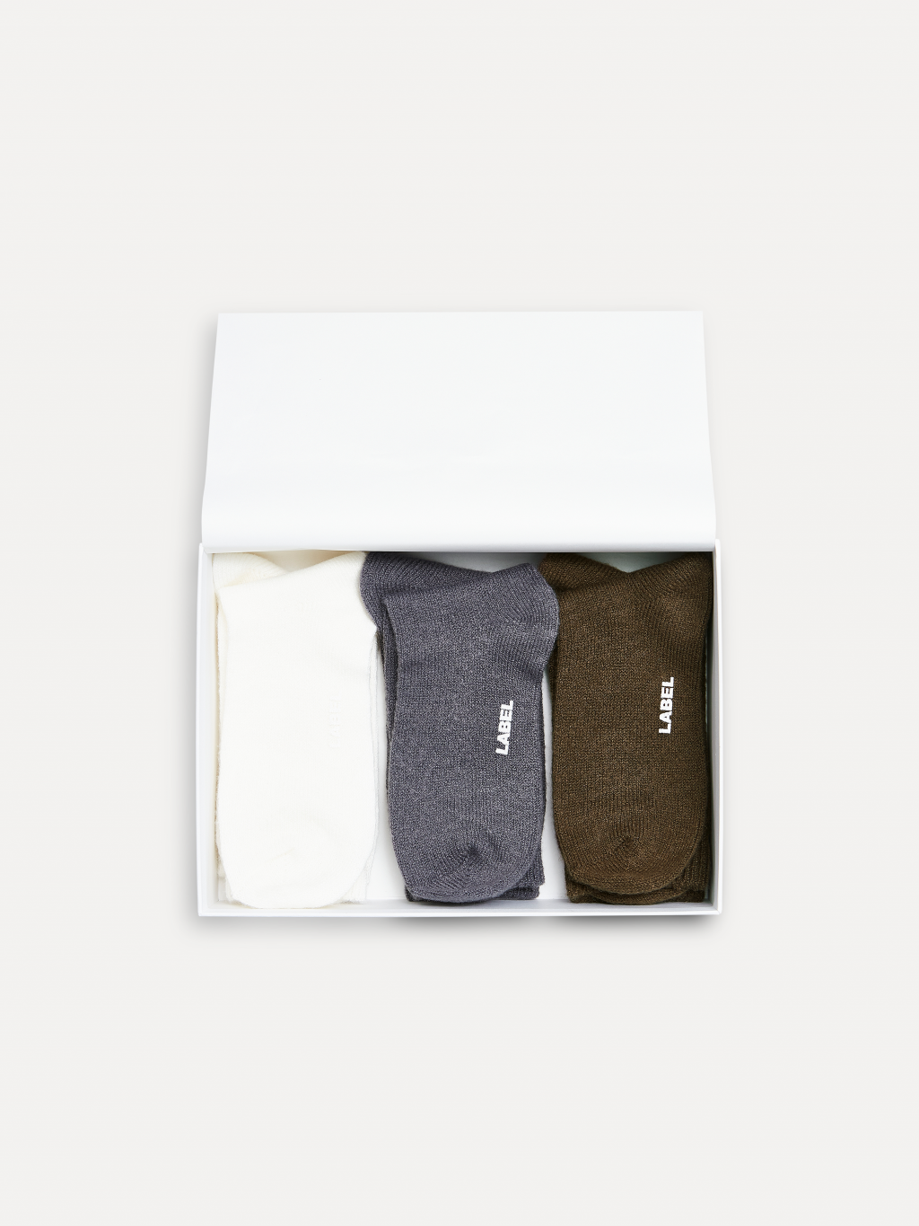 Lumire socks 를 원하는 컬러로 구성하여 구매하실 수 있는 [ 3PACK ] 세트 구성 입니다. · 소중한 마음을 전하는 선물처럼, 정성스러운 마음을 담아 박스 패키지로 보내드립니다. 니트 양말 바닥면 로고 나염 · 수작업으로 진행되는 나염 특성상 나염이 고르지 않은 부분이 있을 수 있으나, 이는 불량이 아님을 안내드립니다. 부드러운 촉감으로 편안한 착용감을 느낄 수 있는 제품입니다. 발목을 적당히 덮는 기장과 차분한 컬러 구성으로 다양한 스타일에 자연스럽게 어우러집니다. 깔끔한 외관 속 은은한 조직감이 드러나 룩에 세련된 포인트를 더해주는 아이템입니다. |