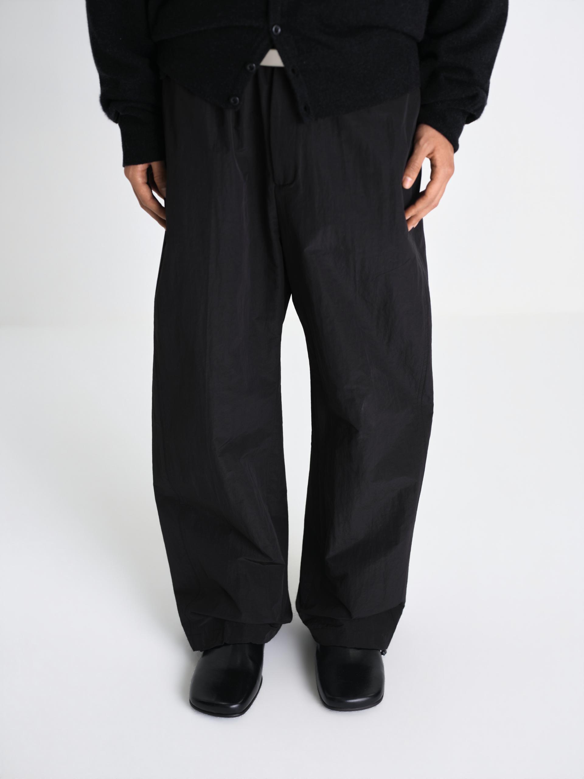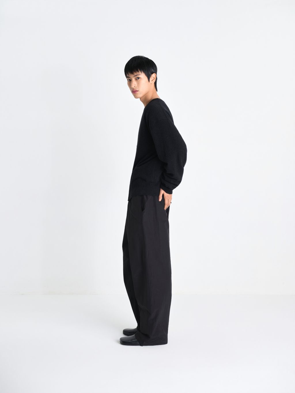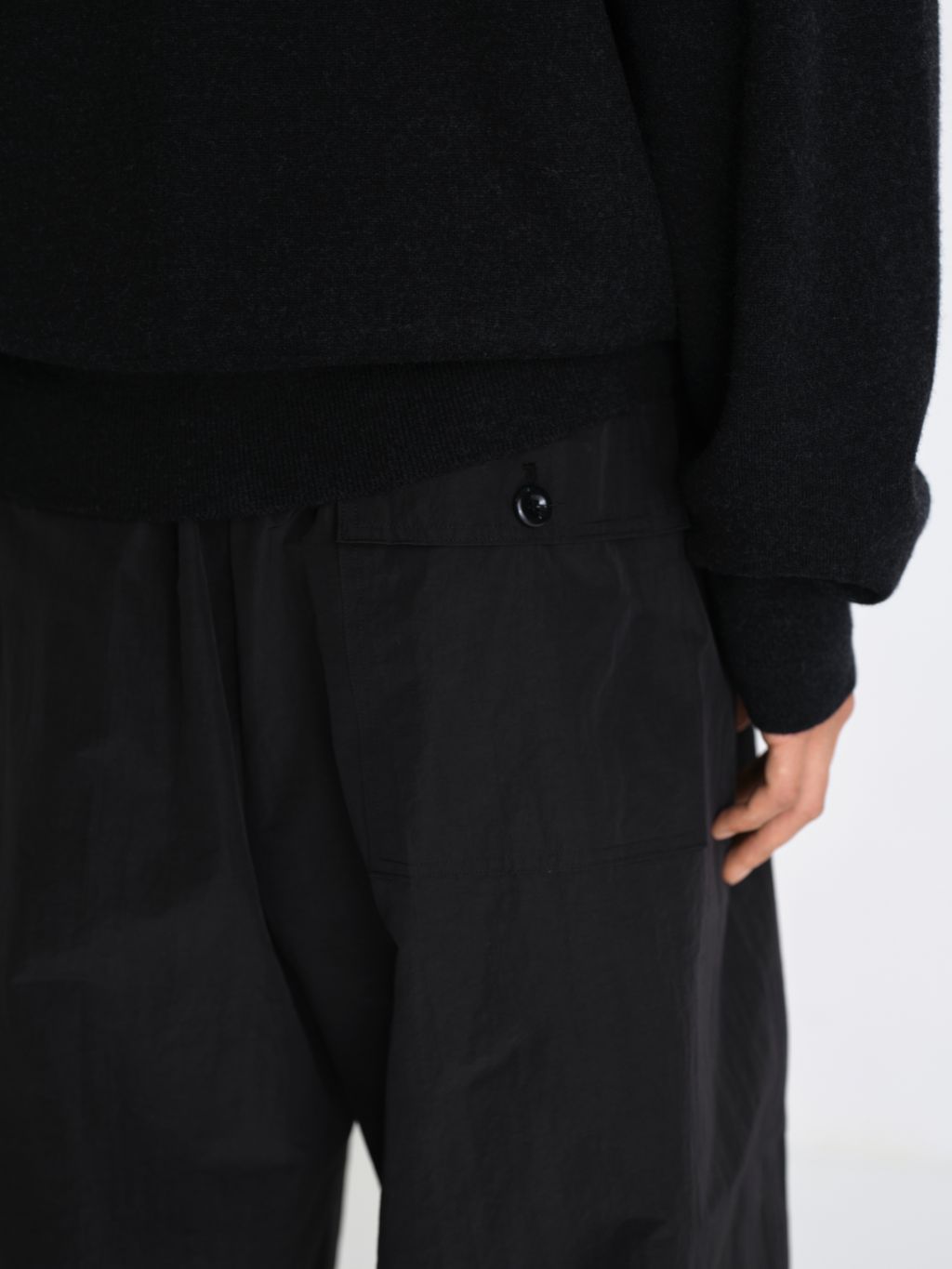 바스락거리는 질감과 자연스러운 주름감 다양한 실루엣 연출이 가능한 밑단 스트링 원단 맞춤 염색 단추 디테일 편안한 착용감과 자유로운 실루엣 조절이 돋보이는 이즈 핏(Ease-fit) 팬츠입니다. 바스락거리는 경쾌한 소재감에 자연스러운 주름 가공을 더해져 별도의 관리 없이도 편안한 무드를 유지하며, 와이드하게 떨어지는 핏 설계로 여유로운 실루엣을 완성합니다. 허리 라인은 유연한 밴딩 처리를 통해 편안함을 극대화함과 동시에 벨트 고리를 추가하여, 다양한 스타일로 표현할 수 있도록 설계되었습니다. 밑단의 스트링 디테일을 활용해 와이드 팬츠나 조거 팬츠 등 원하는 형태로 자유롭게 조절할 수 있으며, 후면의 아웃포켓 디테일로 캐주얼한 완성도를 높였습니다. 원단 컬러에 맞춰 세밀하게 염색된 단추 디테일이 시각적 정돈감을 주어, 일상 속에서 활용도 높은 아이템입니다. |