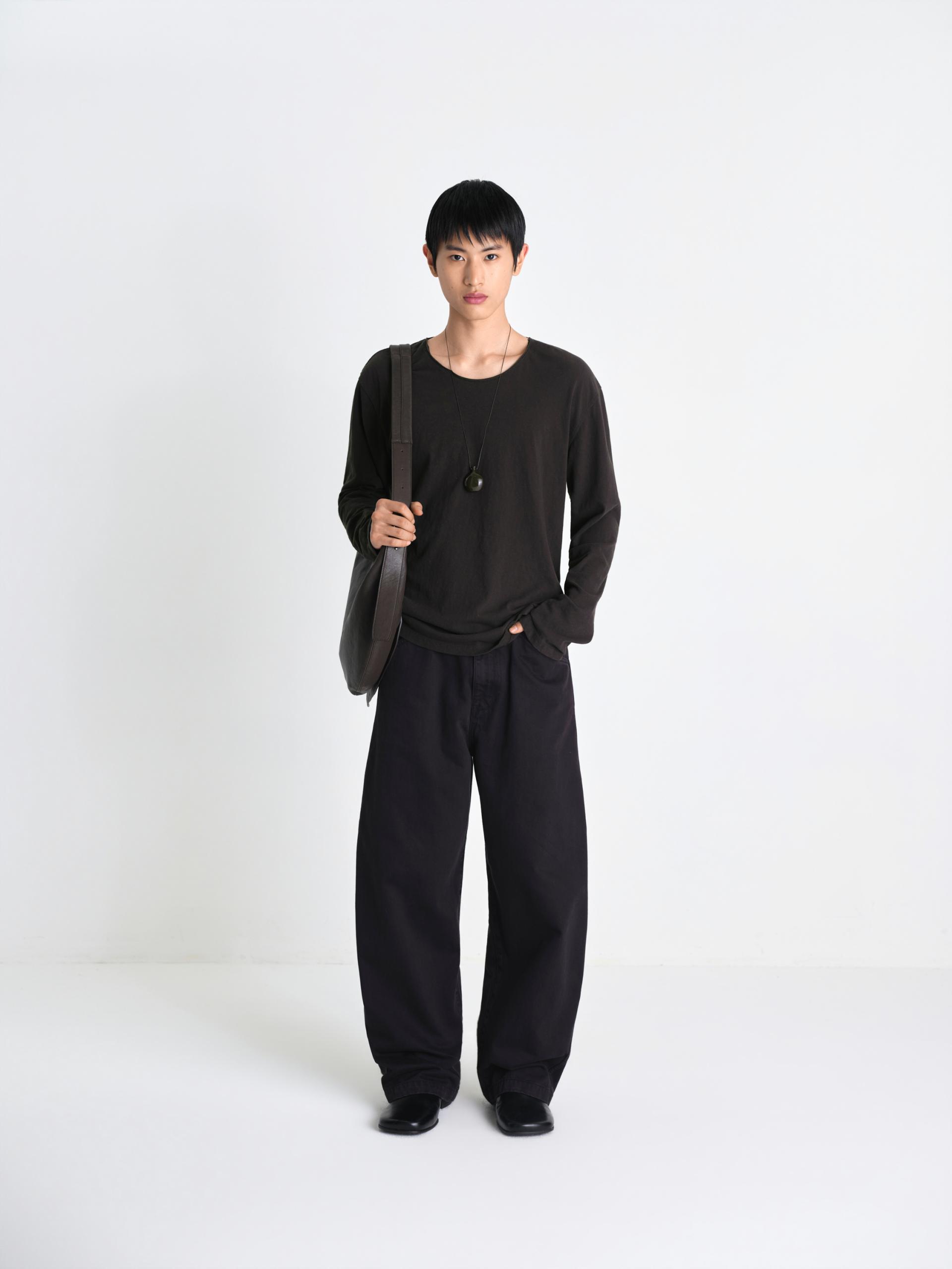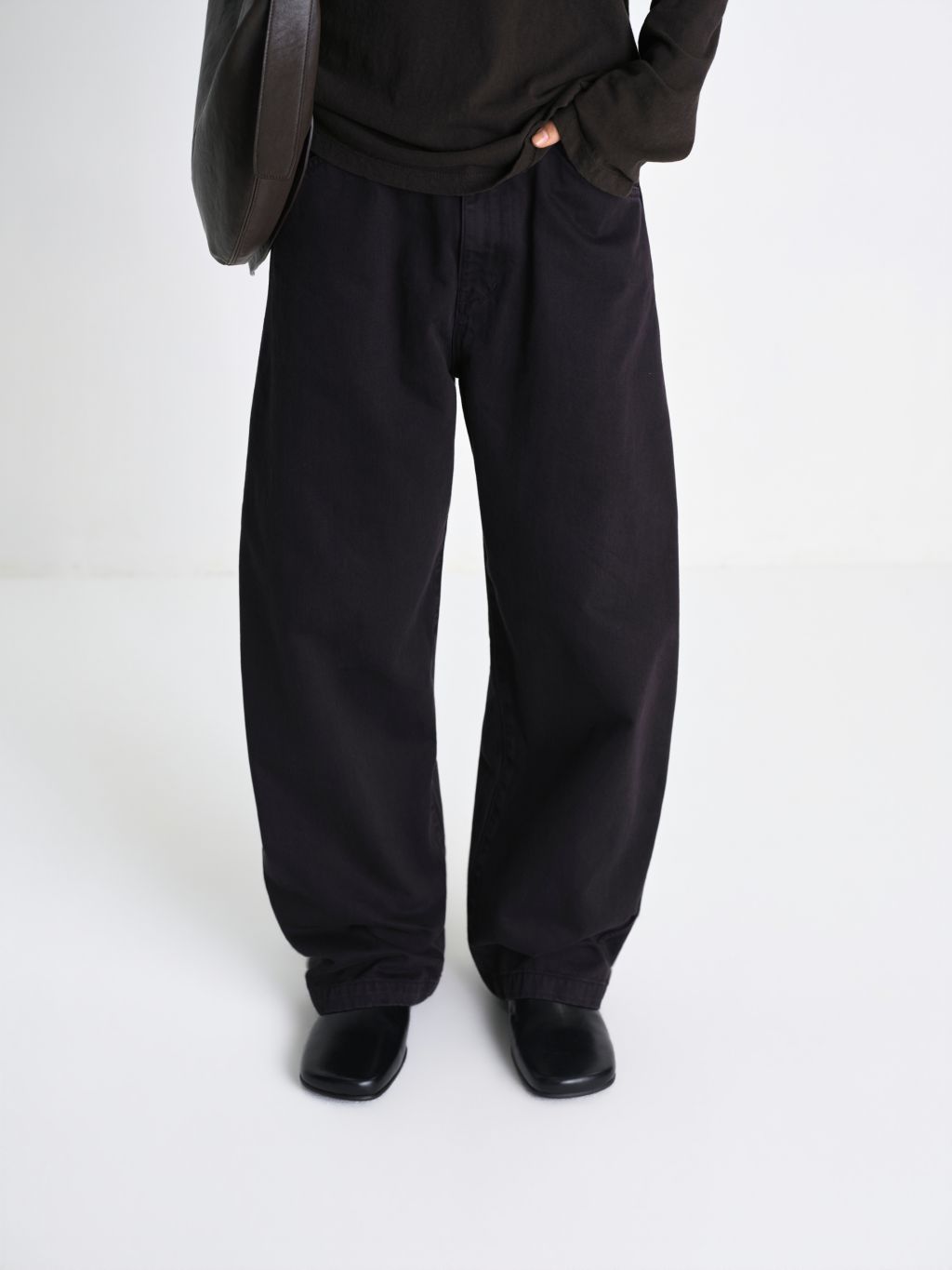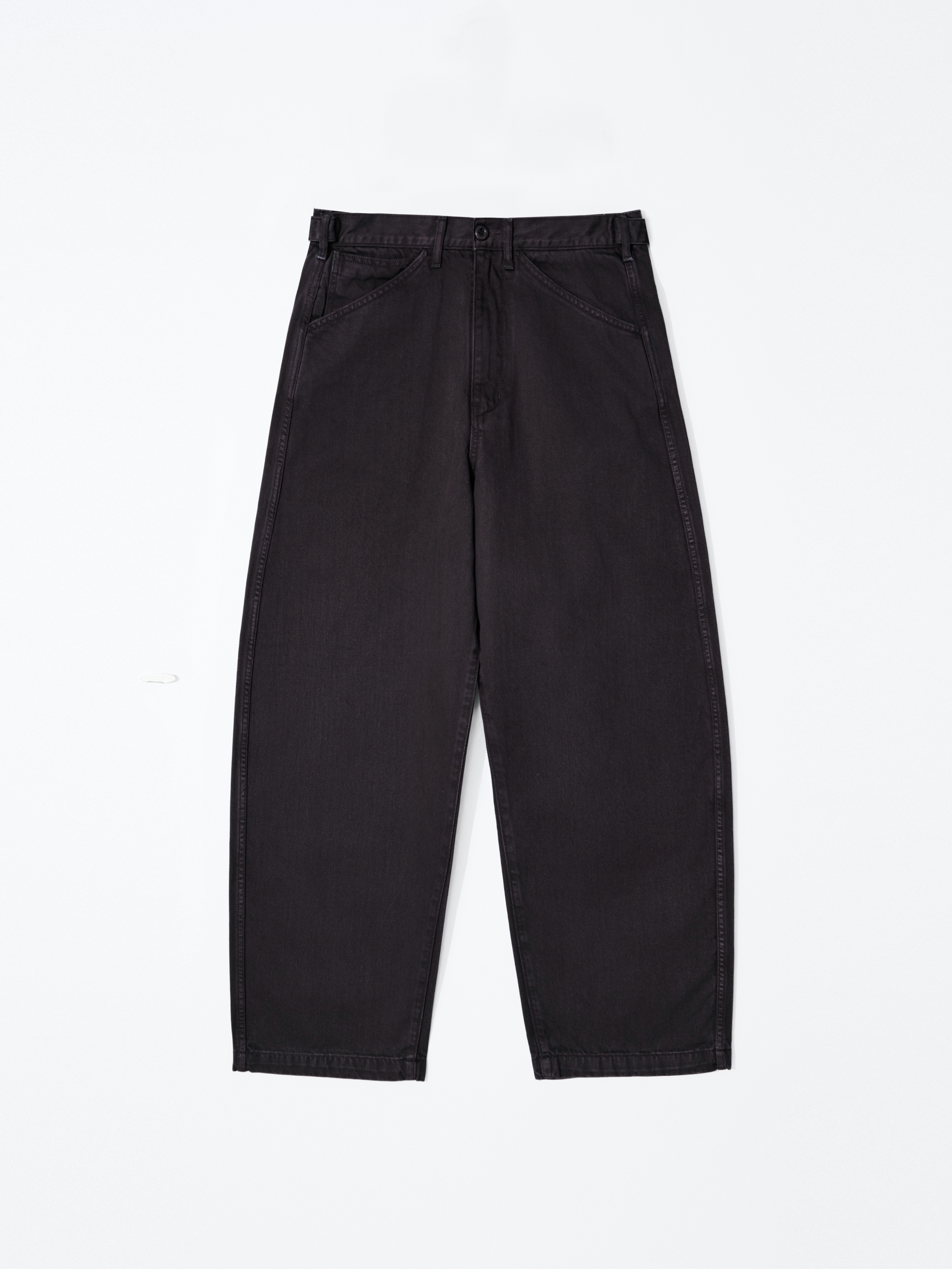 입체적인 와이드 커브드 핏 사이즈 조절 가능한 비조 디테일 빈티지한 슬럽 질감과 워싱 원단 맞춤 염색 단추 와이드한 커브드 실루엣과 감도 높은 색감이 돋보이는 어드저스터블 데님입니다. 탄탄한 원단감을 바탕으로 인체의 곡선을 따라 설계된 커브드 핏이 입체적이면서도 안정적인 형태력을 유지해주며, 원단 특유의 슬럽이 느껴지는 빈티지한 표면과 워싱 공정을 통해 탄탄하지만 편안한 착용감을 구현했습니다. 뒤 허리 라인의 스트랩 디테일을 통해 체형에 맞게 자유로운 사이즈 조절이 가능하며, 전체적으로 여유로운 핏 설계로 편안하고 여유 있는 무드를 선사합니다. 정교한 염색 가공을 거쳐 차분하면서도 오묘한 깊이감이 느껴지는 독보적인 컬러를 완성했으며, 원단색에 맞추어 세심하게 염색된 단추 디테일을 더해 시각적으로 정돈된 미니멀한 무드를 완성했습니다. 절제된 디테일과 유려한 실루엣이 조화를 이룬 아이템입니다. |