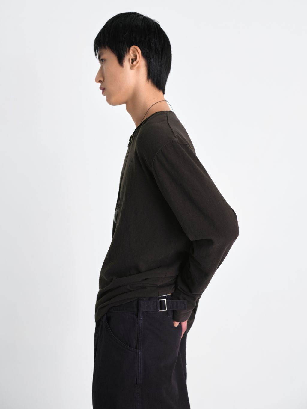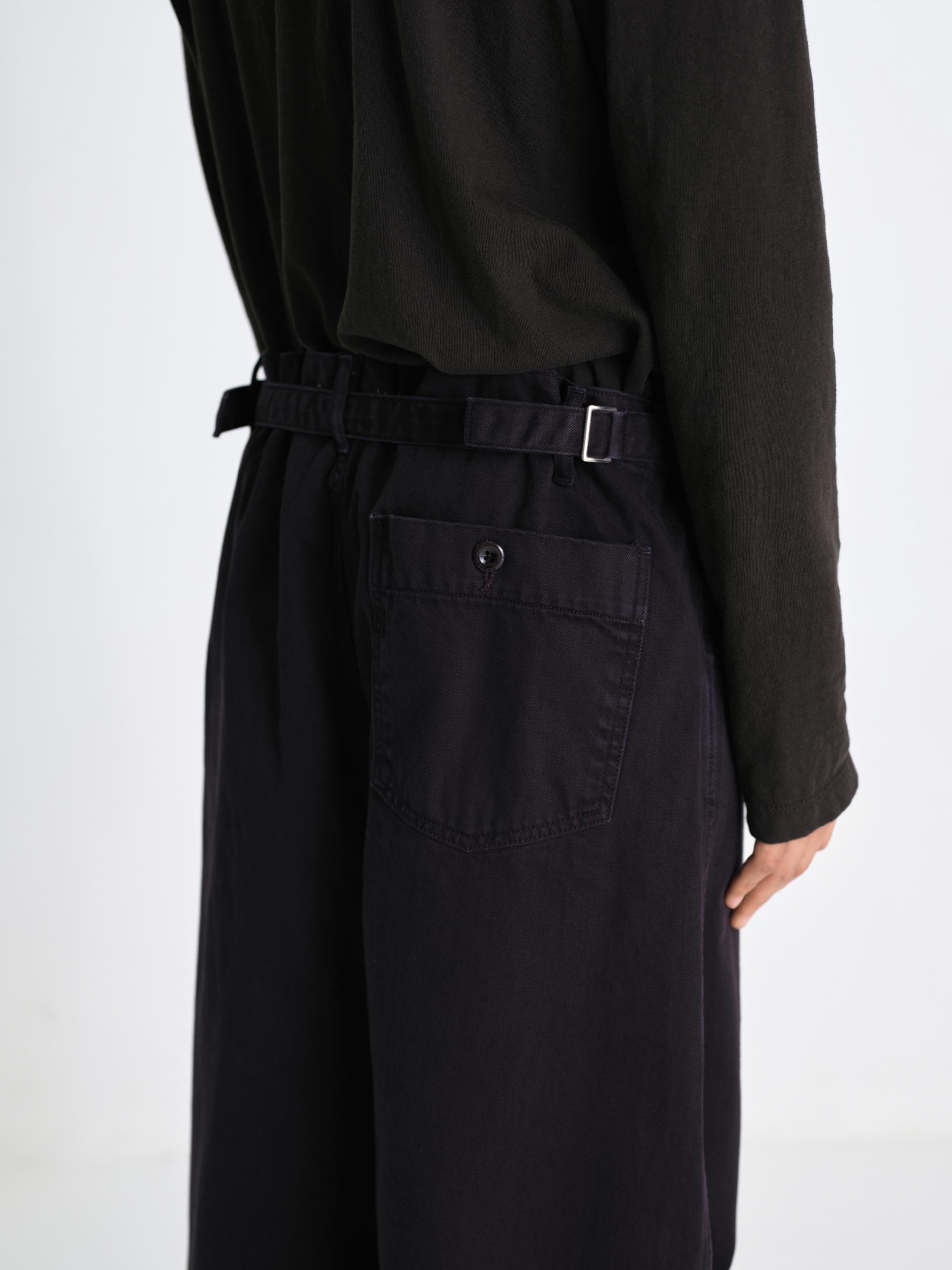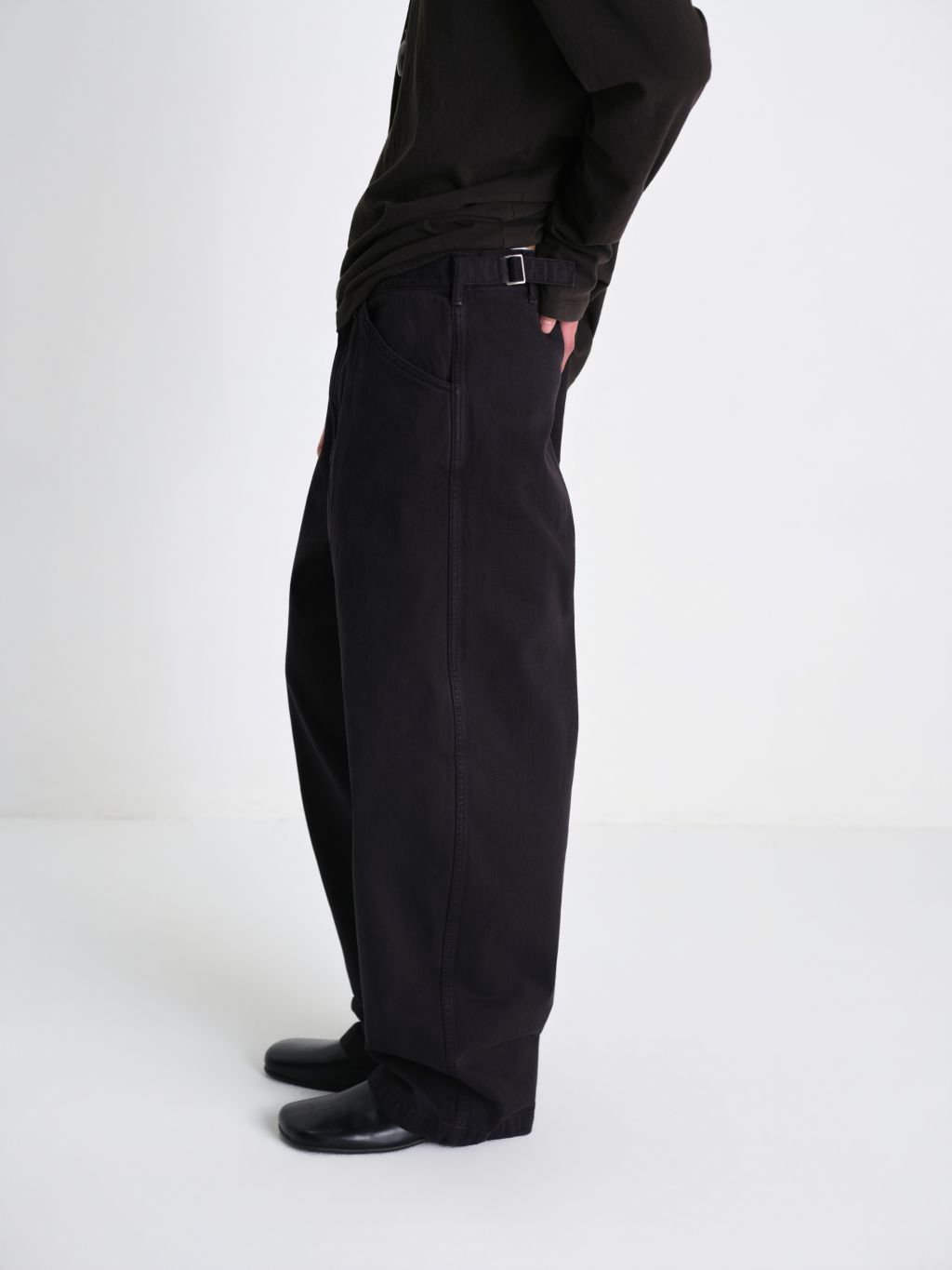 입체적인 와이드 커브드 핏 사이즈 조절 가능한 비조 디테일 빈티지한 슬럽 질감과 워싱 원단 맞춤 염색 단추 와이드한 커브드 실루엣과 감도 높은 색감이 돋보이는 어드저스터블 데님입니다. 탄탄한 원단감을 바탕으로 인체의 곡선을 따라 설계된 커브드 핏이 입체적이면서도 안정적인 형태력을 유지해주며, 원단 특유의 슬럽이 느껴지는 빈티지한 표면과 워싱 공정을 통해 탄탄하지만 편안한 착용감을 구현했습니다. 뒤 허리 라인의 스트랩 디테일을 통해 체형에 맞게 자유로운 사이즈 조절이 가능하며, 전체적으로 여유로운 핏 설계로 편안하고 여유 있는 무드를 선사합니다. 정교한 염색 가공을 거쳐 차분하면서도 오묘한 깊이감이 느껴지는 독보적인 컬러를 완성했으며, 원단색에 맞추어 세심하게 염색된 단추 디테일을 더해 시각적으로 정돈된 미니멀한 무드를 완성했습니다. 절제된 디테일과 유려한 실루엣이 조화를 이룬 아이템입니다. |