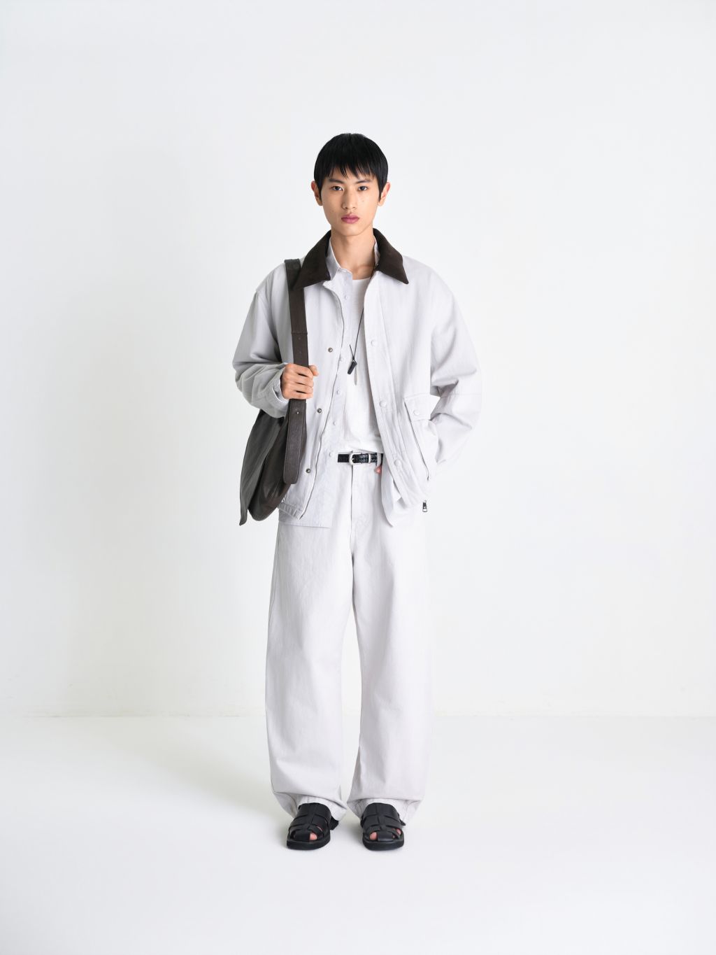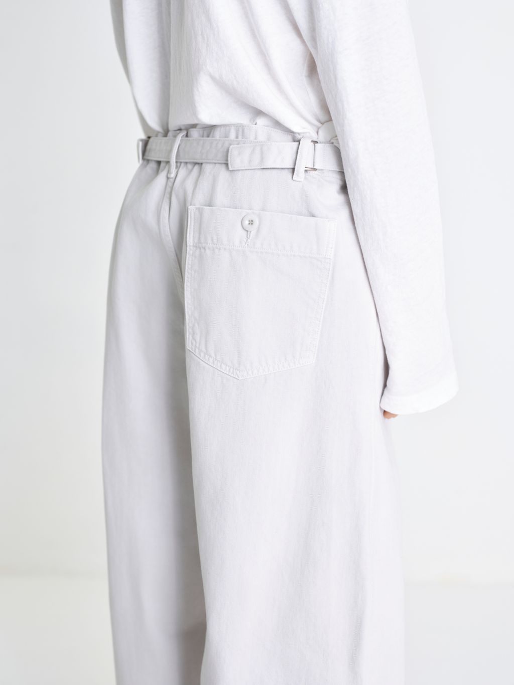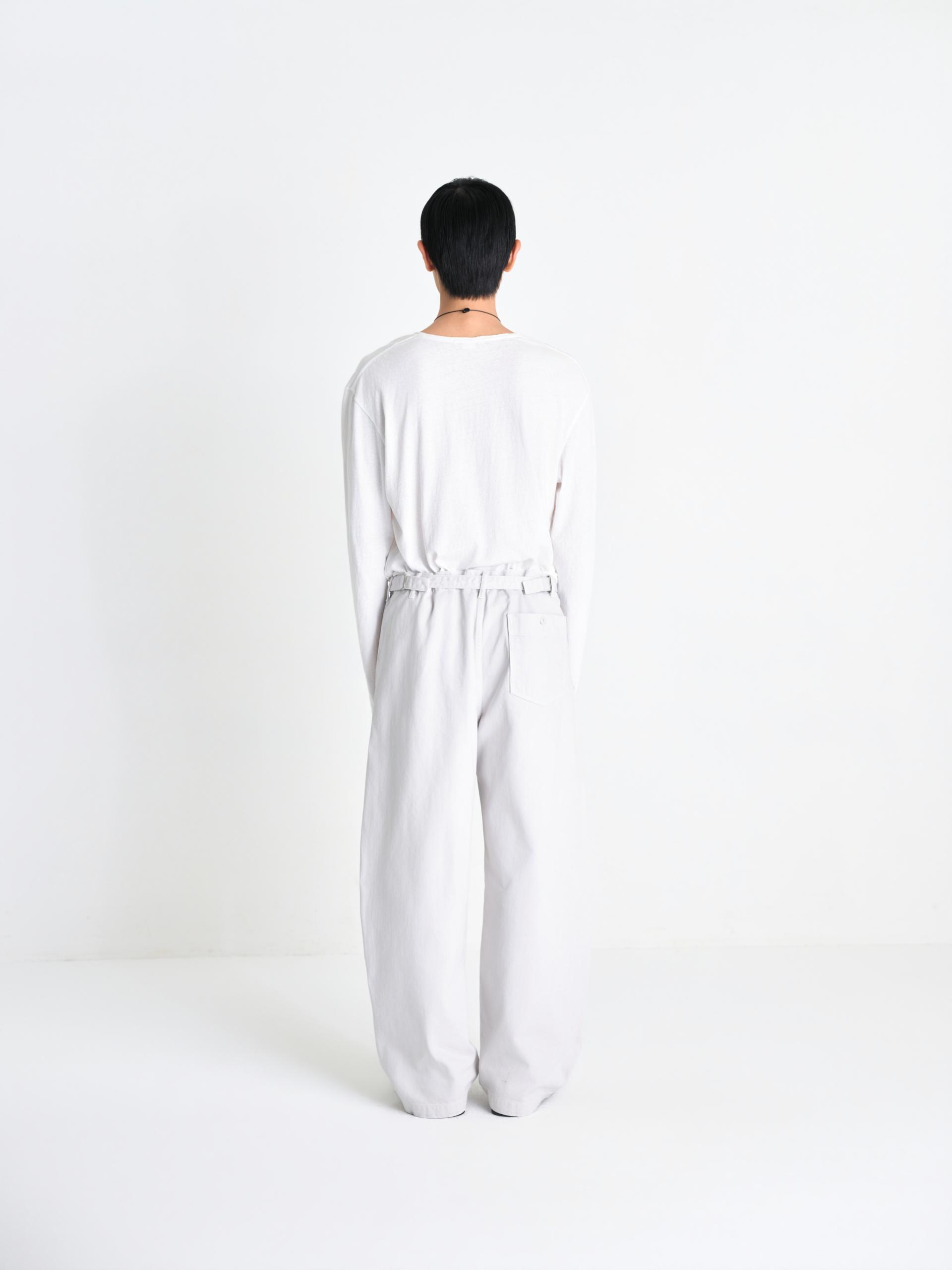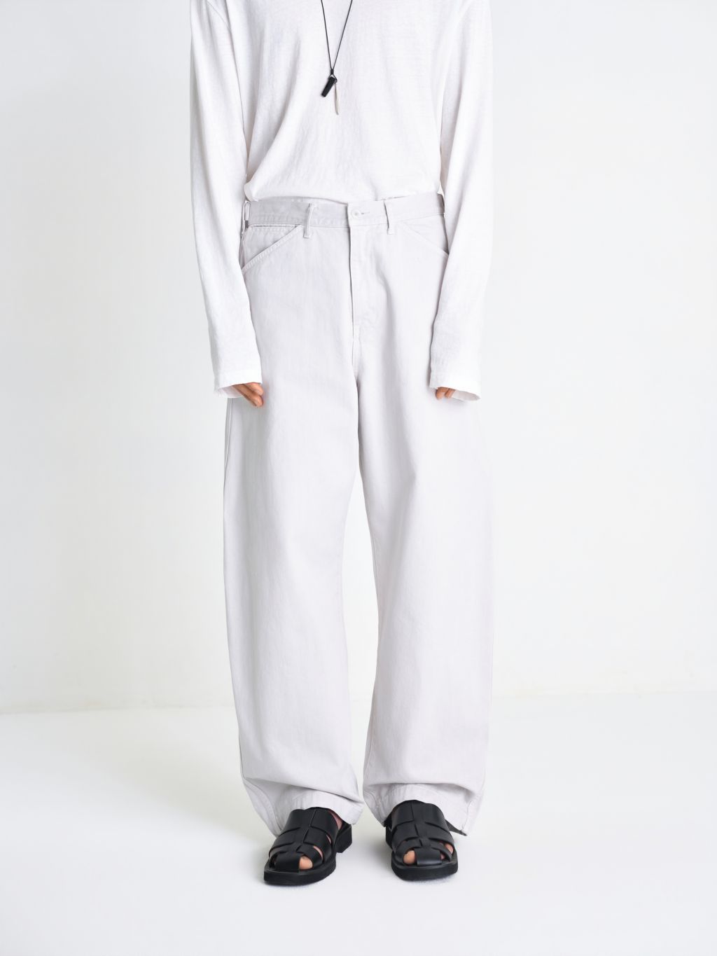 입체적인 와이드 커브드 핏 사이즈 조절 가능한 비조 디테일 빈티지한 슬럽 질감과 워싱 원단 맞춤 염색 단추 와이드한 커브드 실루엣과 감도 높은 색감이 돋보이는 어드저스터블 데님입니다. 탄탄한 원단감을 바탕으로 인체의 곡선을 따라 설계된 커브드 핏이 입체적이면서도 안정적인 형태력을 유지해주며, 원단 특유의 슬럽이 느껴지는 빈티지한 표면과 워싱 공정을 통해 탄탄하지만 편안한 착용감을 구현했습니다. 뒤 허리 라인의 스트랩 디테일을 통해 체형에 맞게 자유로운 사이즈 조절이 가능하며, 전체적으로 여유로운 핏 설계로 편안하고 여유 있는 무드를 선사합니다. 정교한 염색 가공을 거쳐 차분하면서도 오묘한 깊이감이 느껴지는 독보적인 컬러를 완성했으며, 원단색에 맞추어 세심하게 염색된 단추 디테일을 더해 시각적으로 정돈된 미니멀한 무드를 완성했습니다. 절제된 디테일과 유려한 실루엣이 조화를 이룬 아이템입니다. |
