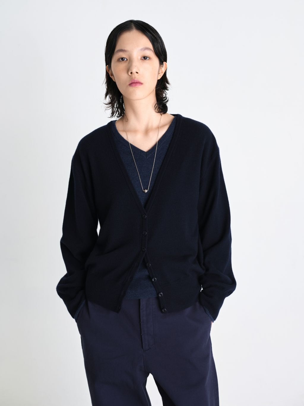 Hiora merino air wool cardigan dark navy