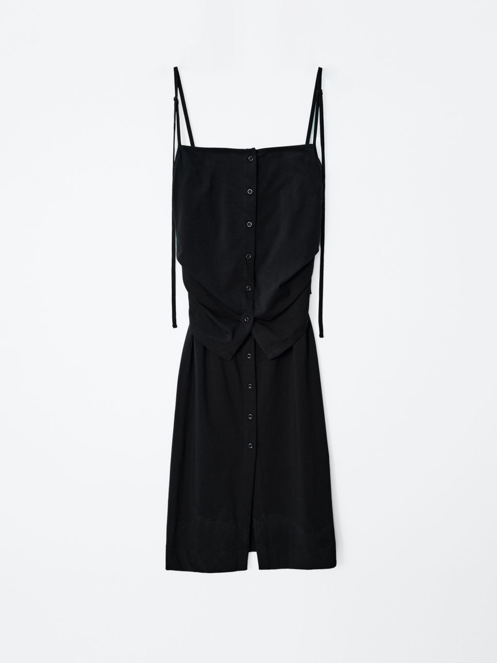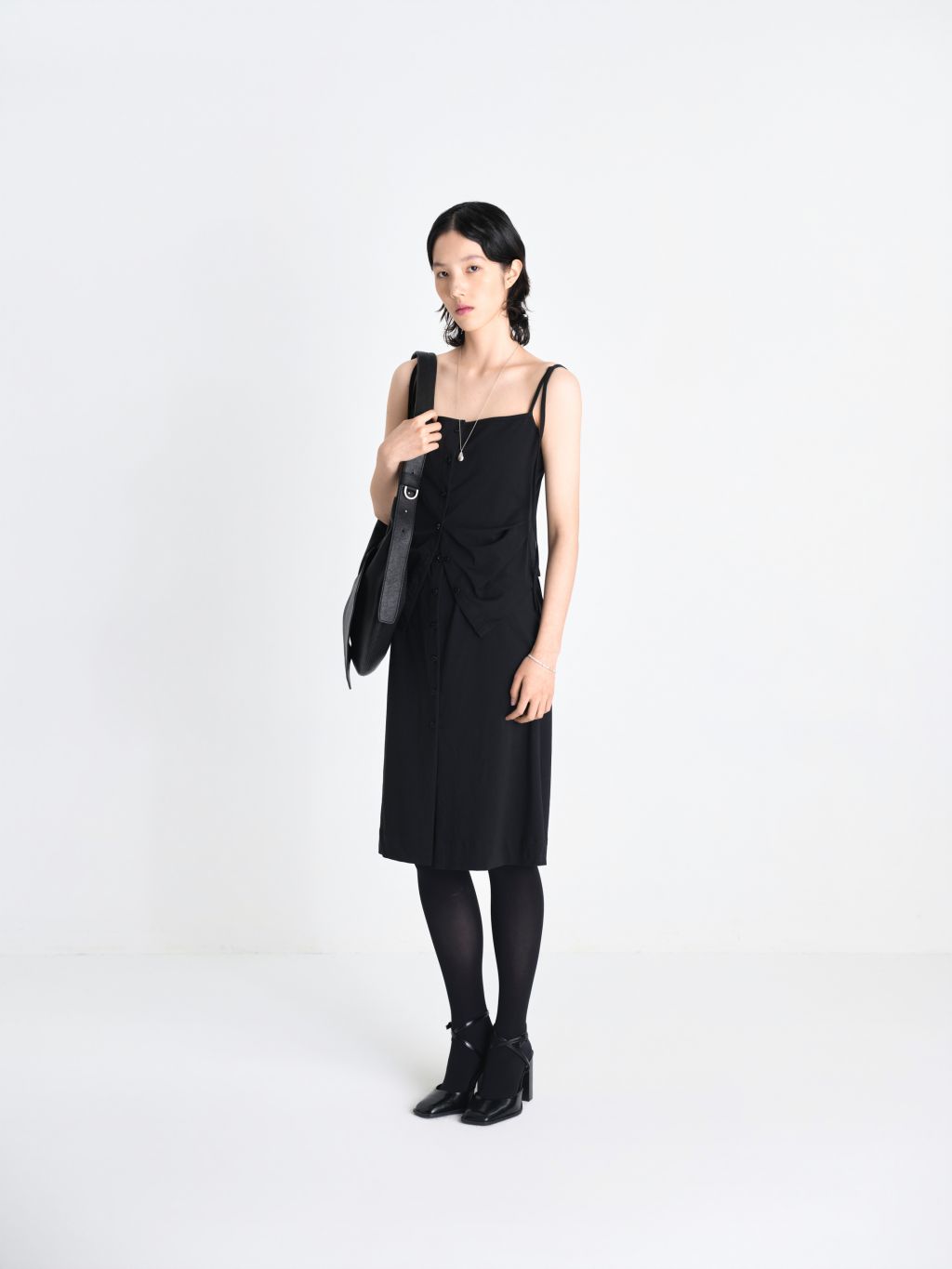 3/20 순차 출고 부드러운 저지 소재의 편안한 착용감 자연스러운 드레이프와 레이어드 디테일 입체적인 실루엣을 구현하는 턱 디테일 부드러운 저지 소재의 편안함과 정교하게 설계된 드레이프 레이어드 디테일이 돋보이는 캐주얼 드레스입니다. 피부에 닿는 촉감이 우수한 저지 원단을 사용하여 일상 속에서 가볍고 편안하게 착용할 수 있으며, 슬리브리스 탑에 자연스럽게 생기는 드레이프를 위해 더해진 턱디테일의 섬세한 설계로 입체감 있는 실루엣을 구현했습니다. 전면에는 원단 컬러와 동일하게 염색된 단추들을 촘촘하게 배치하여, 잔잔하면서도 완성도 높은 미니멀 무드를 완성했습니다. 깨끗하고 정갈한 인상을 주는 얇은 어깨 끈 디테일이 전체적인 라인을 가볍게 잡아주어 단독으로도 세련된 연출이 가능합니다. 절제된 디자인 속에 녹아든 정교한 디테일로, 매일의 일상을 더욱 특별하고 편안하게 만들어줄 아이템입니다. |