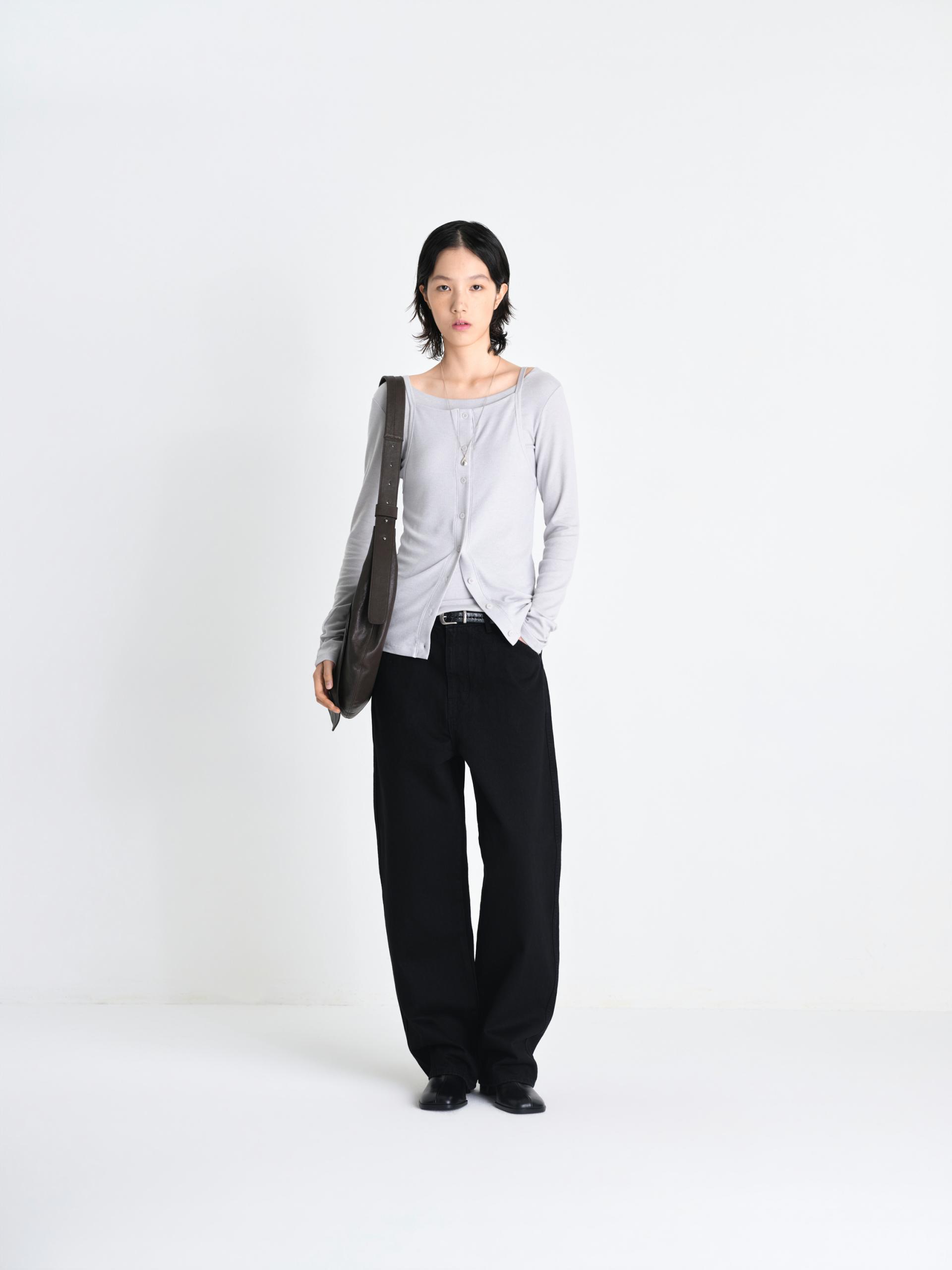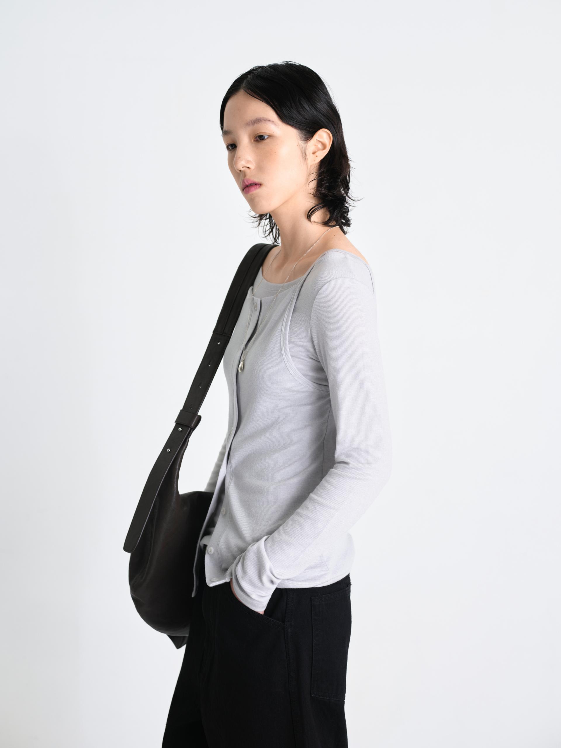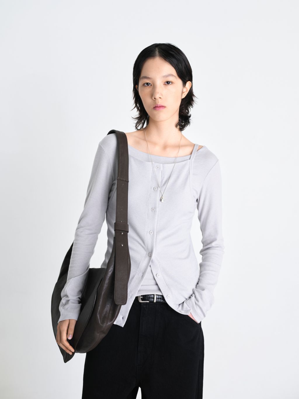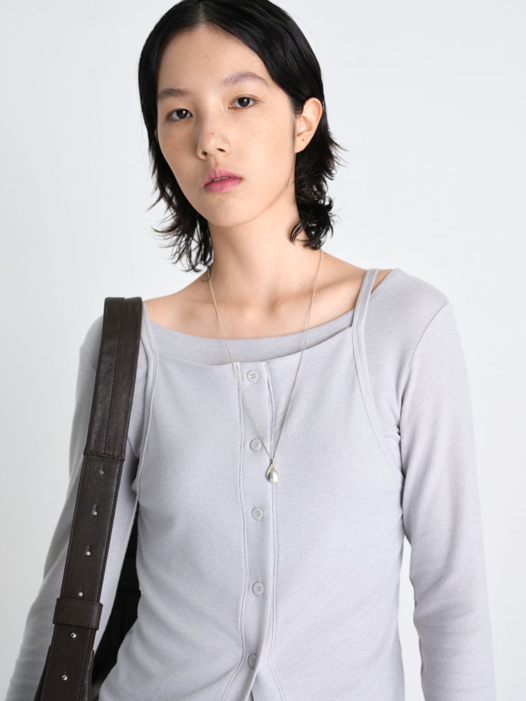 보트넥 탑과 슬리브리스의 레이어드 구성 텐션감이 우수한 부드러운 소재감 원단 맞춤 염색 단추 디테일 와이드한 보트넥 라인의 탑과 섬세한 단추 디테일의 슬리브리스가 조화를 이루는 레이어드 아이템입니다. 부드러운 터치감과 텐션감을 지닌 원단을 사용하여 몸을 부드럽게 감싸는 편안한 착용감을 구현했으며, 원단 컬러와 일체감을 주는 염색 단추 디테일을 더해 정돈된 미니멀 무드를 완성했습니다. 레이어드 스타일링 이외에도 각각의 아이템이 단독으로 완벽한 핏을 유지하도록 설계되어, 사용자의 일상과 취향에 맞춰 다채로운 연출이 가능한 아이템입니다. |