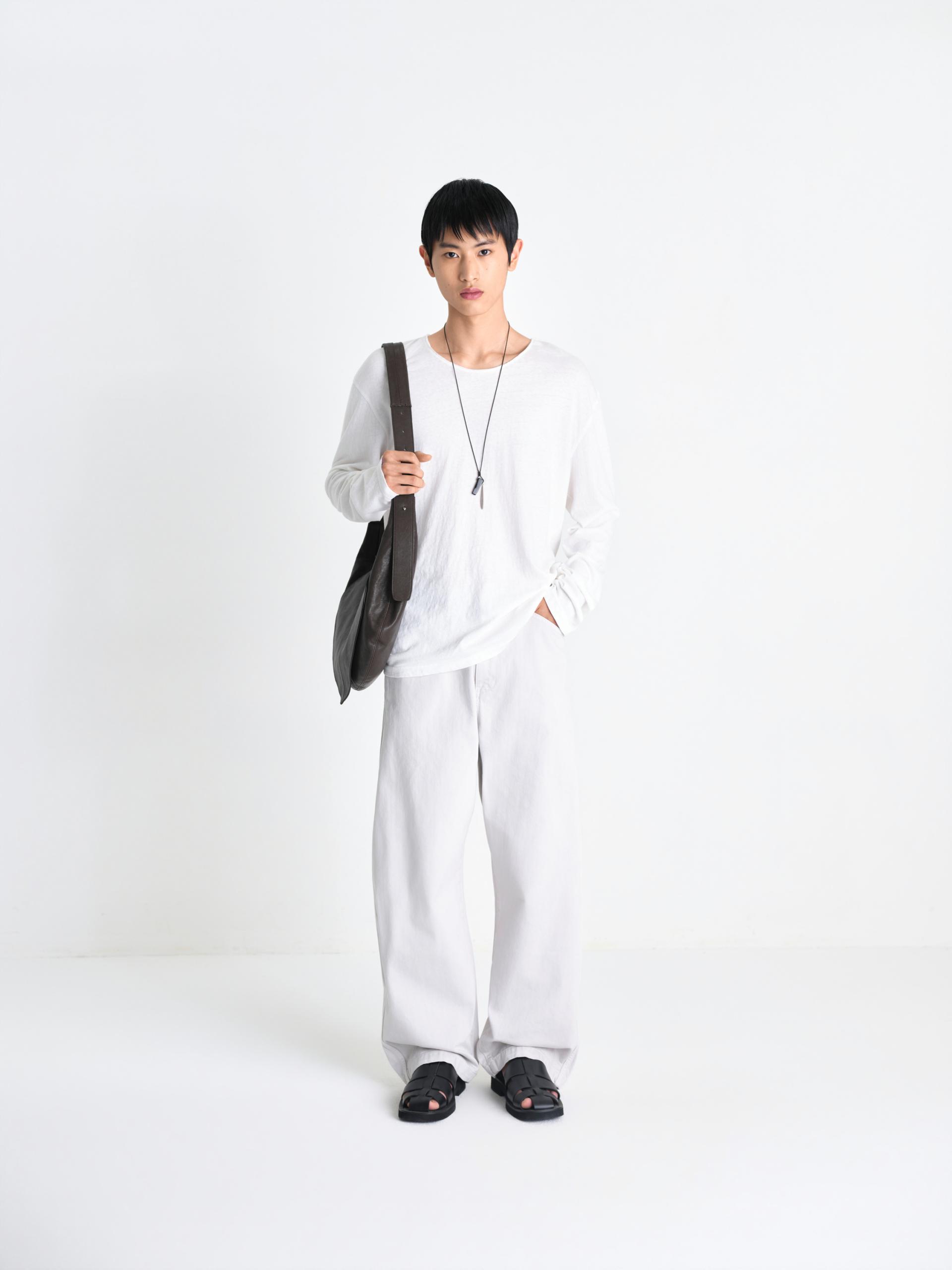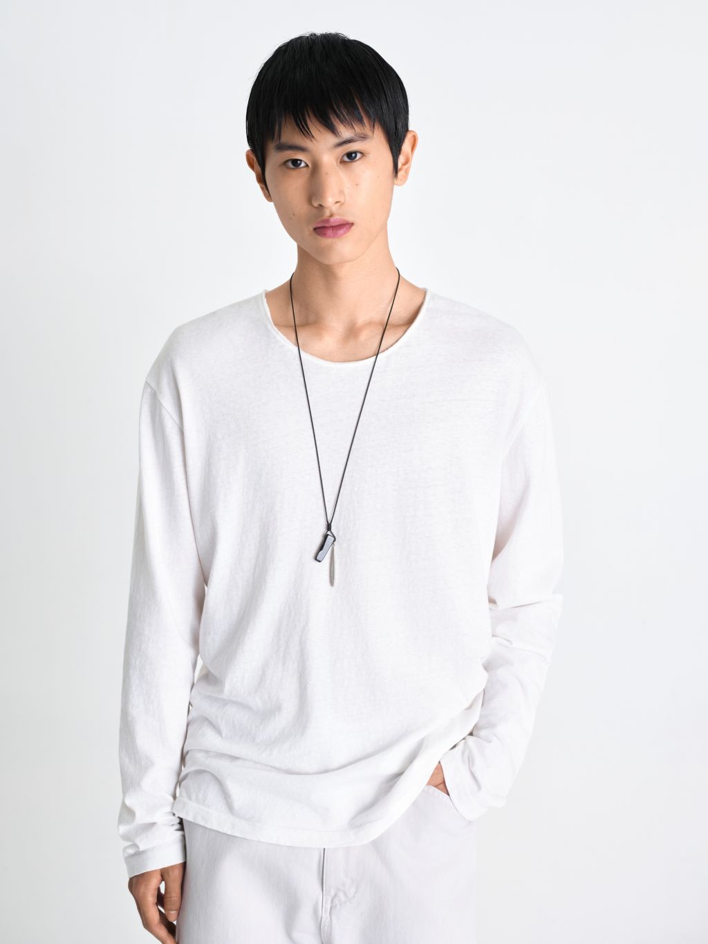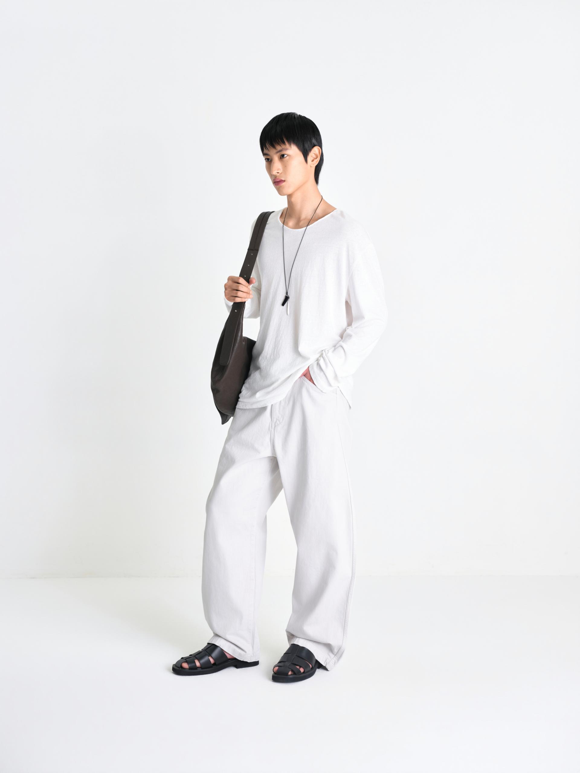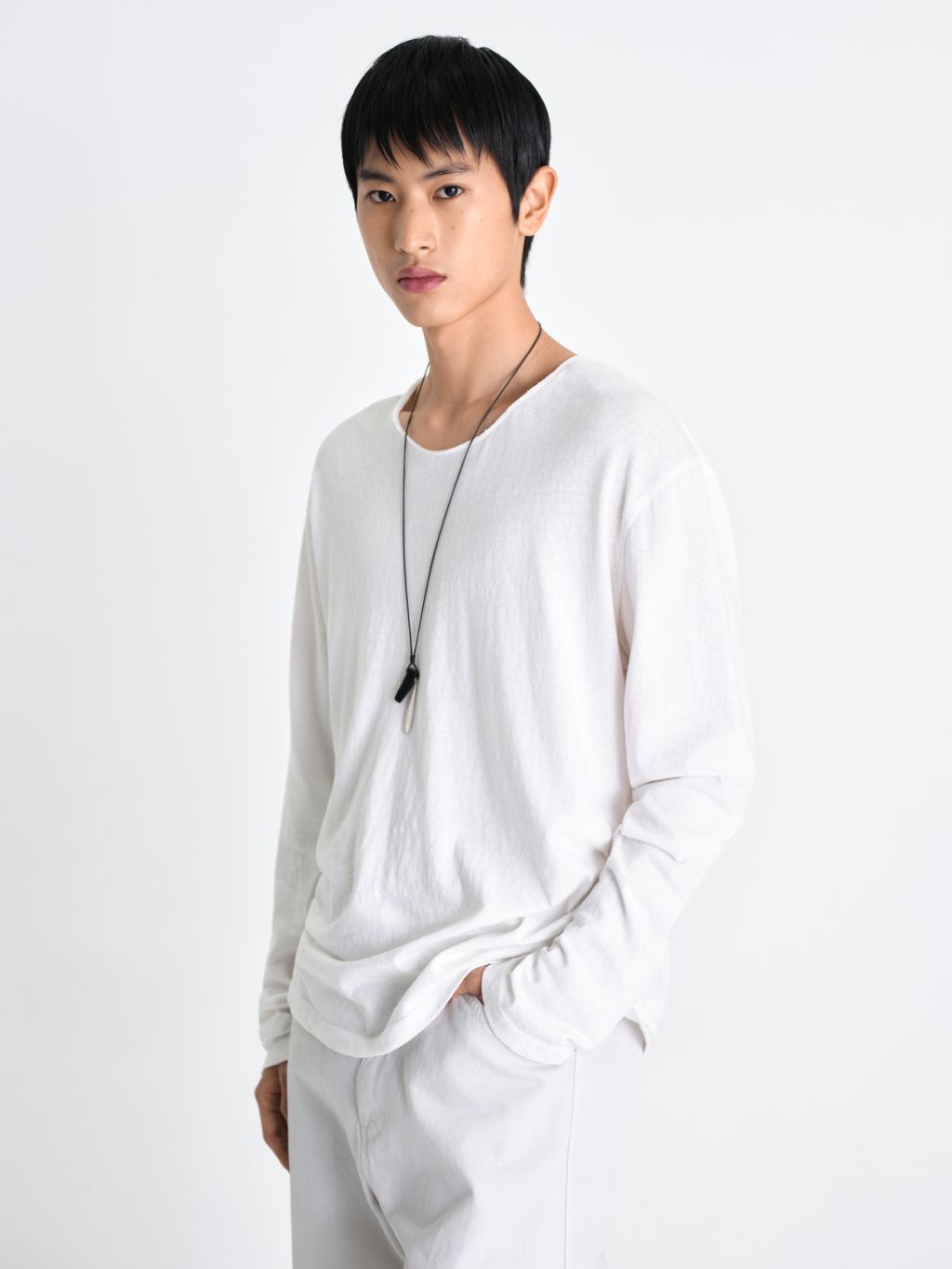저밀도 원단의 부드러운 터치감 러프한 컷팅 시보리 디테일 탄탄한 체인 스티치 마감 빈티지한 워싱 질감 저밀도 원단의 부드러운 소재감과 빈티지한 무드가 돋보이는 루즈핏 티셔츠입니다. 몸을 부드럽게 감싸는 저밀도 원단을 사용하여 내추럴한 실루엣과 편안한 착용감을 구현했으며, 와이드한 네크라인에 시보리를 짧고 러프하게 커트한 디테일을 더해 고유의 스타일리시한 분위기를 완성했습니다. 늘어나기 쉬운 네크라인은 체인 스티치로 정교하게 마감하여 탄탄한 내구성과 완성도 높은 외관을 지녔습니다. 원단 특유의 빈티지한 텍스처와 여유 있는 루즈핏이 어우러져 편안하면서도 감각적인 무드를 선사합니다. 기본 에센셜 아이템에 KYO만의 독보적인 디테일을 더해, 단독 착용만으로도 나만의 스타일을 완성해 줄 에센셜한 아이템입니다. |
