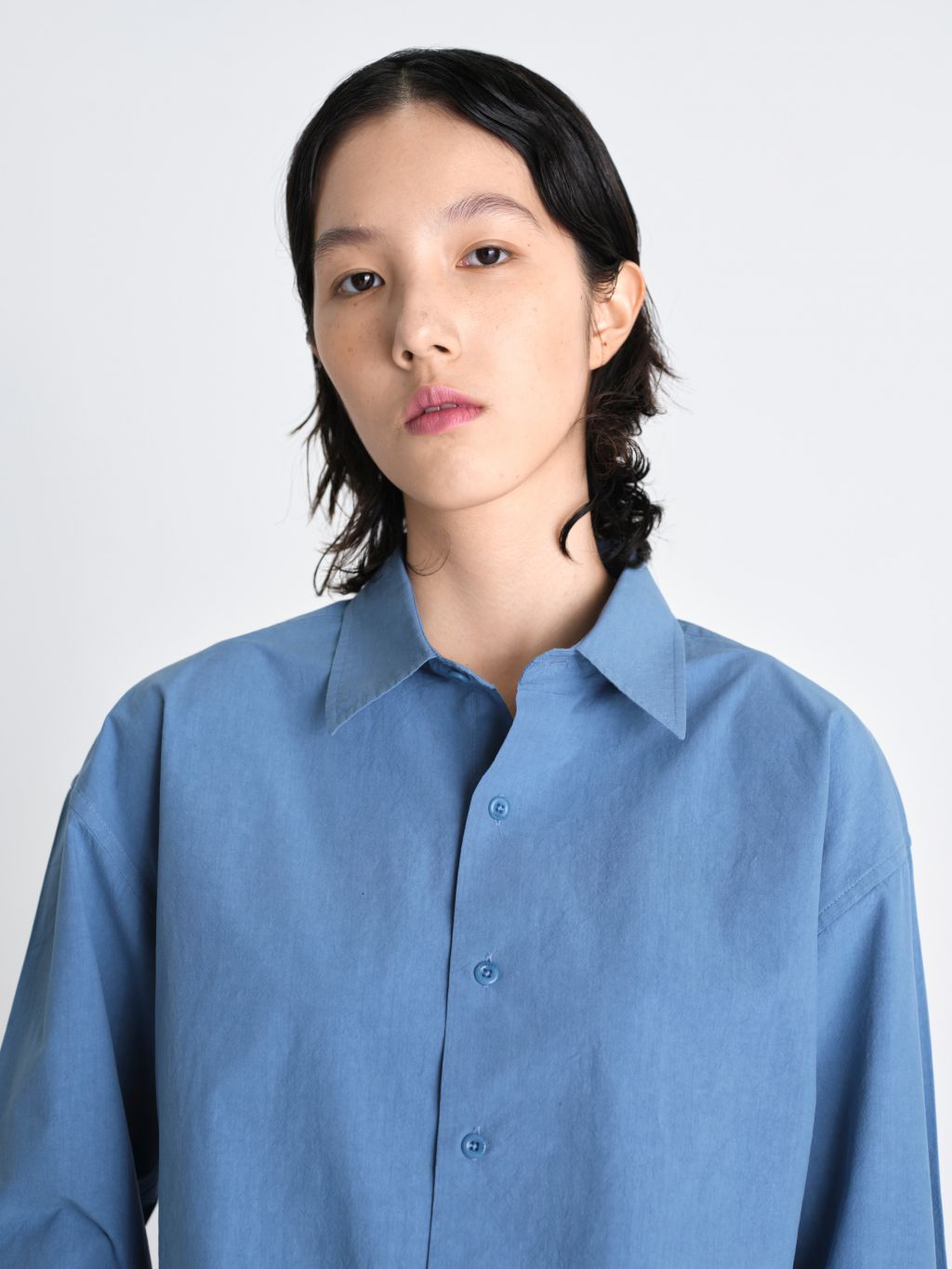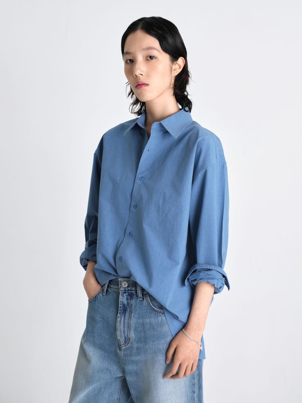 부드러운 워싱 가공 원단 색상 맞춤 염색 단추 하단 옆선 트임 여유로운 루즈핏 부드러운 워싱 가공과 정제된 디테일이 돋보이는 루즈핏 셔츠입니다. 코튼 원단에 워싱 가공을 통하여 자연스러운 주름감을 만들어주어 착용 시 몸에 부드럽게 감기는 내추럴한 실루엣을 구현했으며, 원단과 동일한 컬러로 섬세하게 염색된 단추를 매치하여 시각적으로 정돈된 미니멀한 무드를 완성합니다. 여유 있는 루즈핏 설계와 하단 옆선의 슬릿(Slit) 디테일로 활동성을 높였으며, 절제된 디자인 속에 실용적인 디테일이 조화를 이룬 완성도 높은 제품입니다. 내추럴한 소재감과 편안한 실루엣이 어우러진 에센셜한 아이템입니다. |