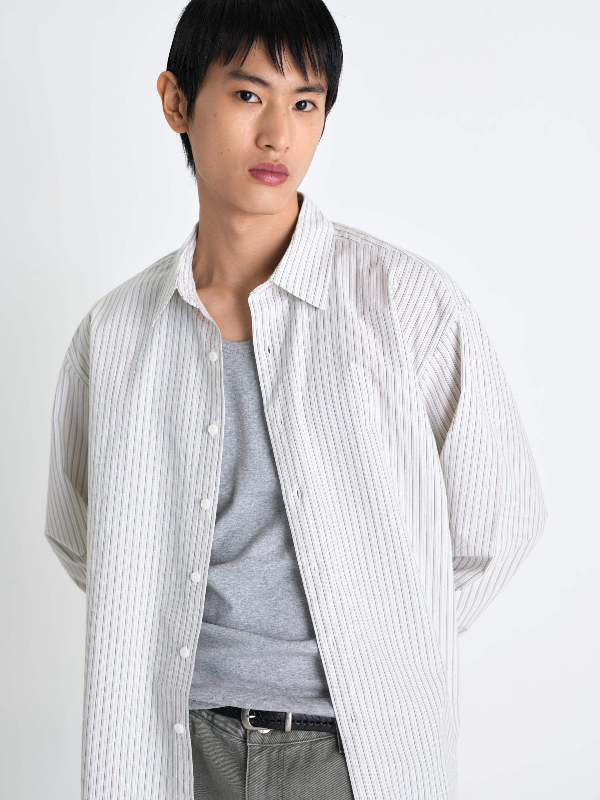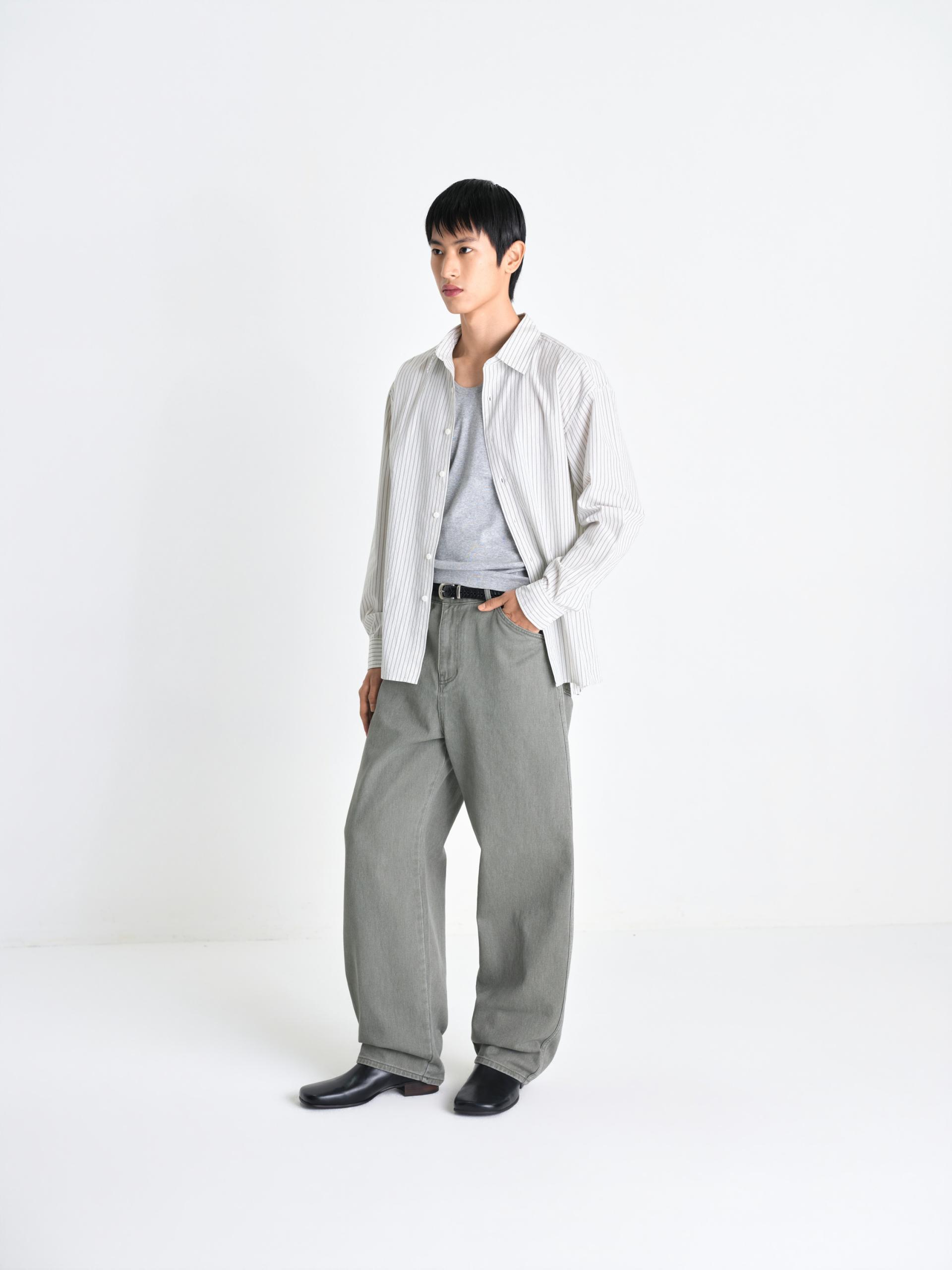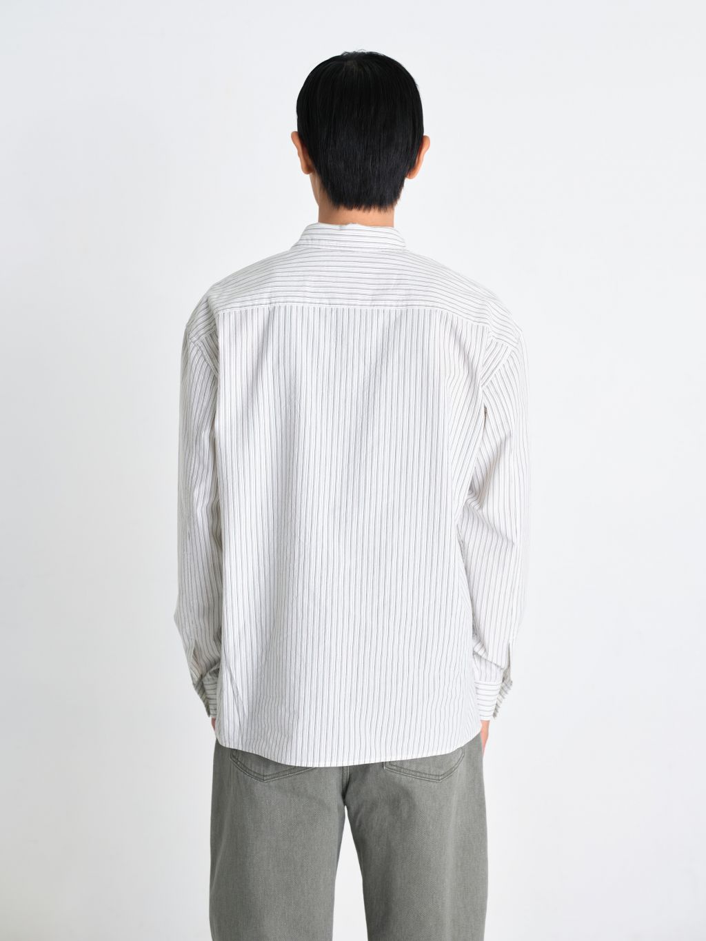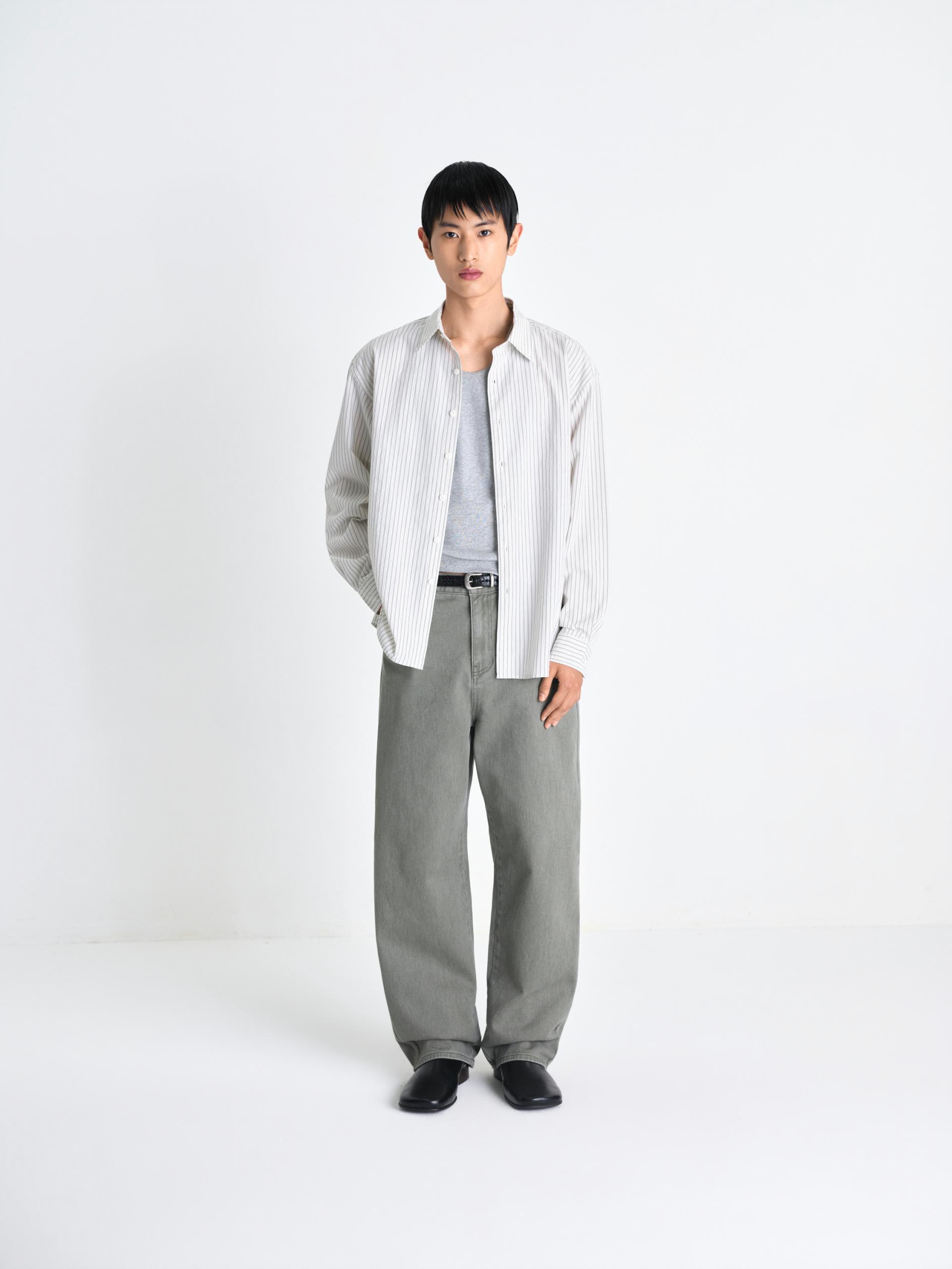 부드러운 워싱 가공 원단 색상 맞춤 염색 단추 하단 옆선 트임 여유로운 루즈핏 부드러운 워싱 가공과 정제된 디테일이 돋보이는 루즈핏 셔츠입니다. 코튼 원단에 워싱 가공을 통하여 자연스러운 주름감을 만들어주어 착용 시 몸에 부드럽게 감기는 내추럴한 실루엣을 구현했으며, 원단과 동일한 컬러로 섬세하게 염색된 단추를 매치하여 시각적으로 정돈된 미니멀한 무드를 완성합니다. 여유 있는 루즈핏 설계와 하단 옆선의 슬릿(Slit) 디테일로 활동성을 높였으며, 절제된 디자인 속에 실용적인 디테일이 조화를 이룬 완성도 높은 제품입니다. 내추럴한 소재감과 편안한 실루엣이 어우러진 에센셜한 아이템입니다. |