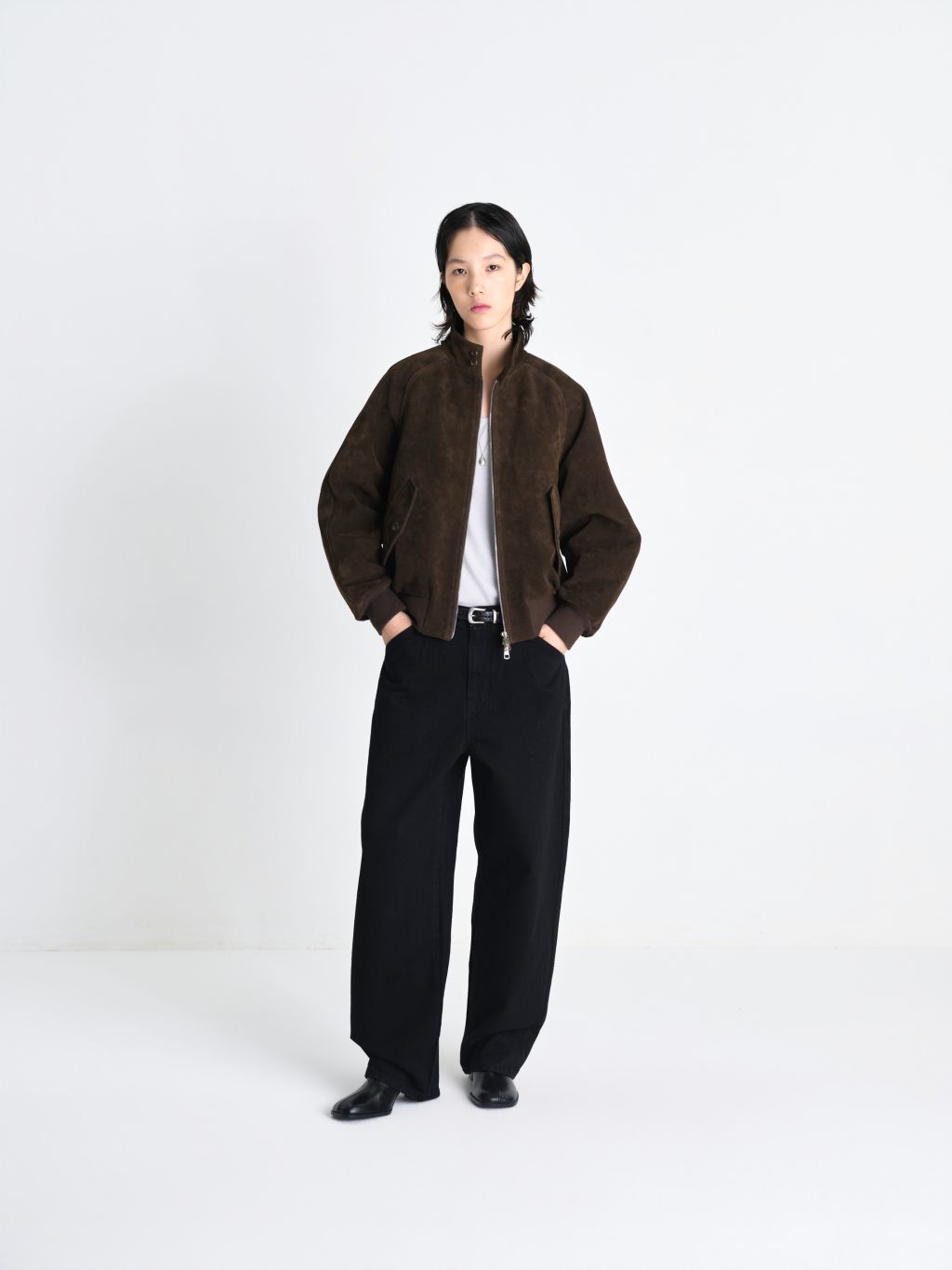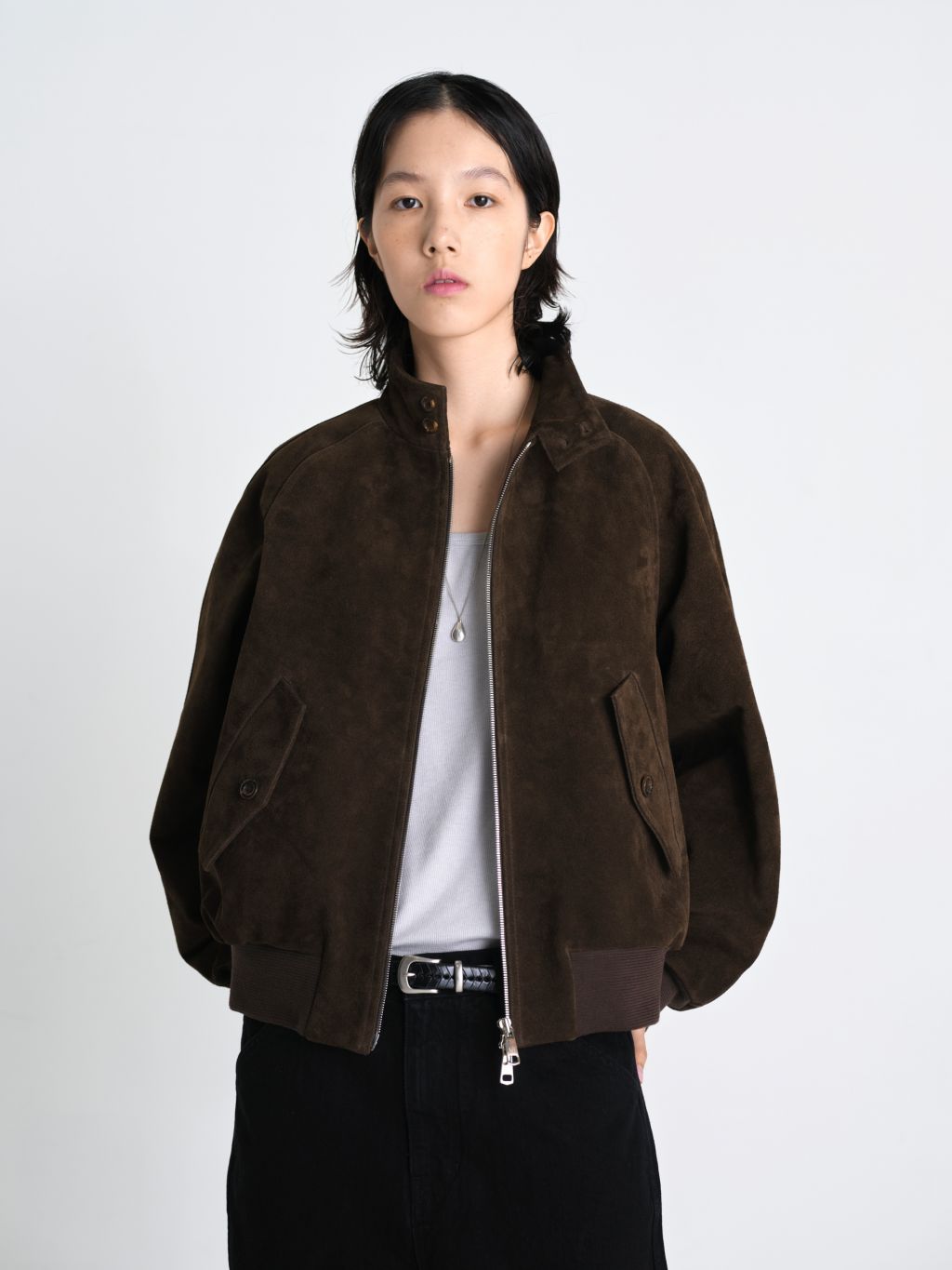 깊이감 있는 색감의 프리미엄 소가죽 스웨이드 하이넥 카라 디테일 빈티지한 나그랑 절개 라인 탄탄한 밑단 시보리 90년대 레트로 무드를 현대적으로 재해석한, 정교한 실루엣의 소가죽 스웨이드 블루종입니다. 새들 브라운(Saddle Brown) 컬러 특유의 깊이감과 스웨이드 소재의 부드러운 질감을 살려 고급스러운 외관을 구현했습니다. 하이넥 카라 디테일과 양면으로 탄탄하게 짜여진 밑단 시보리가 실루엣을 안정감 있게 잡아주며, 빈티지한 절개 라인이 돋보이는 나그랑 패턴을 적용하여 어깨부터 소매까지 흐르는 부드러운 곡선 라인을 완성했습니다. 여유 있는 루즈핏과 적당한 웨이스트 라인 기장감으로 안정적인 비율을 선사하며, 투웨이(2-Way) 지퍼를 활용해 다양한 스타일 연출이 가능합니다. 절제된 디테일 속에 소가죽 특유의 묵직한 존재감이 조화를 이룬 타임리스 아이템입니다. |