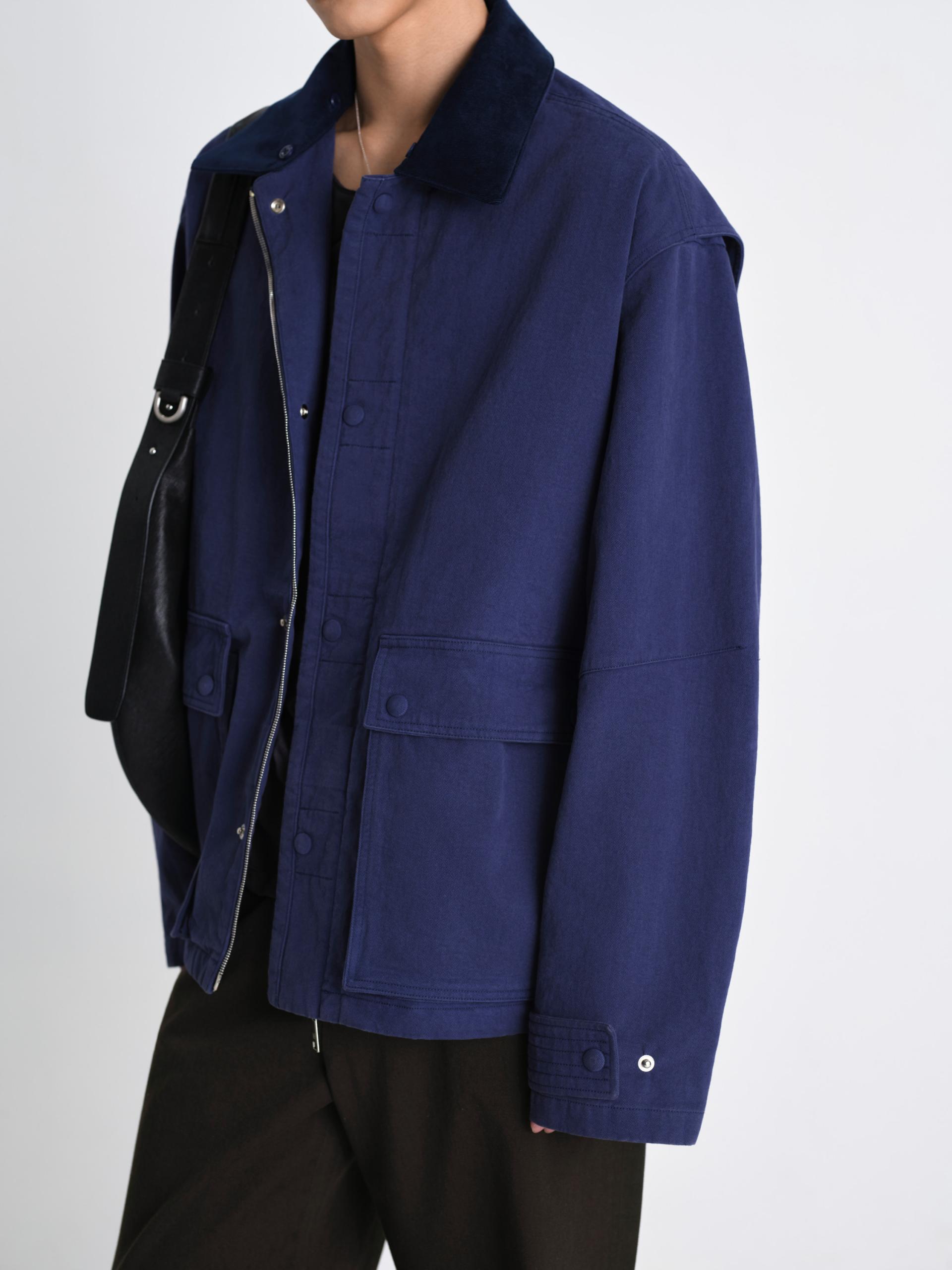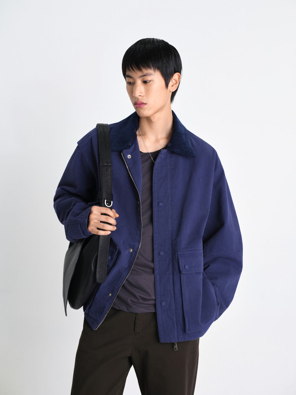 3/11 순차 출고 탈부착 가능한 코듀로이 배색 카라 원단 소재의 싸개 스냅 단추 활동성을 높인 어깨 덧장 디테일 워크웨어의 실용성과 동양적인 정갈한 무드가 조화를 이루는 워싱 카펜터 자켓입니다. 부드러운 코튼 원단에 워싱 가공을 더하여 첫 착용부터 몸에 익은 듯한 편안한 착용감을 선사하며, 탈부착이 가능한 코듀로이 배색 카라 디자인을 적용해 스타일링에 따라 두 가지 무드로 연출이 가능합니다. 스냅 단추를 원단으로 섬세하게 감싼 싸개 단추 디테일로 시각적인 정돈감을 높였으며, 입체적인 포켓 설계로 옷의 깊이감과 수납의 실용성을 동시에 확보했습니다. 어깨 라인에는 활동성을 극대화하는 덧장(Action Pleats) 디테일을 더해 편안한 움직임을 느끼실 수 있으며, 소매의 비조와 탄탄하게 잡아주는 여러 줄의 스티치를 통해 변형없이 제품을 견고하게 완성합니다. 투웨이(2-Way) 지퍼와 여유로운 실루엣이 어우러져 워크자켓 특유의 투박함을 덜어내고, 절제된 선과 스티치 디테일로 독보적인 무드를 완성했습니다. |