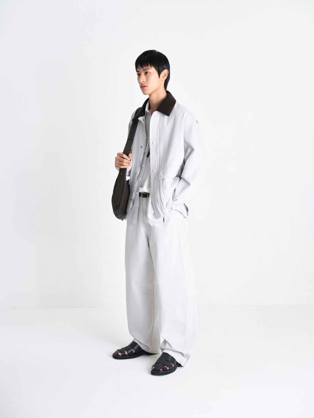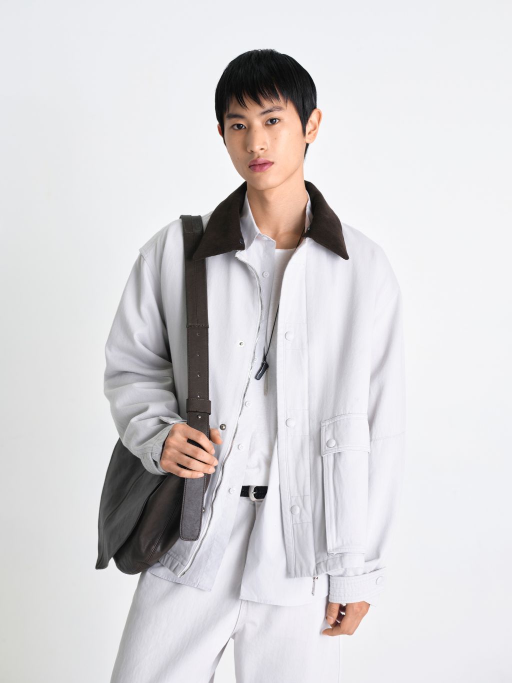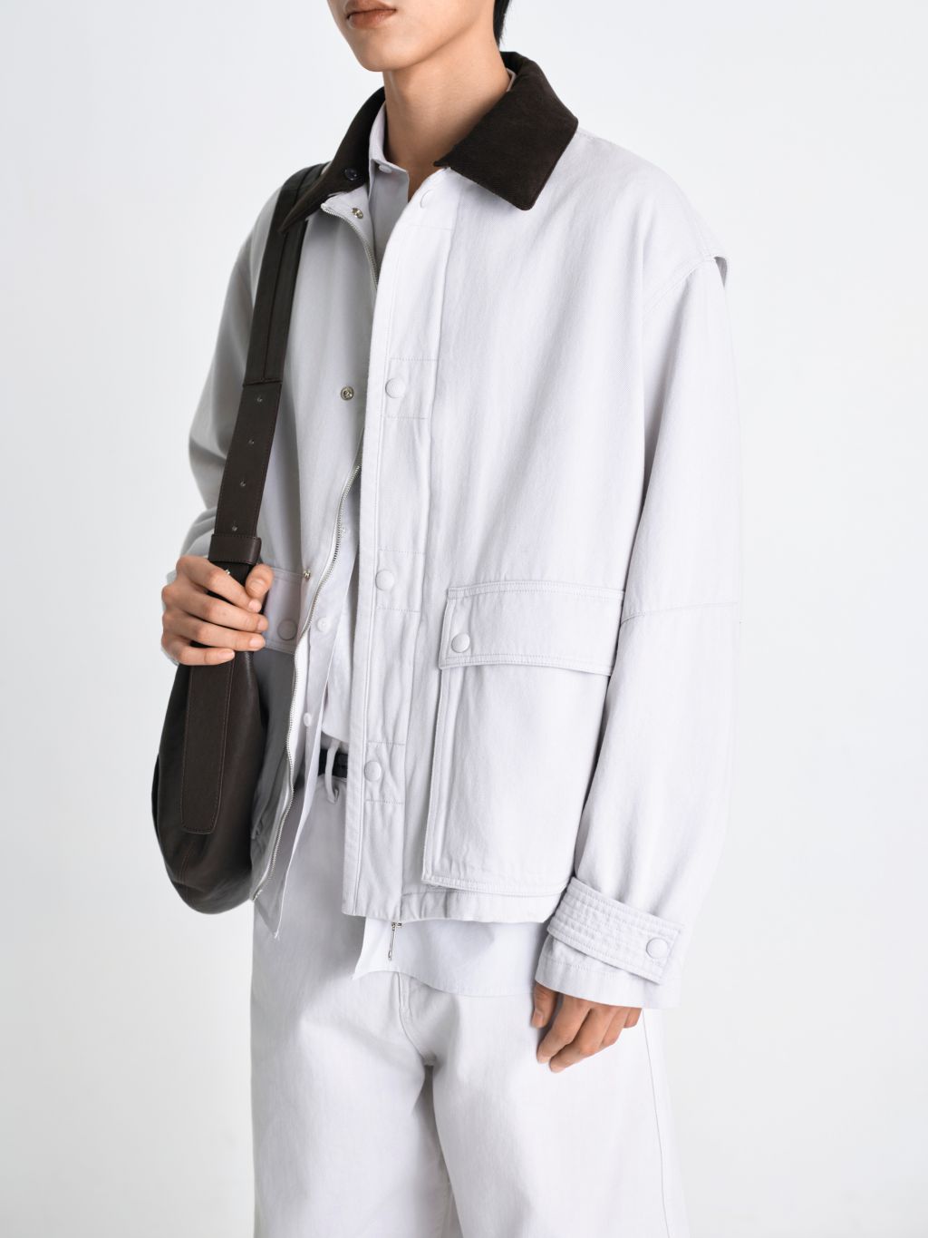 3/11 순차 출고 탈부착 가능한 코듀로이 배색 카라 원단 소재의 싸개 스냅 단추 활동성을 높인 어깨 덧장 디테일 워크웨어의 실용성과 동양적인 정갈한 무드가 조화를 이루는 워싱 카펜터 자켓입니다. 부드러운 코튼 원단에 워싱 가공을 더하여 첫 착용부터 몸에 익은 듯한 편안한 착용감을 선사하며, 탈부착이 가능한 코듀로이 배색 카라 디자인을 적용해 스타일링에 따라 두 가지 무드로 연출이 가능합니다. 스냅 단추를 원단으로 섬세하게 감싼 싸개 단추 디테일로 시각적인 정돈감을 높였으며, 입체적인 포켓 설계로 옷의 깊이감과 수납의 실용성을 동시에 확보했습니다. 어깨 라인에는 활동성을 극대화하는 덧장(Action Pleats) 디테일을 더해 편안한 움직임을 느끼실 수 있으며, 소매의 비조와 탄탄하게 잡아주는 여러 줄의 스티치를 통해 변형없이 제품을 견고하게 완성합니다. 투웨이(2-Way) 지퍼와 여유로운 실루엣이 어우러져 워크자켓 특유의 투박함을 덜어내고, 절제된 선과 스티치 디테일로 독보적인 무드를 완성했습니다. |