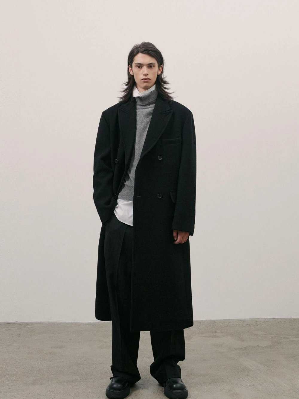 더블 브래스티드 버튼 여밈 피크드 라벨 웰트 포켓과 허리 플랩 포켓 소매 슬릿 천연 소뿔 단추 사용 뒷 트임 디테일 양쪽 사용 가능한 속주머니 정제된 디테일을 지닌 클래식한 더블 코트입니다. 양모 텍스처 후가공을 통하여 부드럽고 포근한 표면으로 항상 따뜻한 촉감을 유지합니다. 밀도 높은 탄탄한 조직감의 울 소재를 사용하여 우수한 내구성과 뛰어난 보온성을 느끼실 수 있습니다. 스트레이트하게 떨어지는 실루엣과 간결하게 다듬어진 디테일로 시즌에 구애받지 않고 오래도록 착용할 수 있는 클래식한 아우터입니다. |
