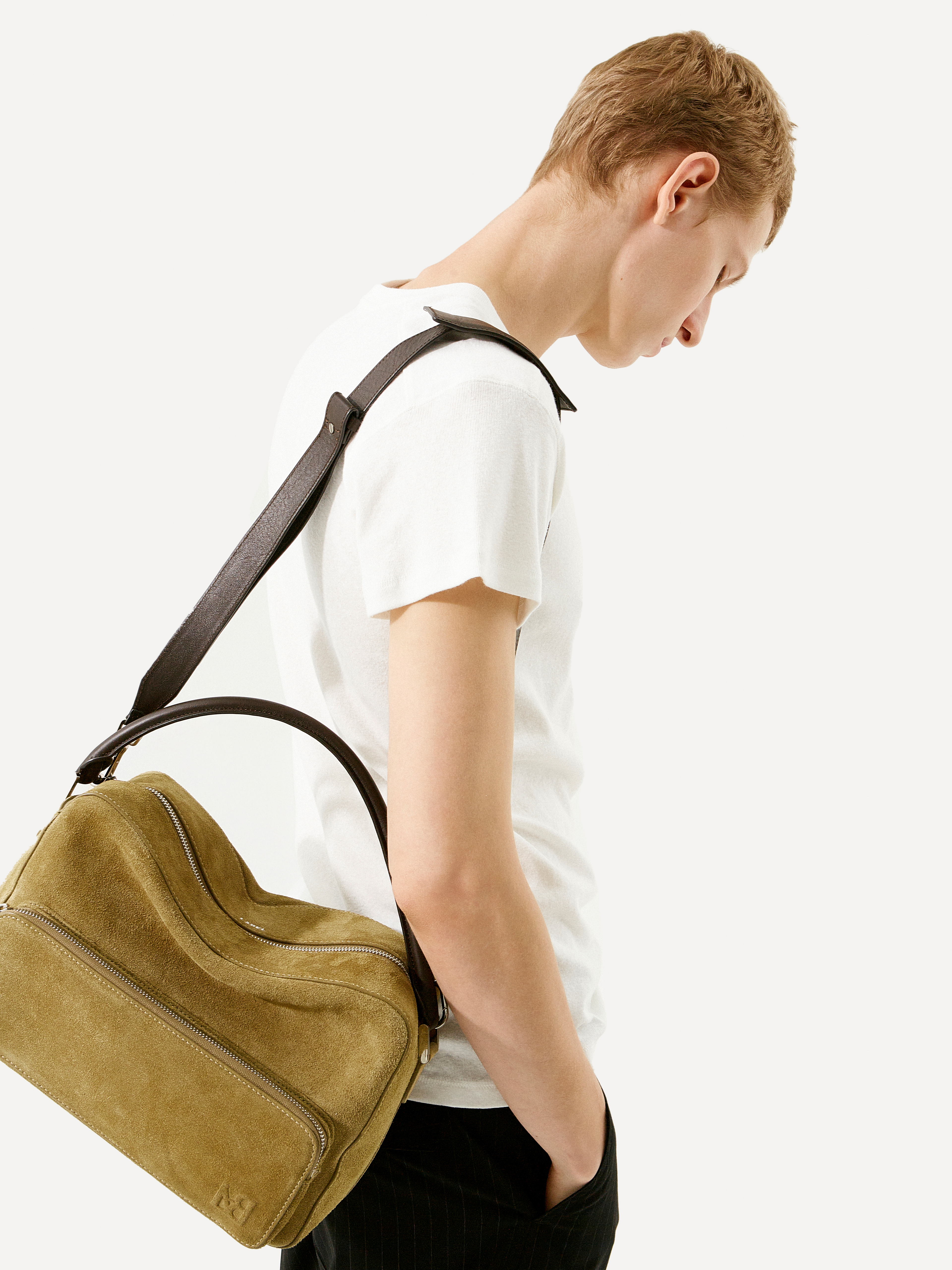 탑핸들 토트백 윗면 지퍼끝 트임 디테일 & 마그넷 고정 탈부착 가능한 숄더끈 포함 전면 지퍼로 클로징되는 아웃포켓 뒷면 마그넷 클로징되는 플랫 포켓 전면 엠블럼 로고 양각 처리 & LABEL 실버 음각 안쪽 이너 포켓(지퍼 클로징 포켓,입체 포켓) 이너 포켓 중앙 로고가 음각된 가죽 패치 디테일 많은 사랑을 받았던 Sander bag 의 미들 사이즈 백 입니다. 빈티지 Briefcase를 미니멀한 감각으로 재해석한 토트백입니다. 스웨이드 & 키프 스킨 컬러 배색이 매력적인 제품으로, 다양한 소지품을 담을 수 있는 실용적인 크기로 제작 되었습니다. 전면 지퍼 클로징 아웃포켓, 안쪽 이너 포켓, 뒷면 마그넷 클로징 플랫 포켓 등 다채로운 수납 공간을 갖춘 멀티 포켓 디테일을 추가하여 완성도를 높혔습니다. 탈부착 가능한 숄더끈이 포함되어있어, 탑핸들 & 크로스바디로도 착용이 가능한 투웨이 백 입니다. 미니멀한 스퀘어 쉐입과 컴팩트한 사이즈로 일상을 함께 하기 좋은 아이템 입니다. |