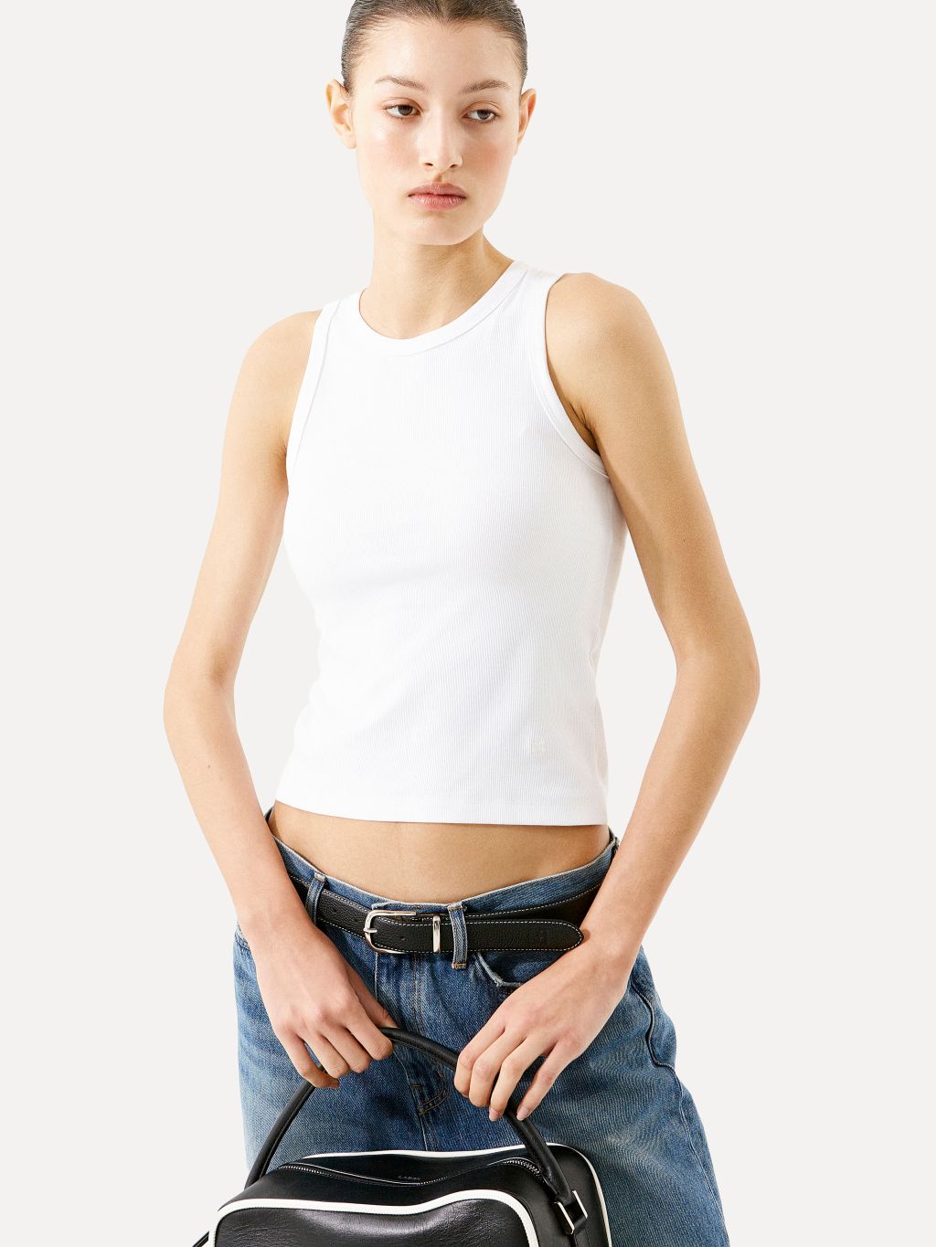 크루넥 슬림 핏 슬리브리스 전면 왼쪽 하단 엠블럼 자수 프린트 라벨이 적용된 뒷 네크 마감 · 네크 라벨은 실크스크린 프린팅 방식으로 수작업되어, 원단 마다 프린트의 위치나 농도에 미세한 차이가 발생할 수 있습니다. 이는 공정 특성으로 인한 자연스러운 현상으로 불량 사유에 해당되지 않습니다. 간결한 디자인으로 일상을 함께하기 좋은 크루넥 슬리브리스 입니다. 탄성 및 형태유지력이 좋은 립 소재로, 바디라인을 감싸듯 착용됩니다. 뚜렷한 골지 조직으로 잔잔한 텍스쳐가 특징이며, 전면 왼쪽 하단 엠블럼 자수가 은은한 포인트가 되어줍니다. SS 시즌 다양한 스타일링에 활용하기 좋은 에센셜한 아이템 입니다. |
